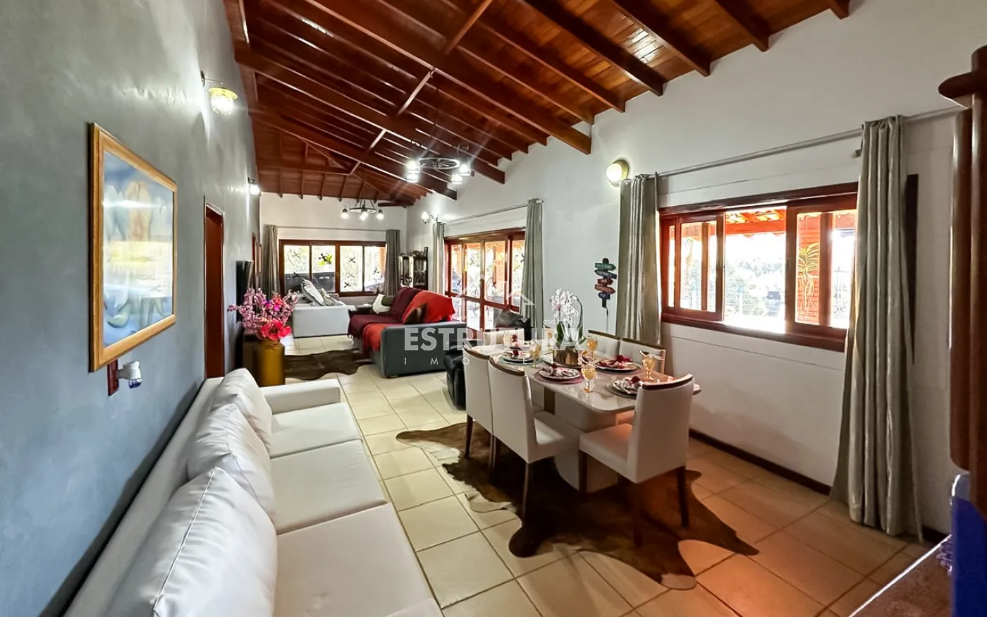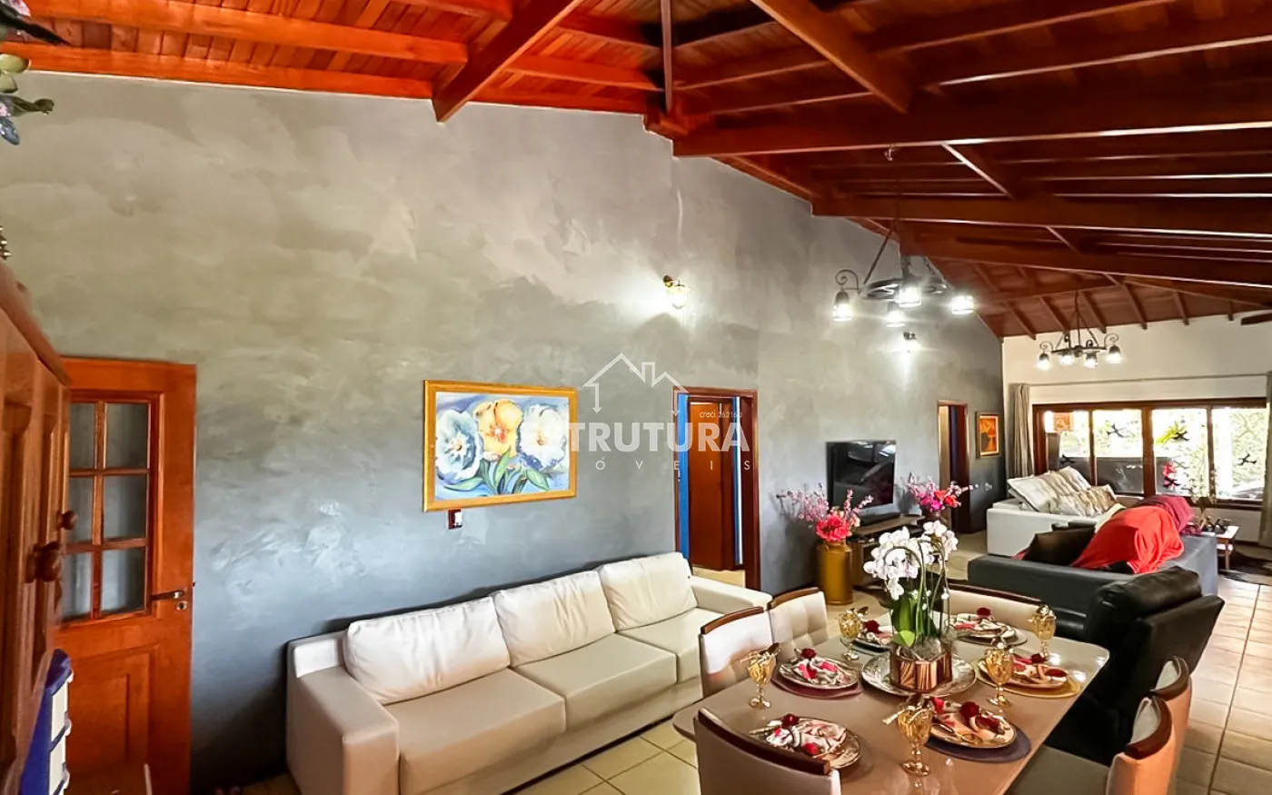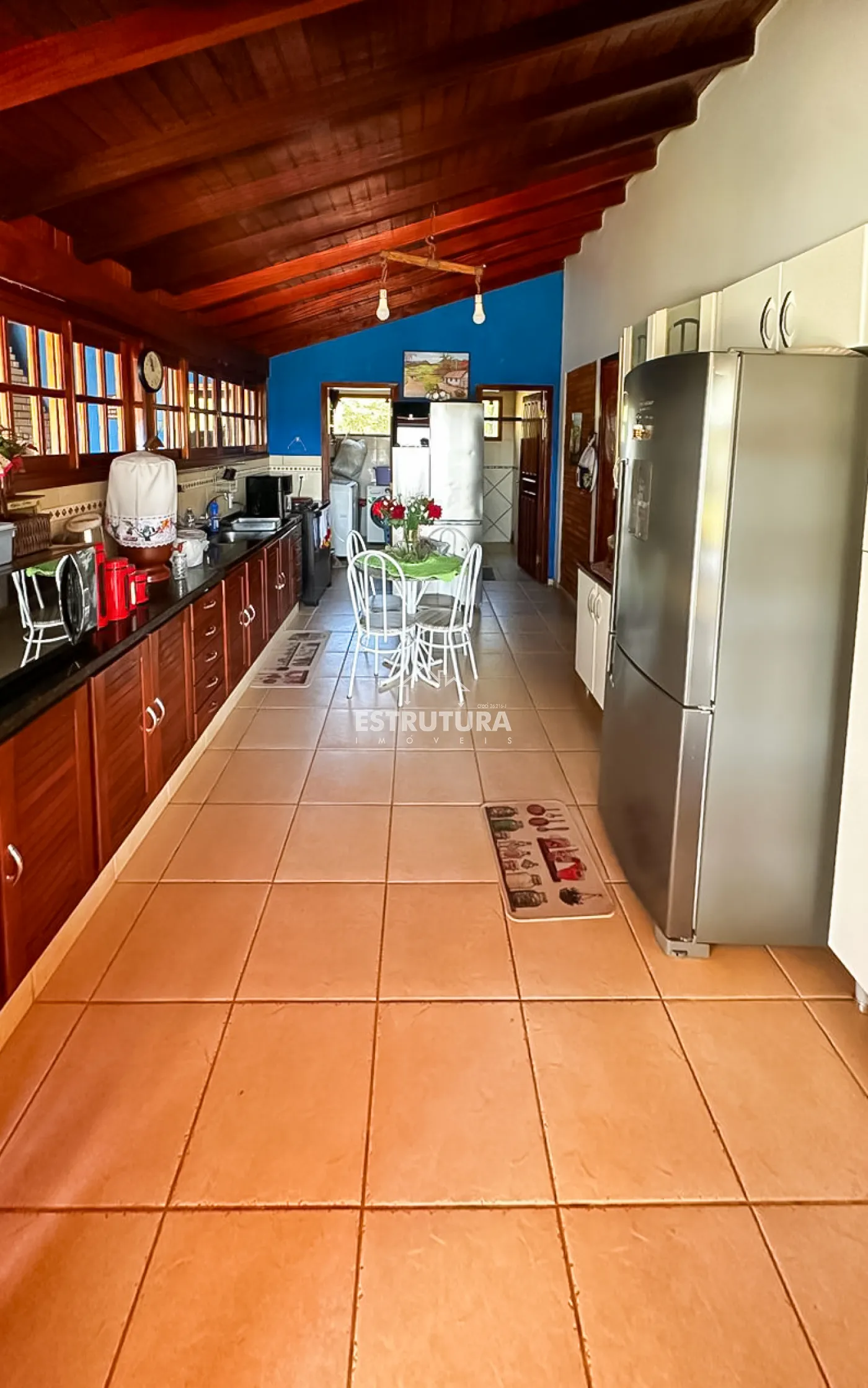 Casa com 3 dormitórios sendo 1 suíte, sala ampla, cozinha com armários embutidos, 2 banheiros, área de laser com churrasqueira, forno, fogão a lenha, 1 quarto de dispensa.