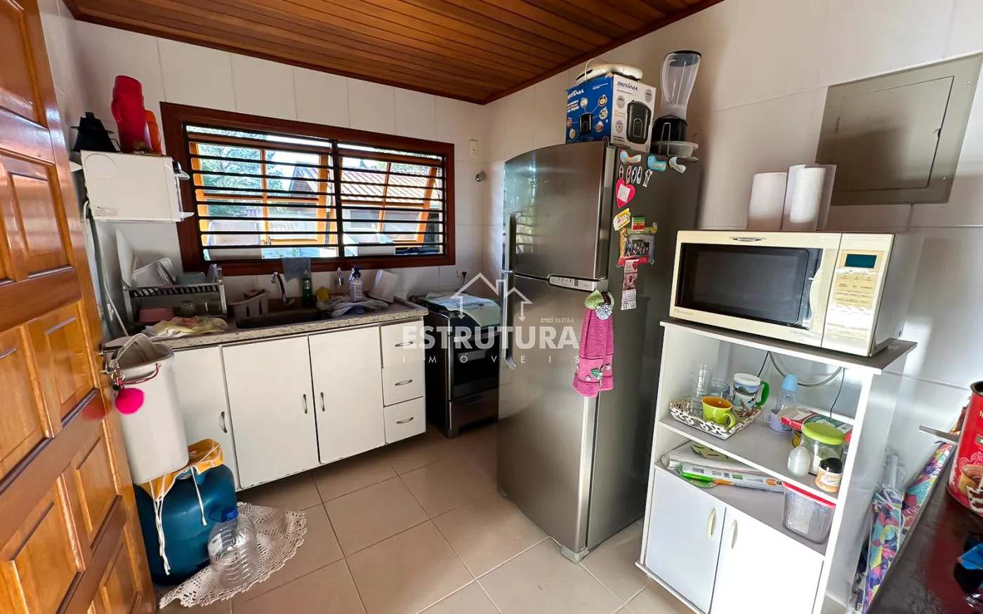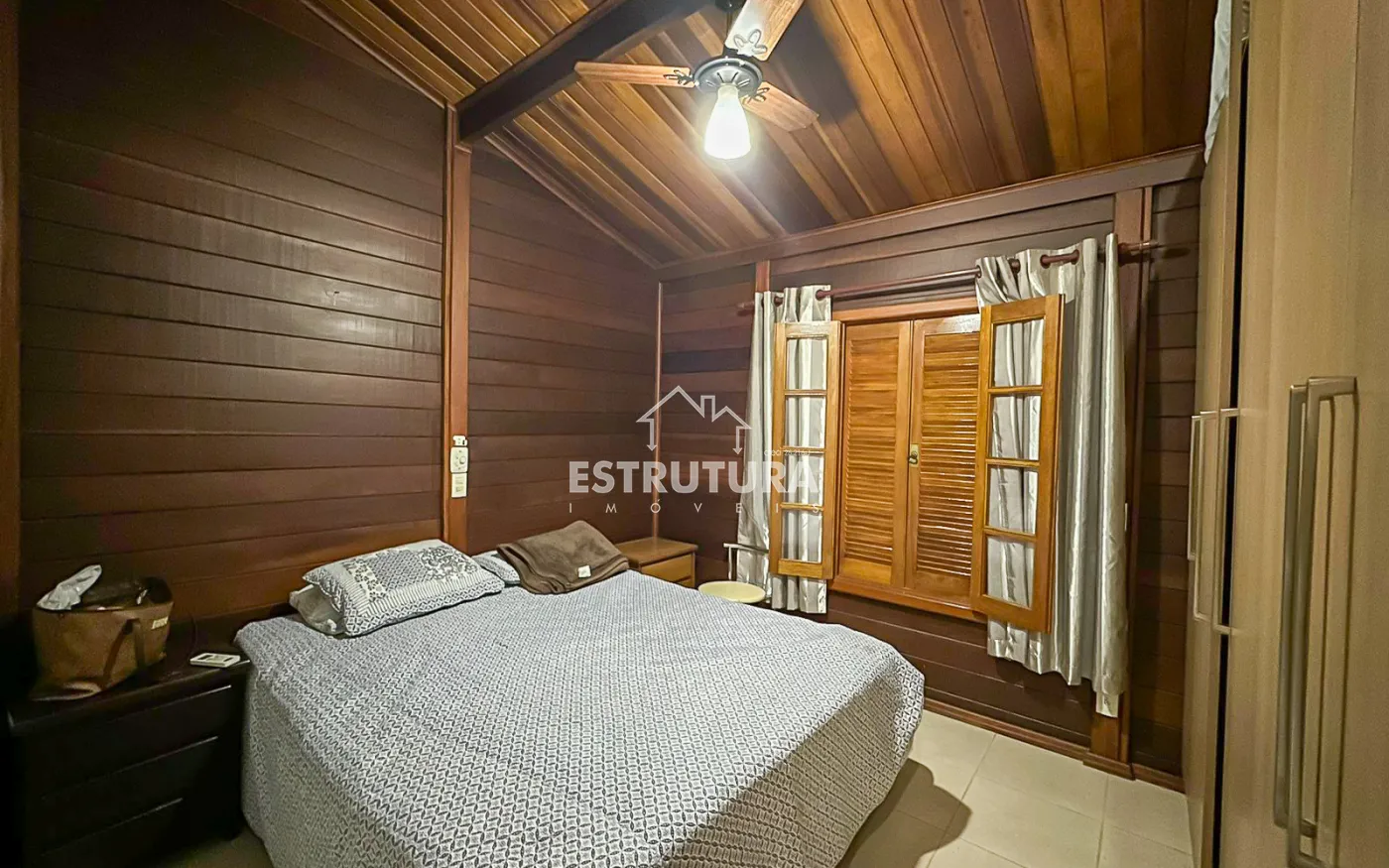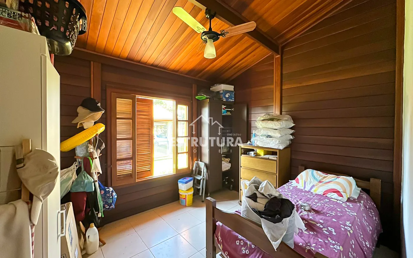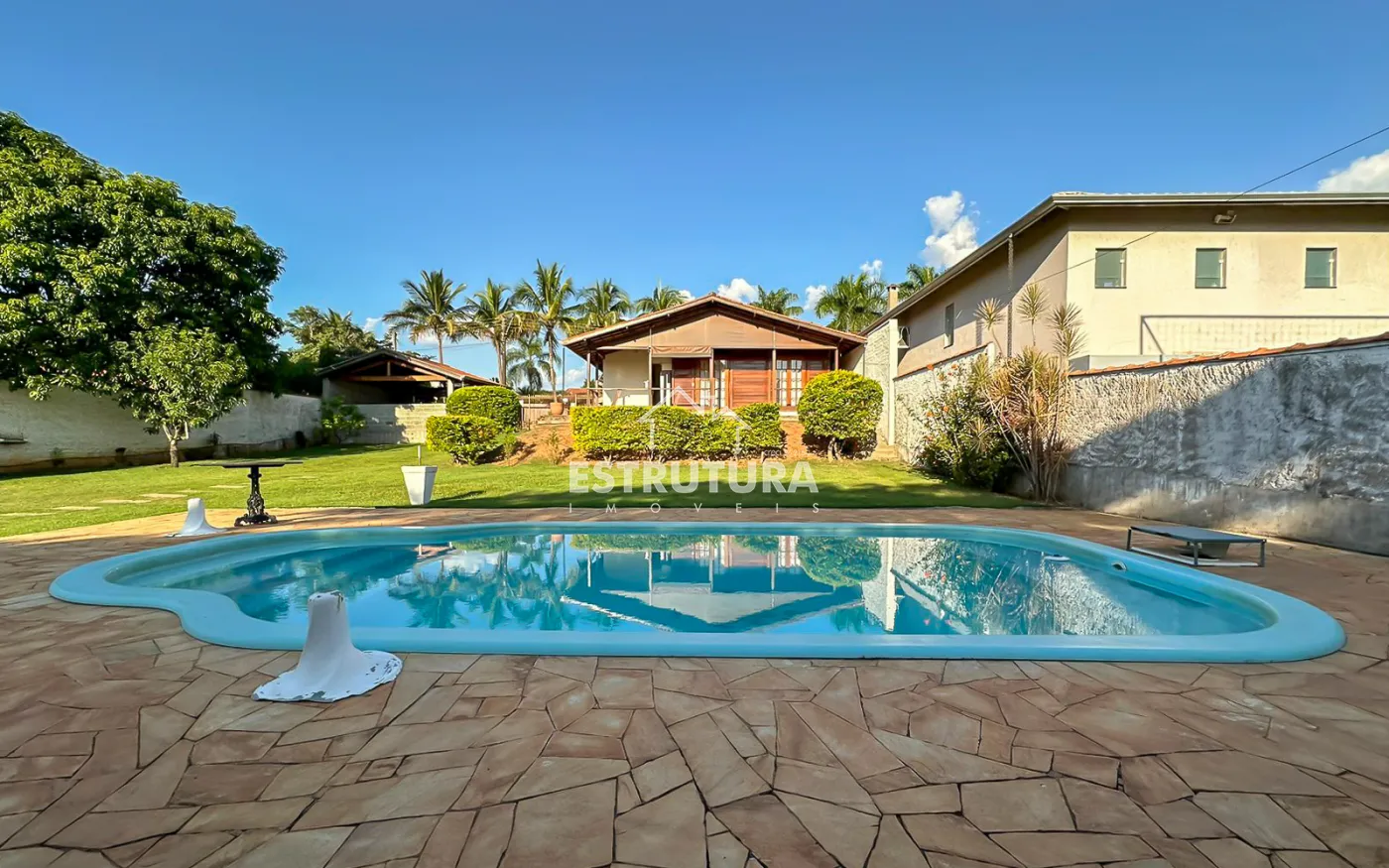 São 2 casas dentro da chácara, Casa na parte de baixo com 2 quartos, 2 banheiros, cozinha e lavanderia, garagem coberta com portão eletrônico para dois carros e na parte de cima tem mais uma casa com sala, cozinha, dois banheiros, 2 dormitórios e uma ampla área de lazer com piscina.