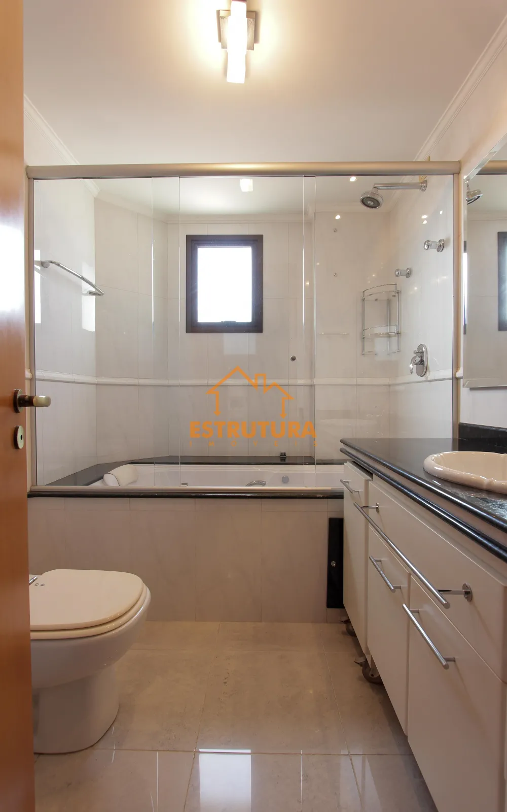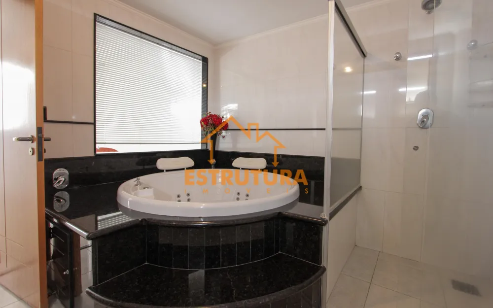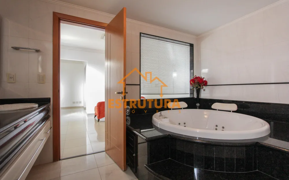 O imóvel possui um quarto principal, que é uma suíte master com armários planejados. Essa suíte possui dois banheiros, ambos com hidromassagem, proporcionando um luxo adicional e uma experiência de relaxamento.