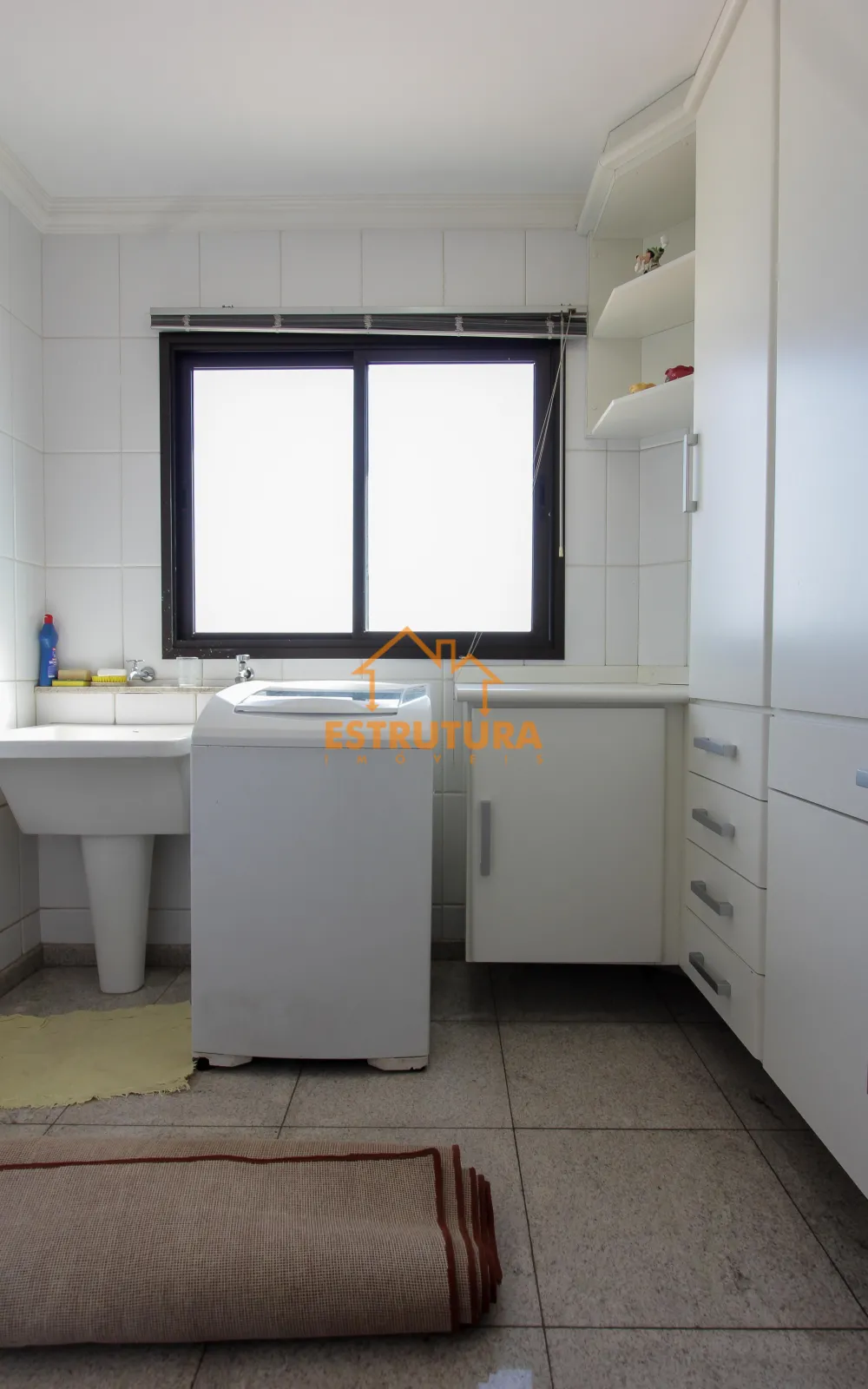 Este imóvel possui uma cozinha encantadora, equipada com armários planejados, um fogão e um depurador. A área de serviço adjacente também conta com armários planejados, oferecendo espaço adicional para armazenamento, e possui um lavabo para maior comodidade.