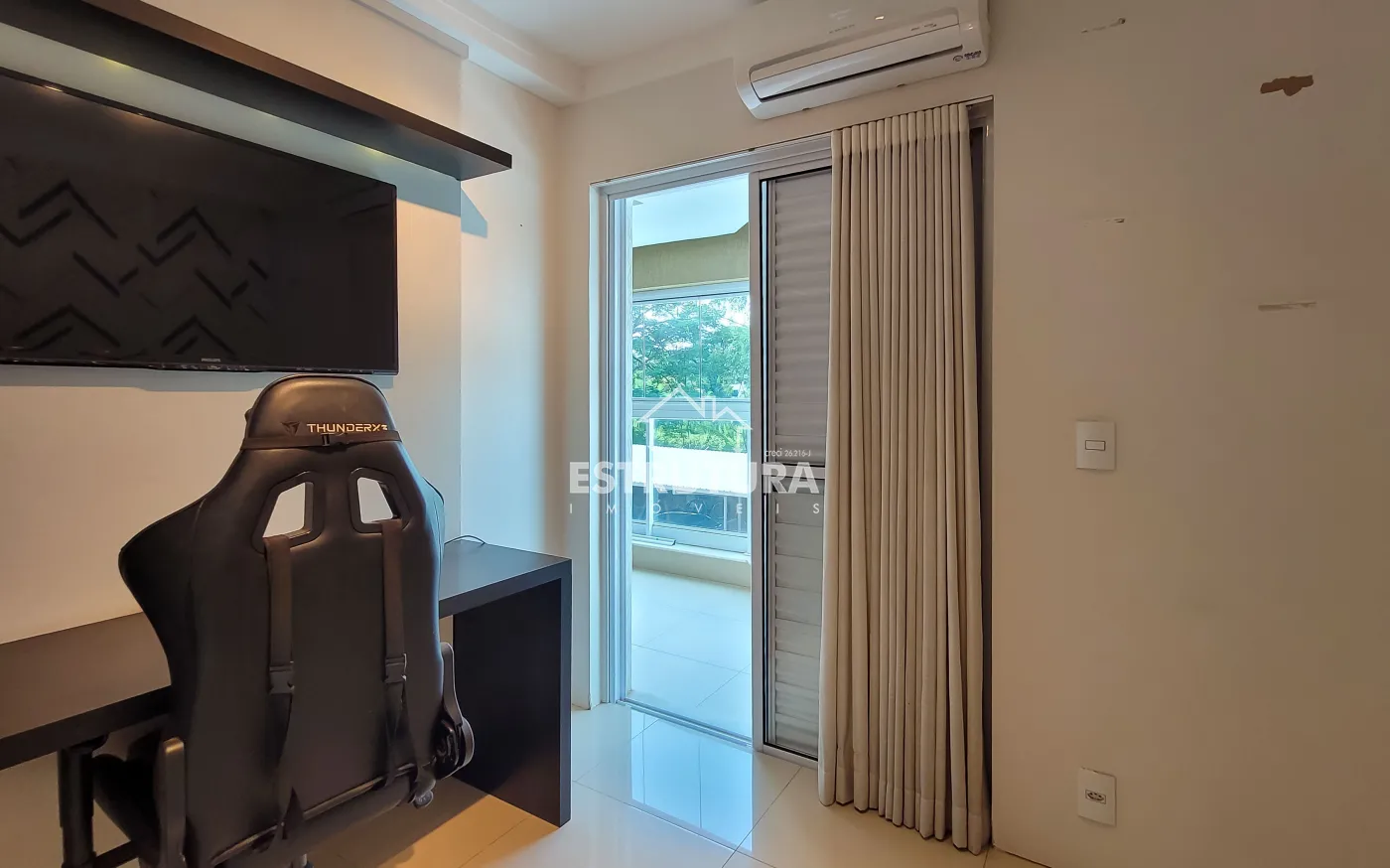 Ficam no imóvel: geladeira, cooktop, forno, ar-condicionado, TV, máquina de lavar, mesa de jantar, cama, sofá, painel de TV, mesa da varanda e todos os móveis planejados.