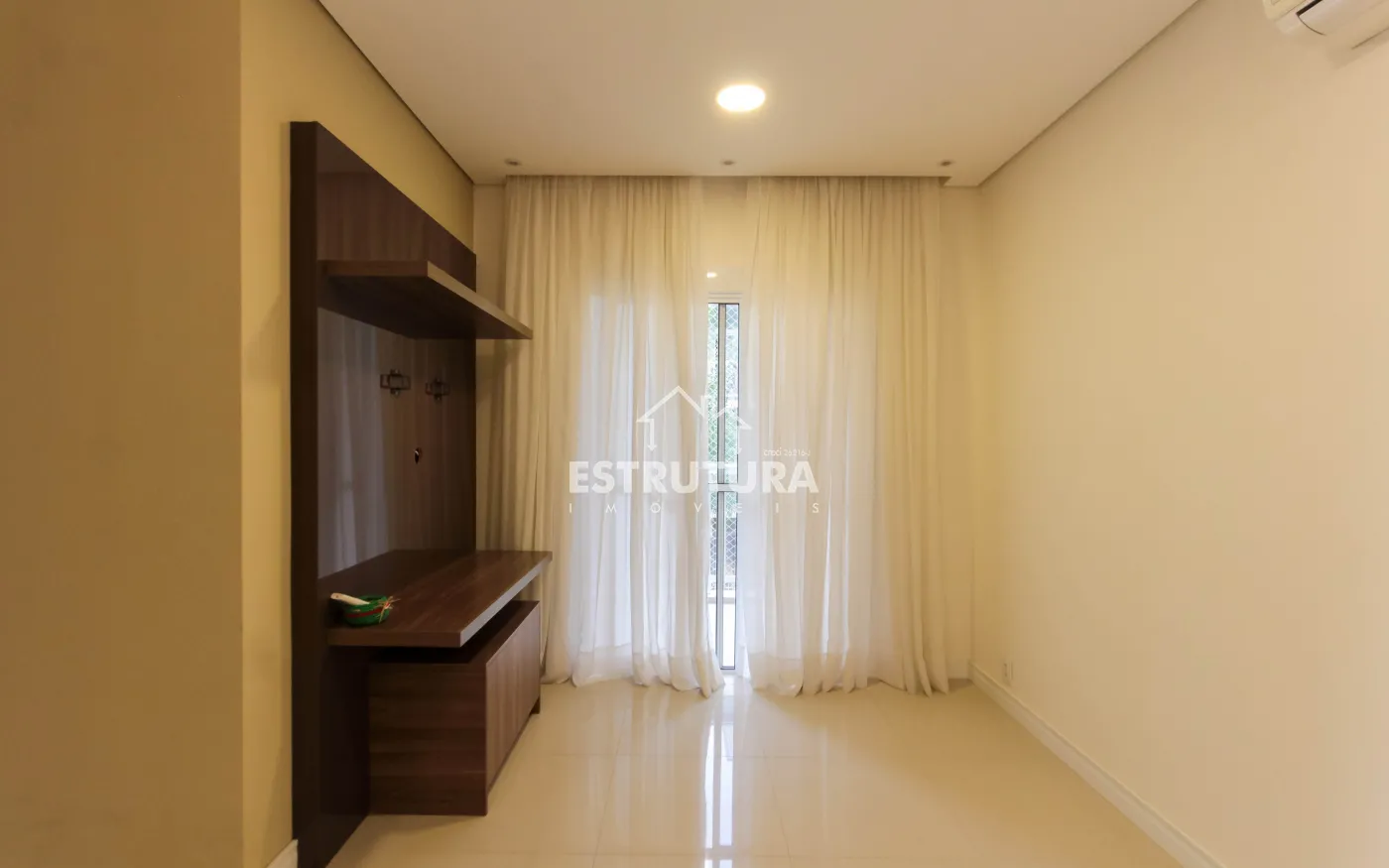 Apartamento com piso porcelanato, ar condicionado e sacada.