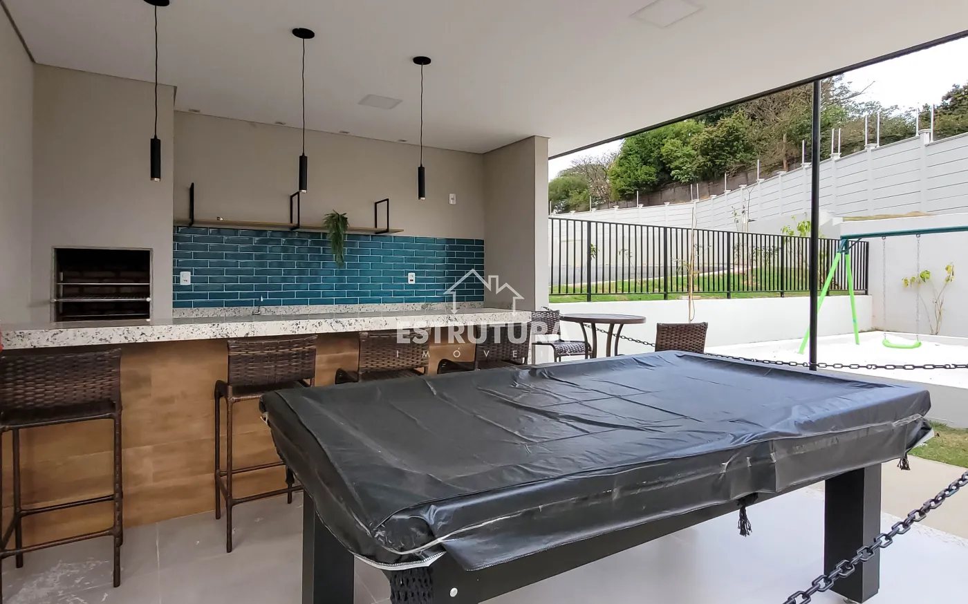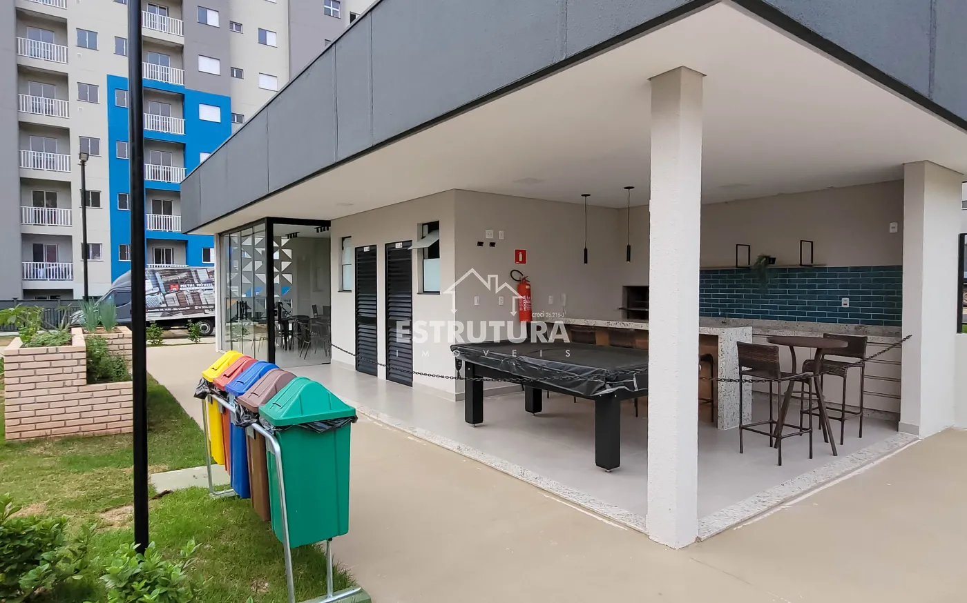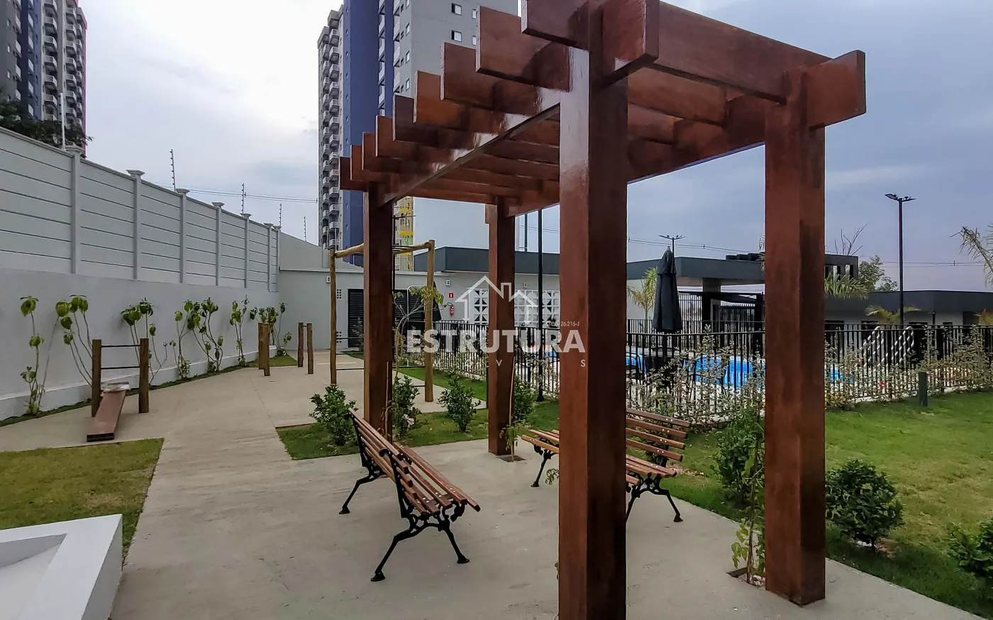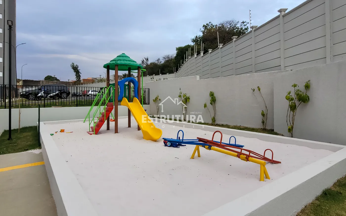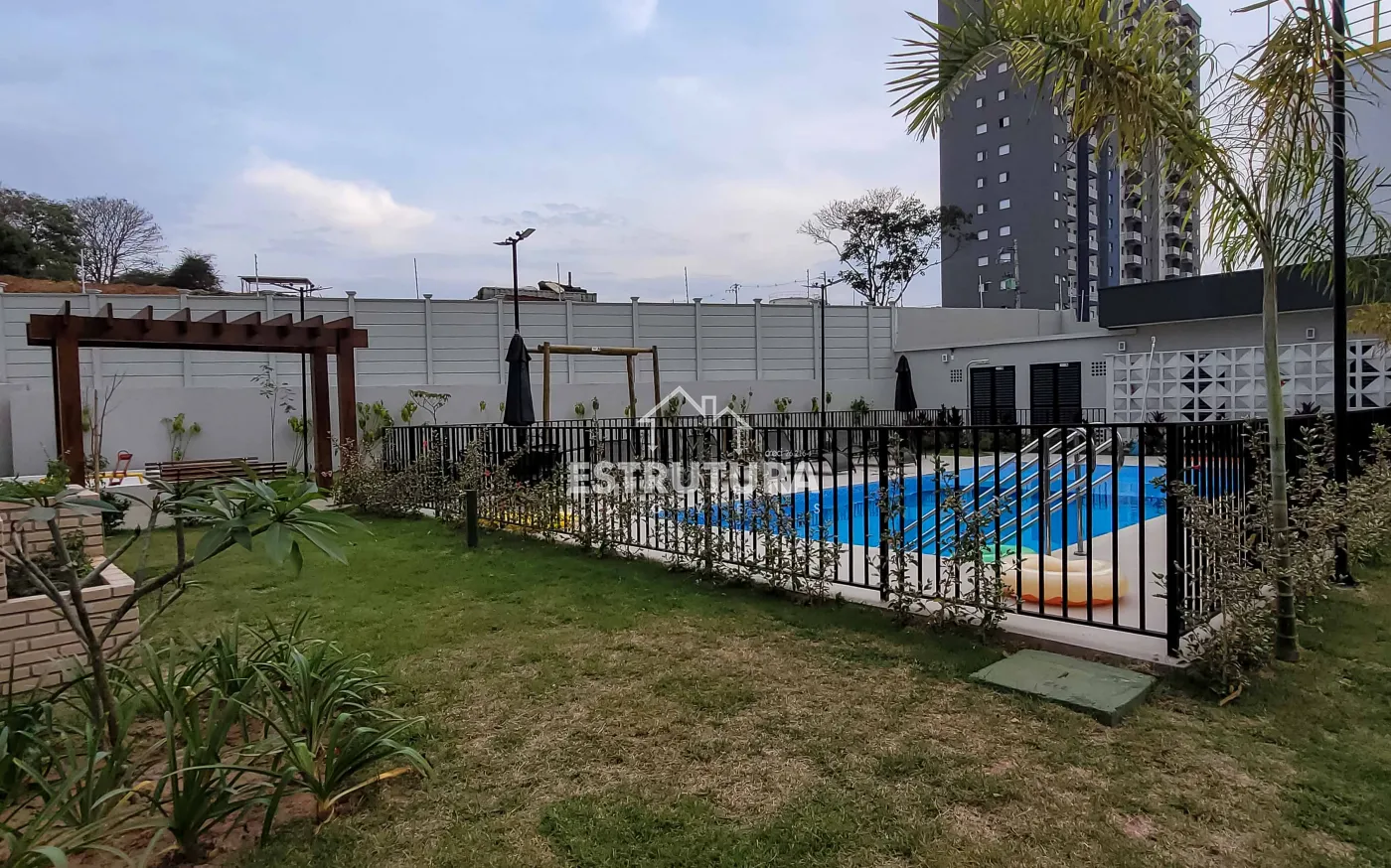 O condomínio oferece área de lazer completa contendo piscina, playground, área gourmet, salão de festas e vagas para visitantes.