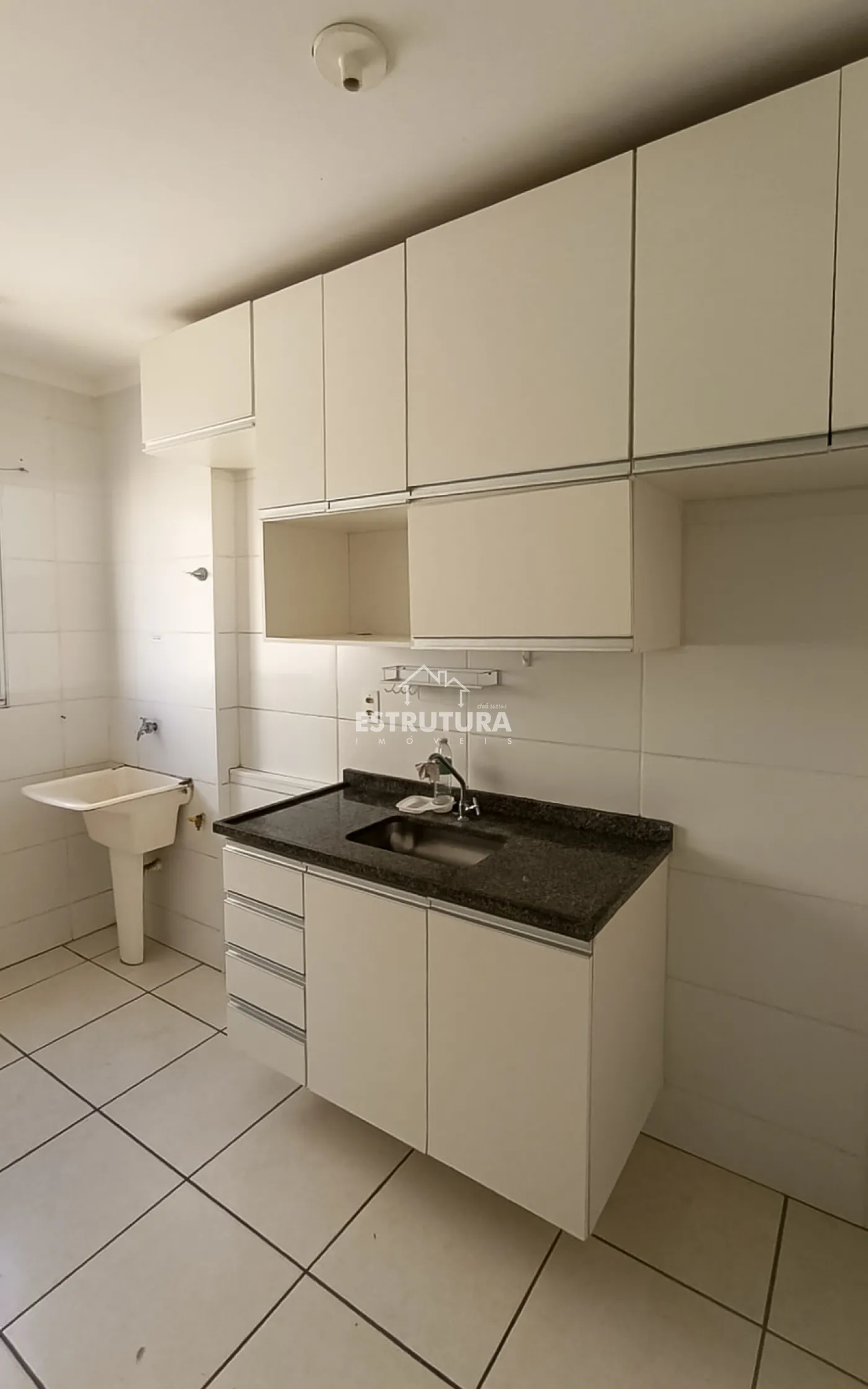 Apartamento para locação com 2 dormitórios, cozinha com gabinete, banheiro com box em blindex, lavanderia e 1 vaga de garagem.
