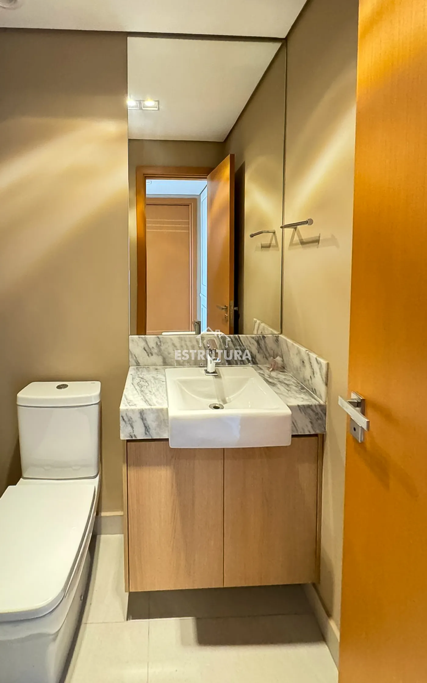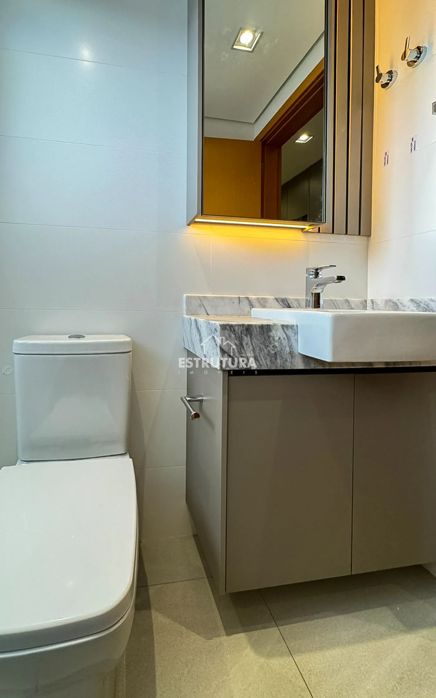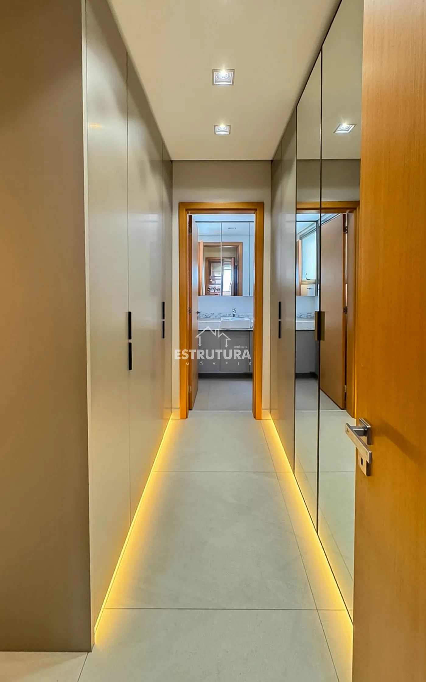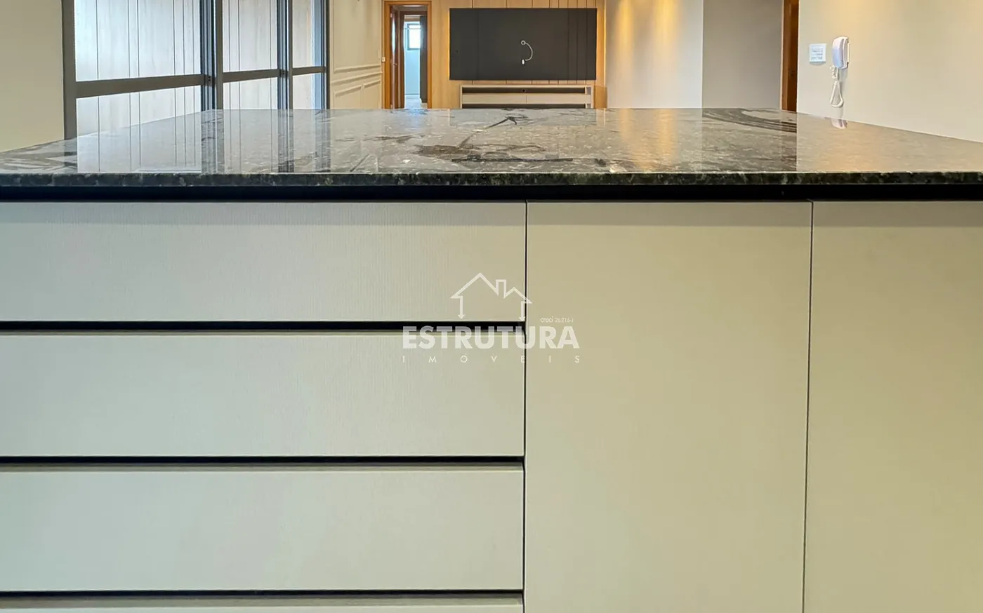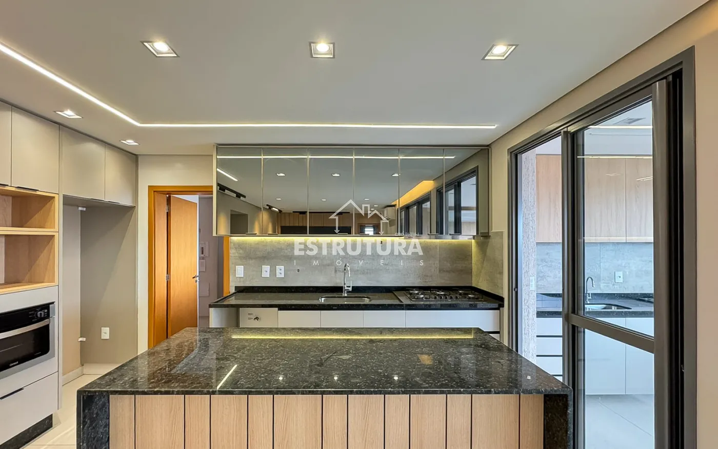 Apartamento de alto padrão com 3 suítes, todas equipadas com ar condicionado e móveis planejados. A sala estendida conta com uma cozinha planejada, forno e cooktop integrados, além da área de serviço e lavabo. Destaque para a sacada avarandada que proporciona uma vista deslumbrante e livre.