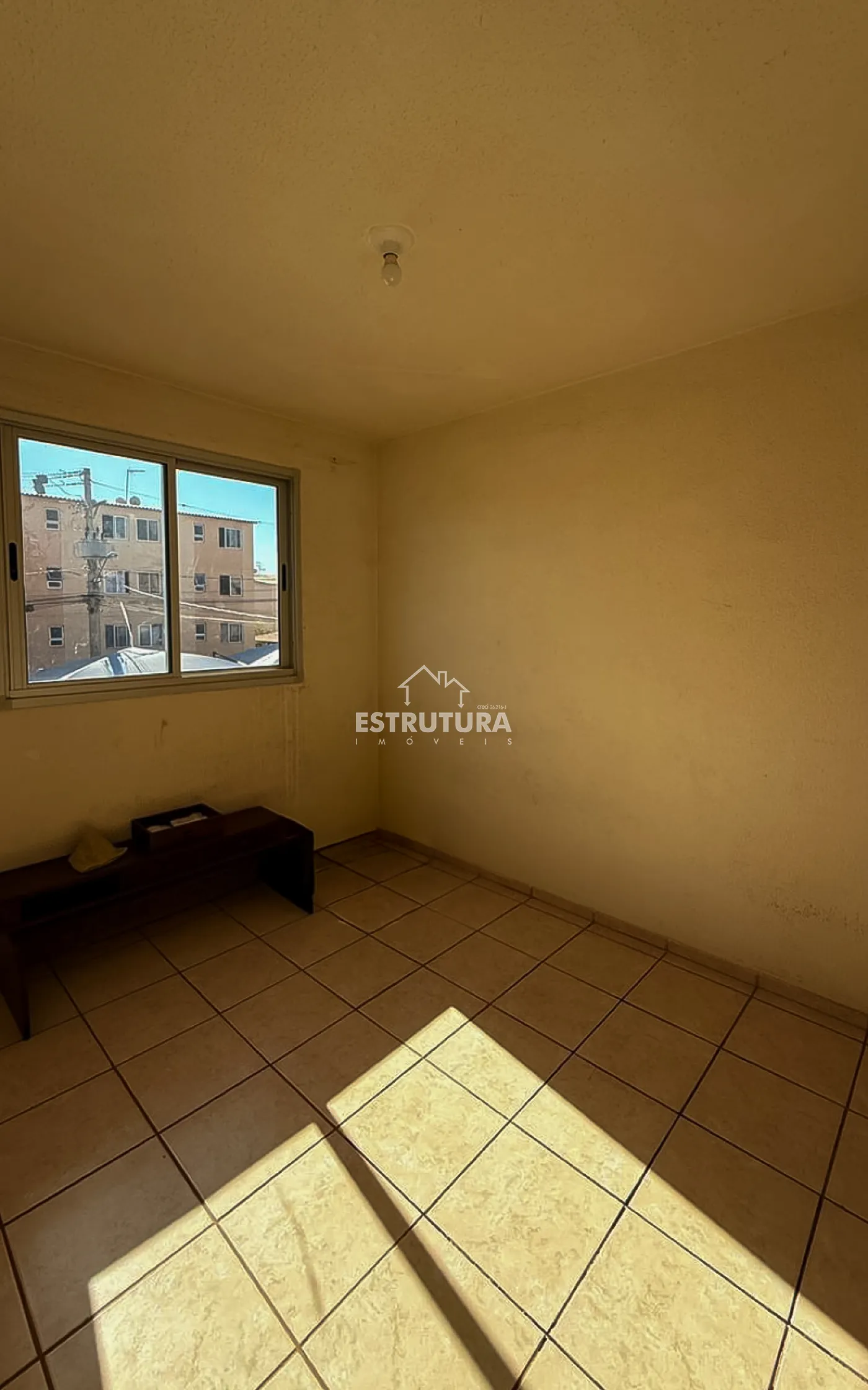 Apartamento com 2 quartos, 1 banheiro, sala de estar e jantar integradas, cozinha e área de serviço conjugadas.