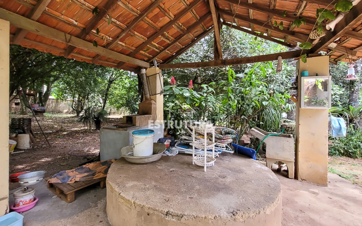 Linda chácara cercada pela natureza, com um amplo quintal repleto de árvores frutíferas. O imóvel conta com uma cozinha equipada com armários, sala aconchegante, banheiro social, lavanderia coberta e dois dormitórios, sendo um deles suíte. Além do espaço verde, a propriedade oferece um quiosque com fogão a lenha, piscina e garagem para vários carros. Uma excelente opção para quem busca lazer e tranquilidade em família.