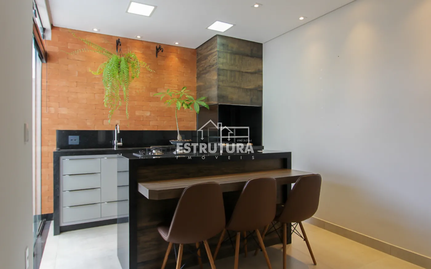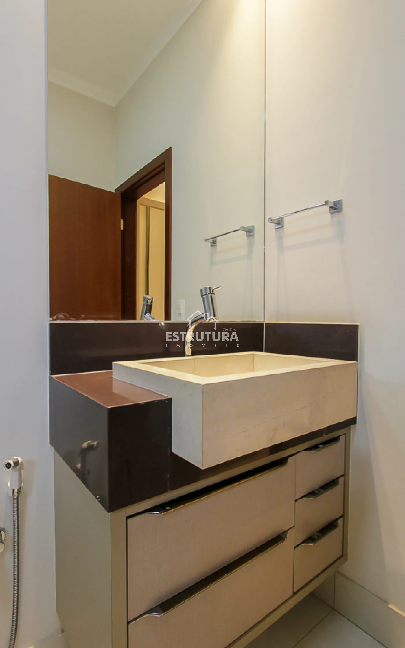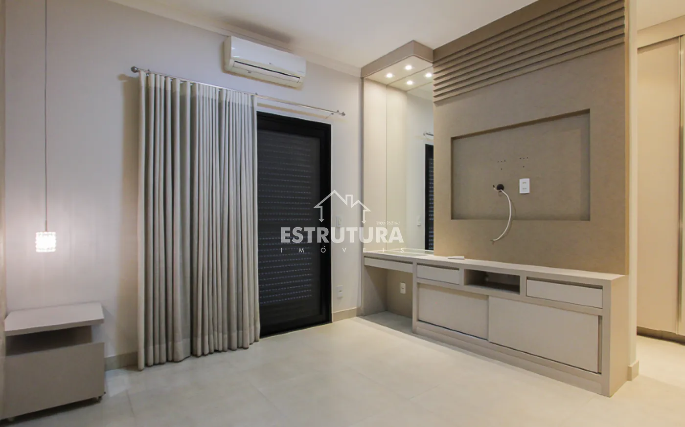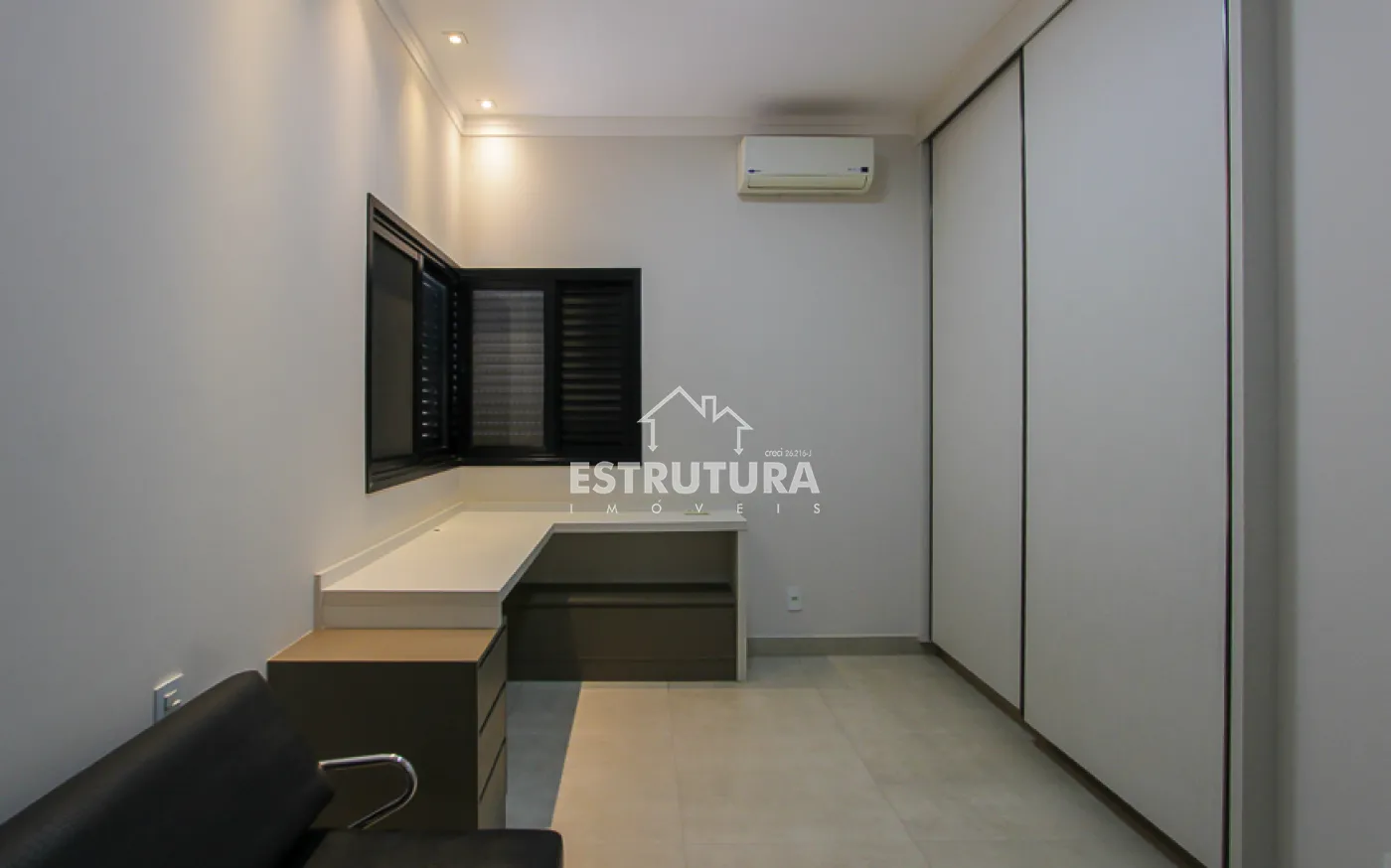 No piso superior, encontram-se três quartos espaçosos, sendo um deles uma suíte com closet, varanda e ar-condicionado. Os demais dormitórios possuem armários planejados e painel de TV. A casa também conta com sistema de aquecimento solar por caldeira, garantindo mais economia e sustentabilidade.