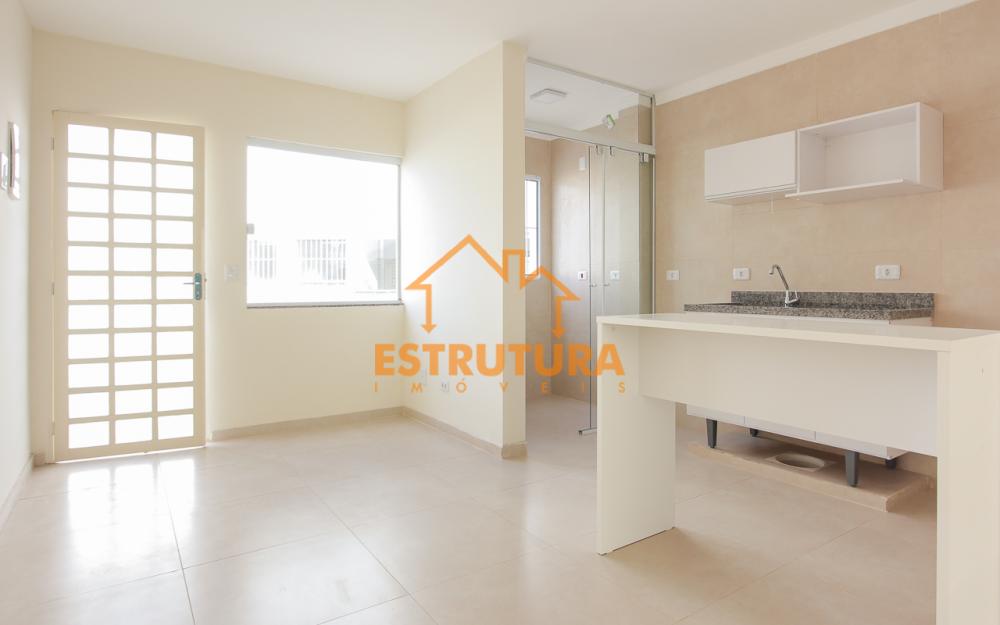 O pavimento térreo conta com sala de jantar, sala de visitas/TV, lavabo, cozinha com armários e balcão, área de serviço, pequeno quintal e uma vaga de garagem.