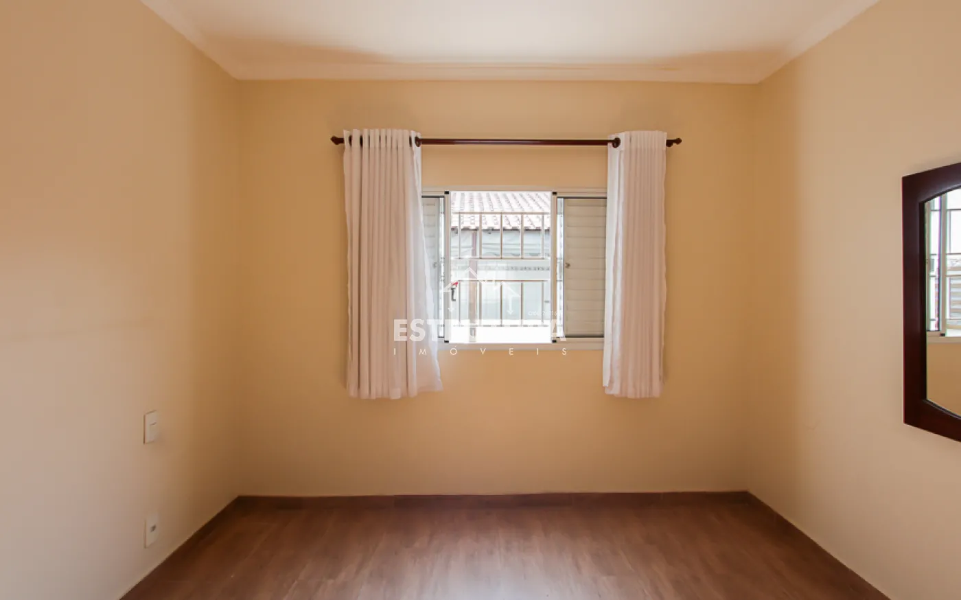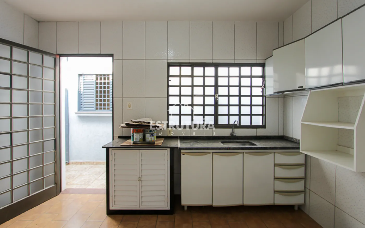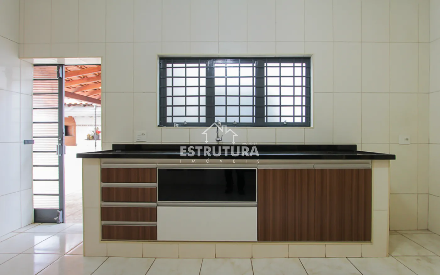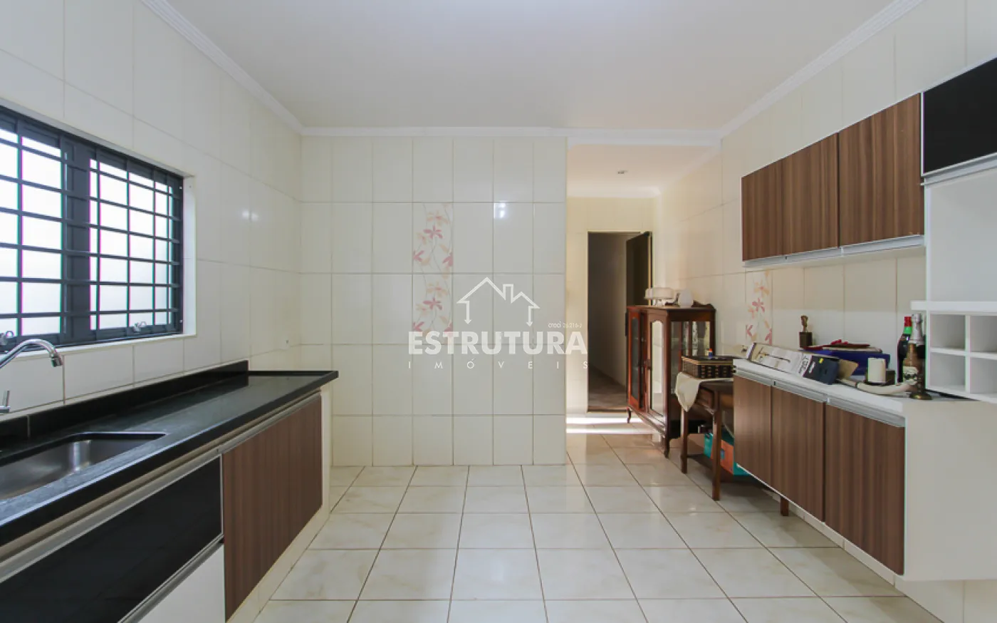 1 casa, com 2 dormitorios amplos sendo 1 com armario embutido e o outro com suite, 1 banheiro social, sala, cozinha ampla com armarios e gabinete.
