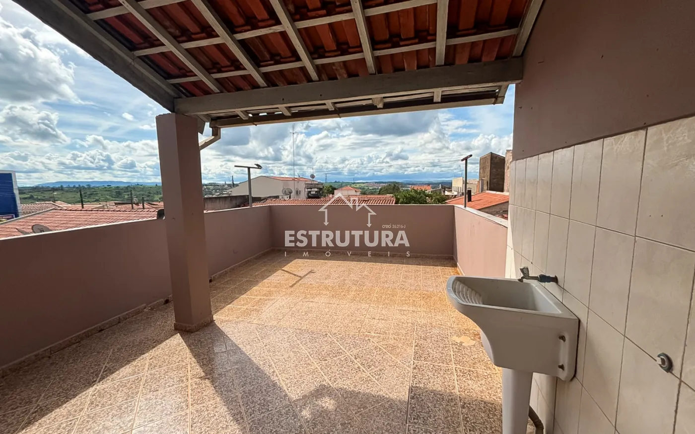 Casa em piso superior, possui sala espaçosa, 3 quartos sendo 1 suíte, cozinha com armários embutidos, 1 banheiros social, área de serviço coberta, e um quarto de despejo nos fundos. Vaga de garagem no estacionamento ao lado