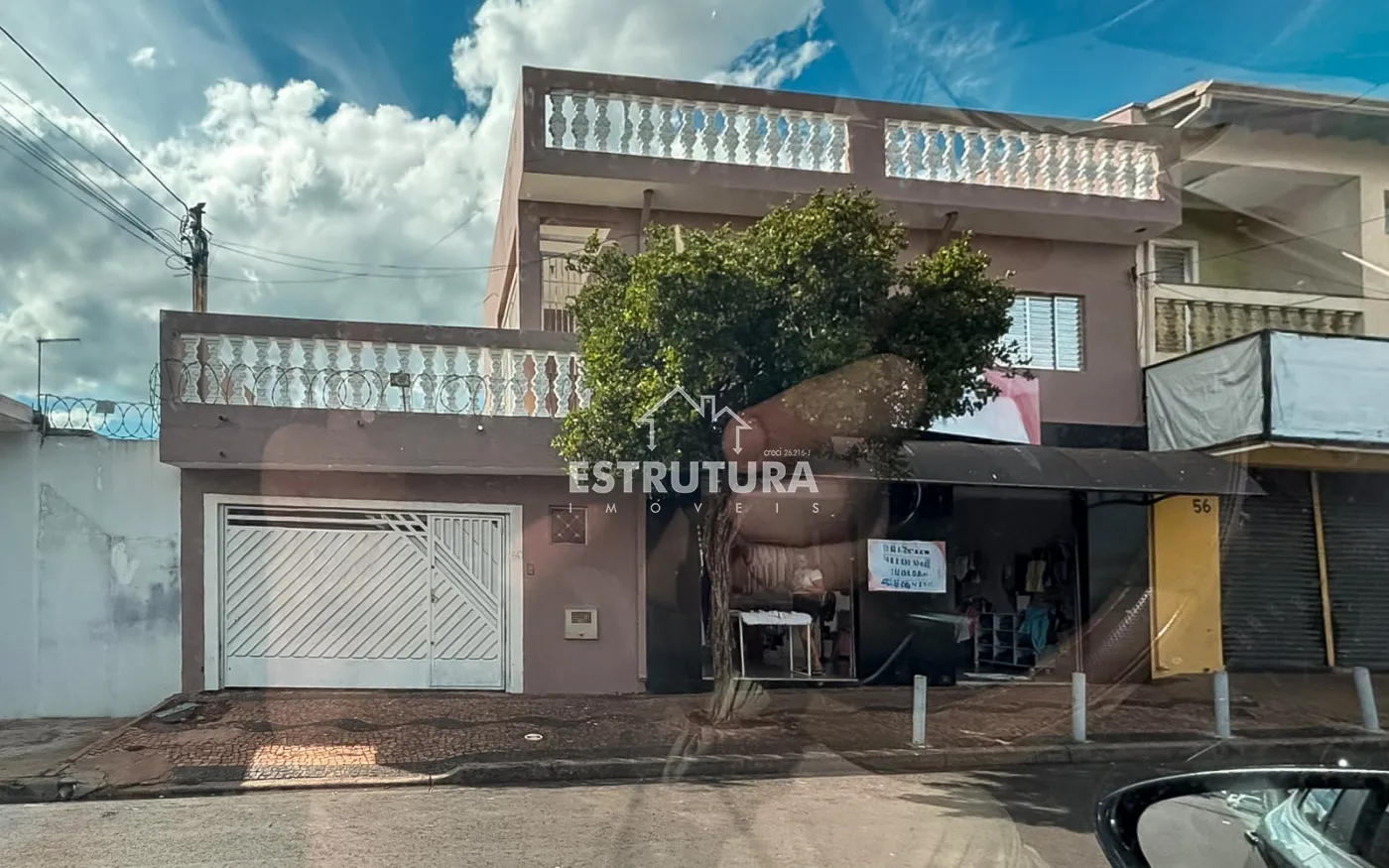 Sobrado contendo 3 quartos, 2 salas amplas, 2 cozinhas, 2 banheiros, piso superios com duas areas abertas, piso inferior com garagem para 2 veiculos.
