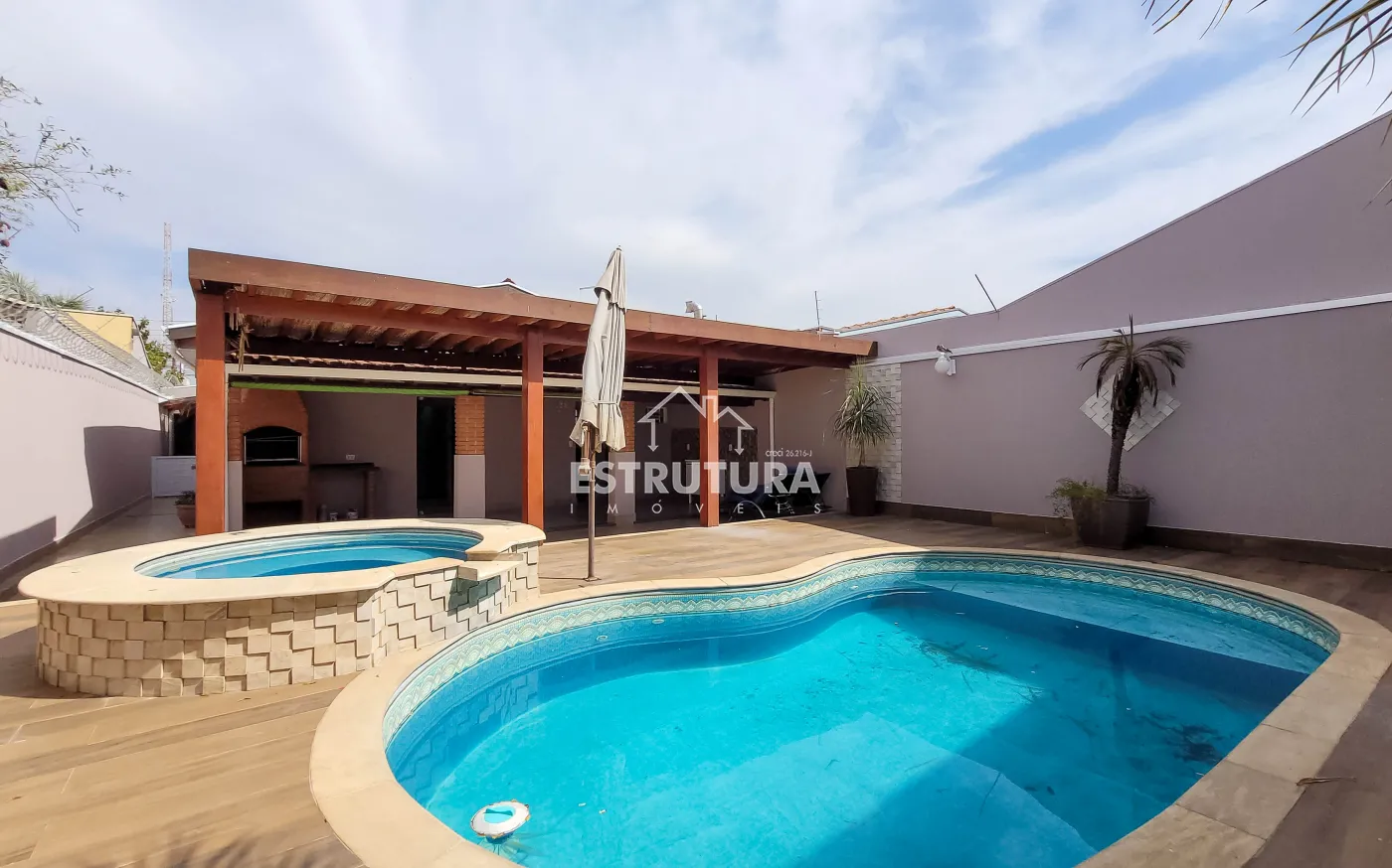 Excelente casa em ótima localização, com 3 dormitórios planejados sendo 1 suite, sala grande, cozinha toda planejada, 1 banheiro social, lavanderia, área gourmet conta com churrasqueira, 1 banheiro social, dispensa, quintal com piscina grande e Com hidro massagem do lado e garagem para 2 carros, portão fechado eletrônico.