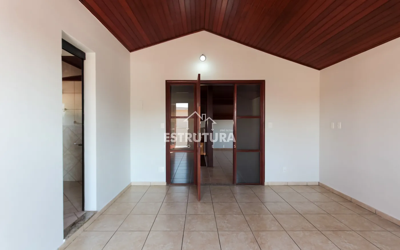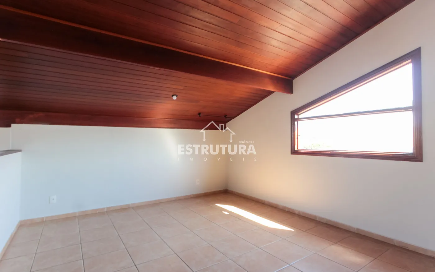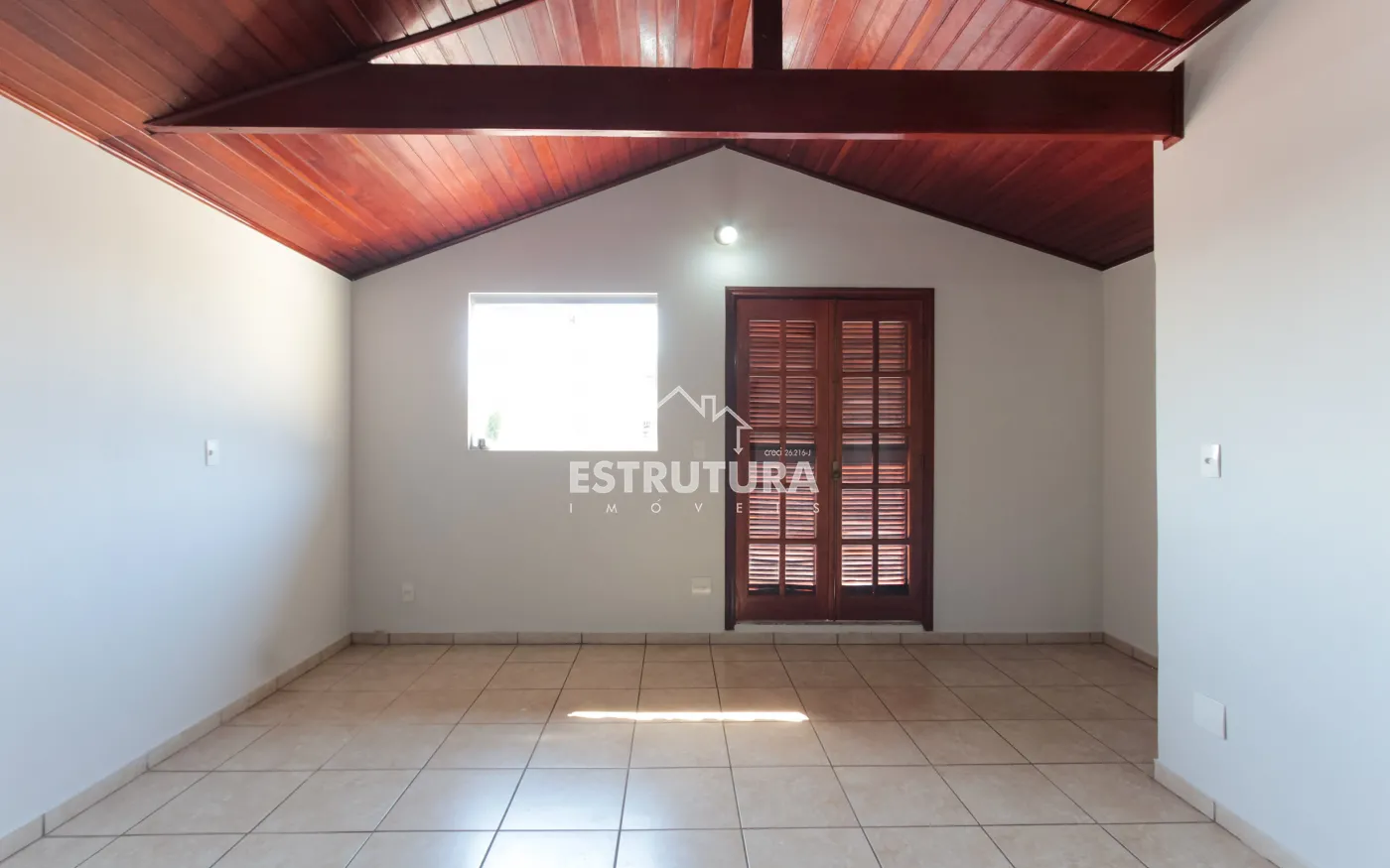 No piso superior, conta com sala ampla com detalhes em madeira, 1 dormitório com varanda, 1 suíte com hidromassagem e box em blindex.