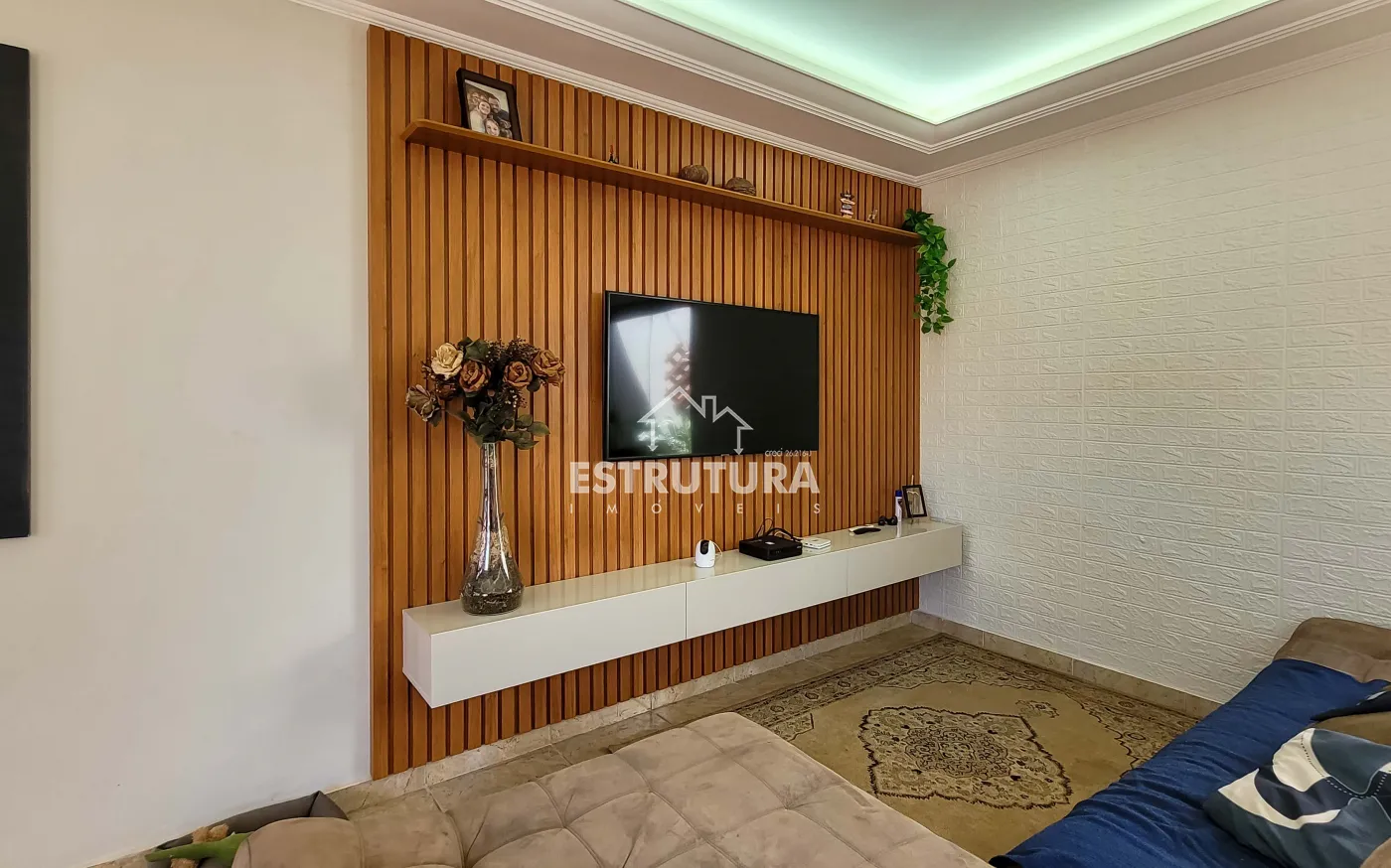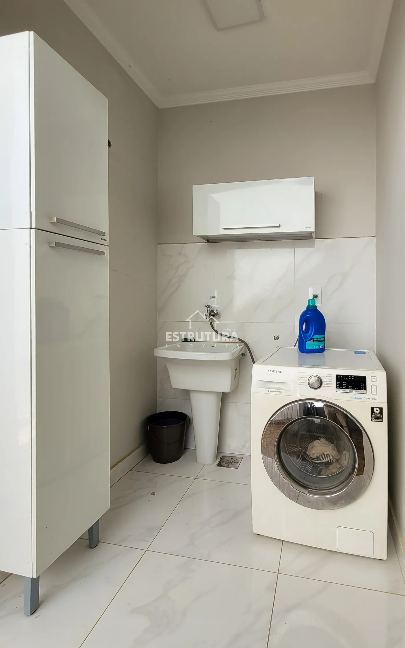 Casa com 3 dormitórios sendo dois com armários e 1 suite com hidromassagem, wc social, ampla sala de estar com painel de tv, cozinha, dispensa, lavabo, lavanderia, garagem para 2 carros, terraço e área de churrasco.