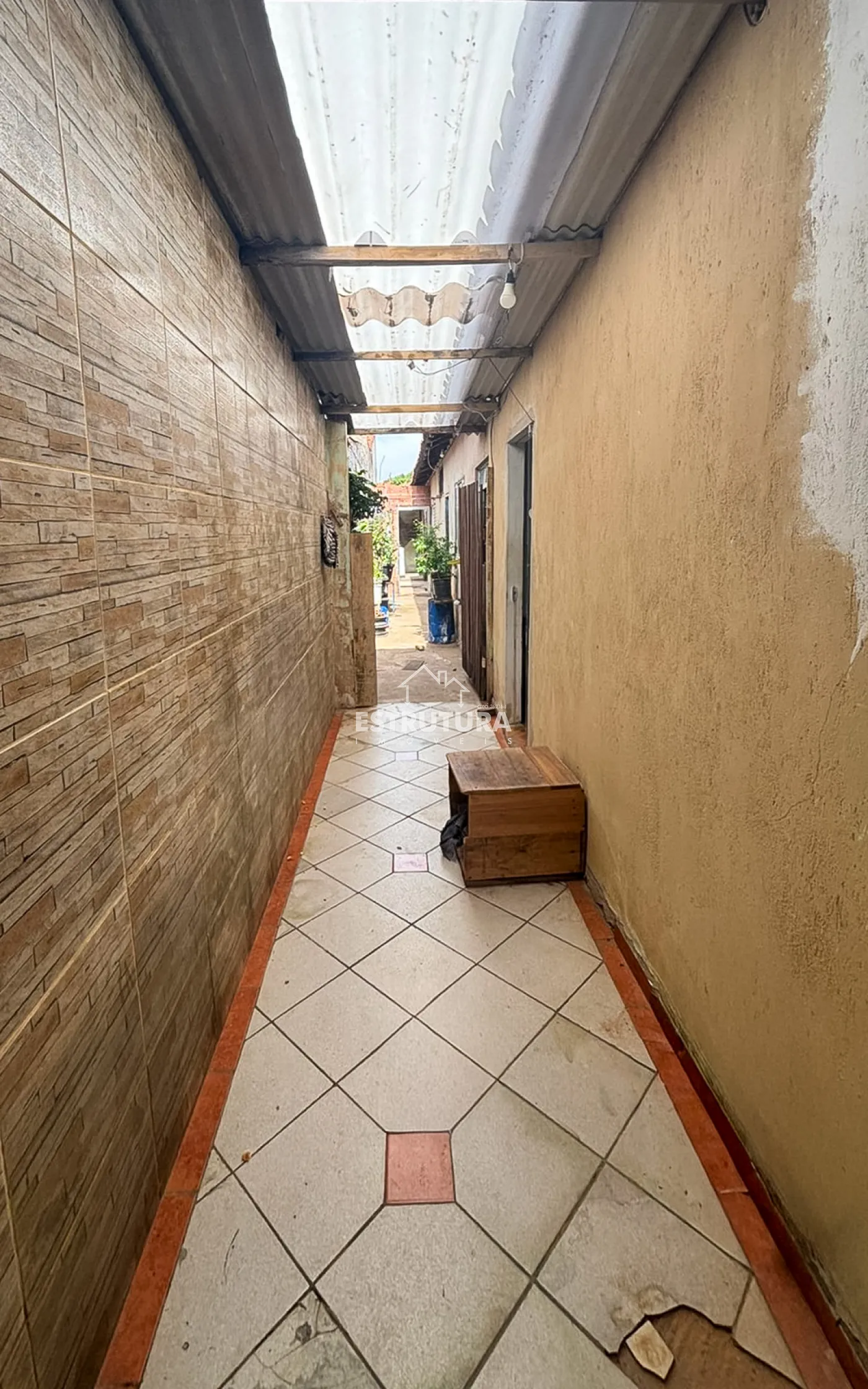 A casa conta com 2 quartos, sala, cozinha com gabinete, 1 banheiro social, área de serviço e garagem.