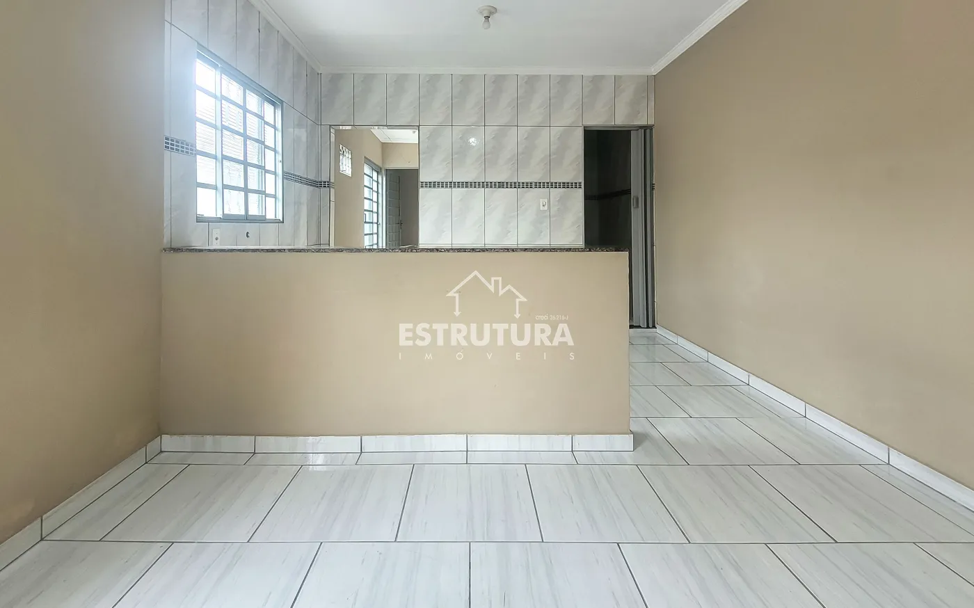 Casa com 2 quartos, sala, cozinha, 1 wc social, lavanderia, duas vagas de garagem