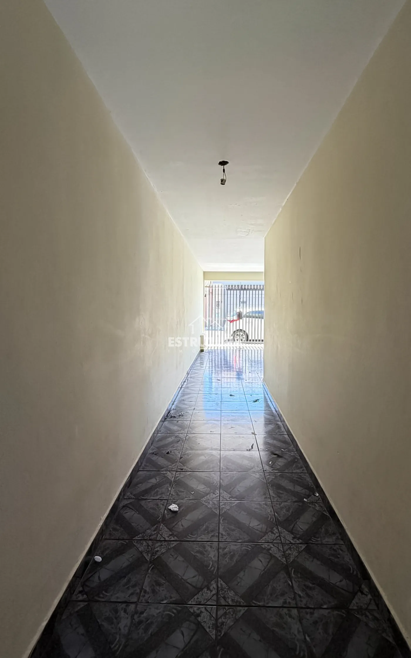 Casa residencial com 2 dormitórios, sendo 1 suíte, sala, cozinha, banheiro social e garagem para 1 carro.