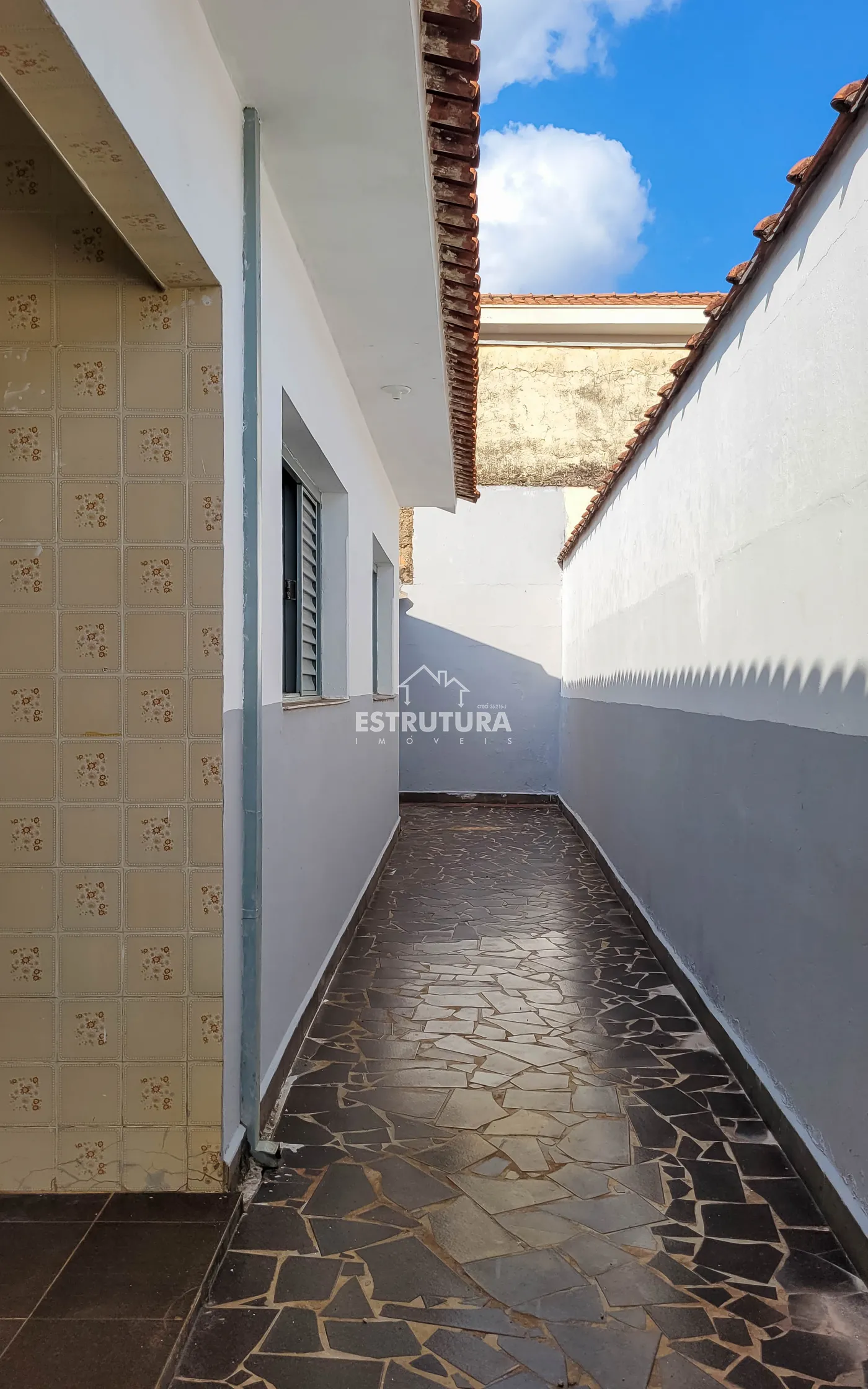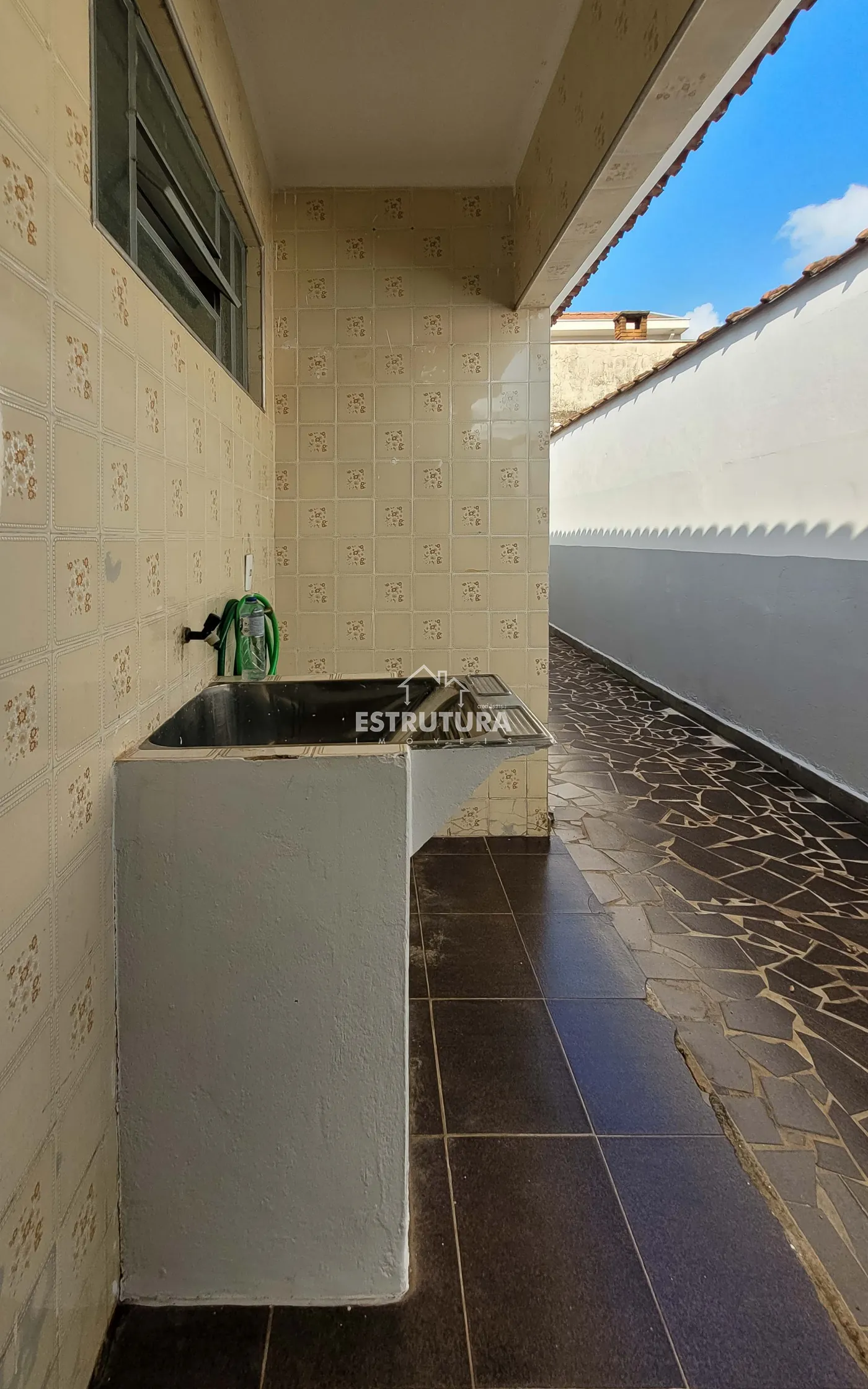 Imóvel com 2 dormitórios, 1 banheiro, sala de estar, cozinha, pequeno quintal coberto, lavanderia e garagem para 2 carros.