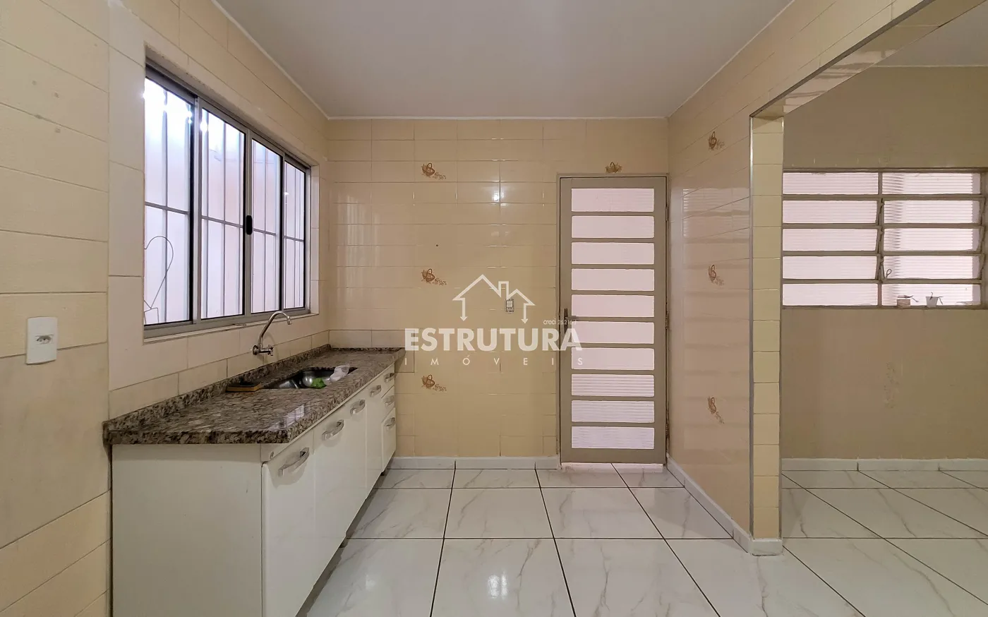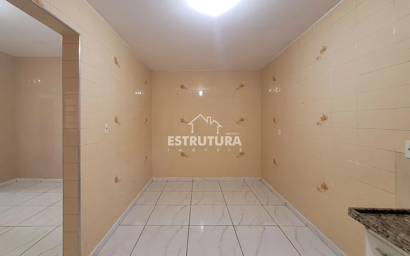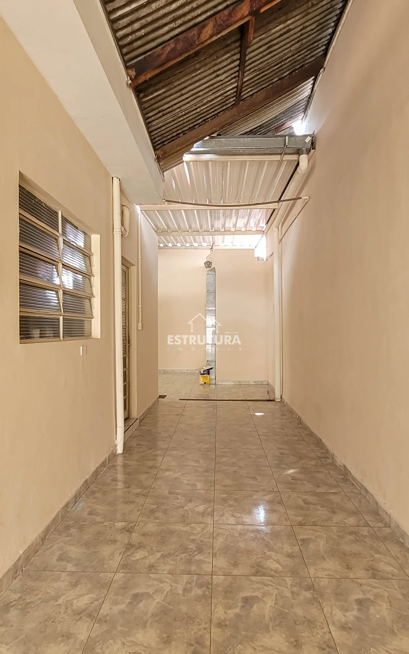 Nos fundos possui um pequeno espaço com pia, e um banheiro.