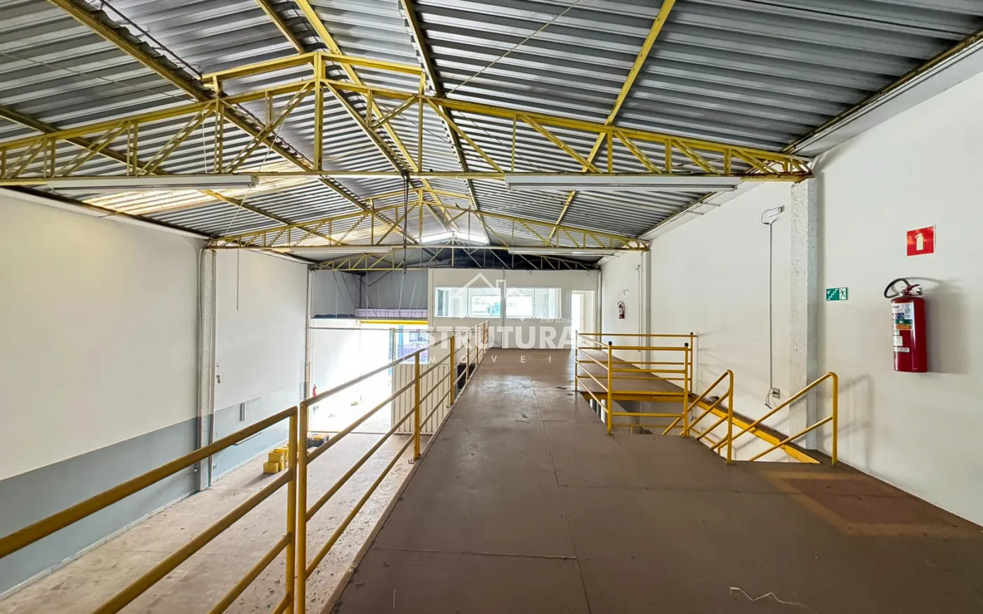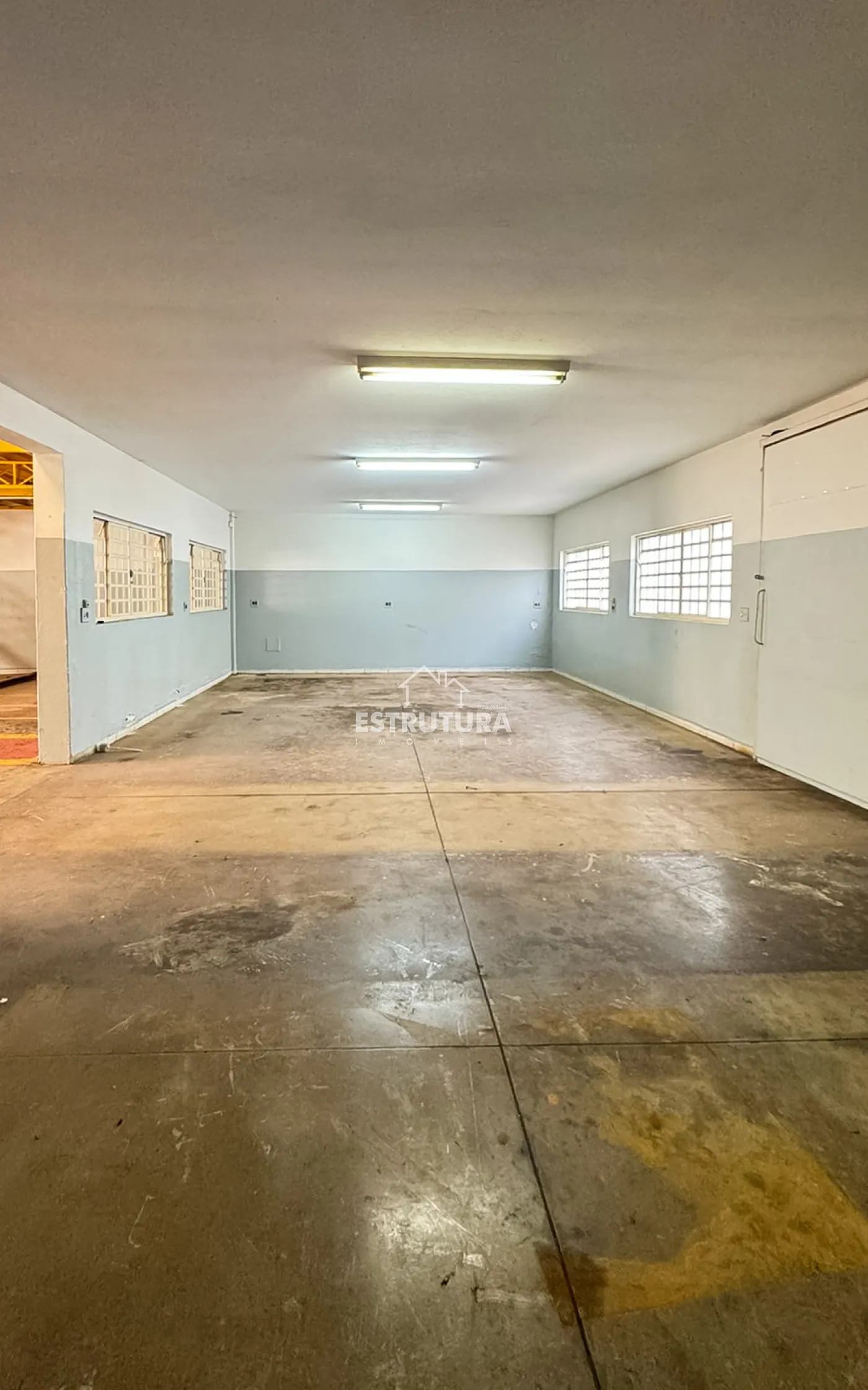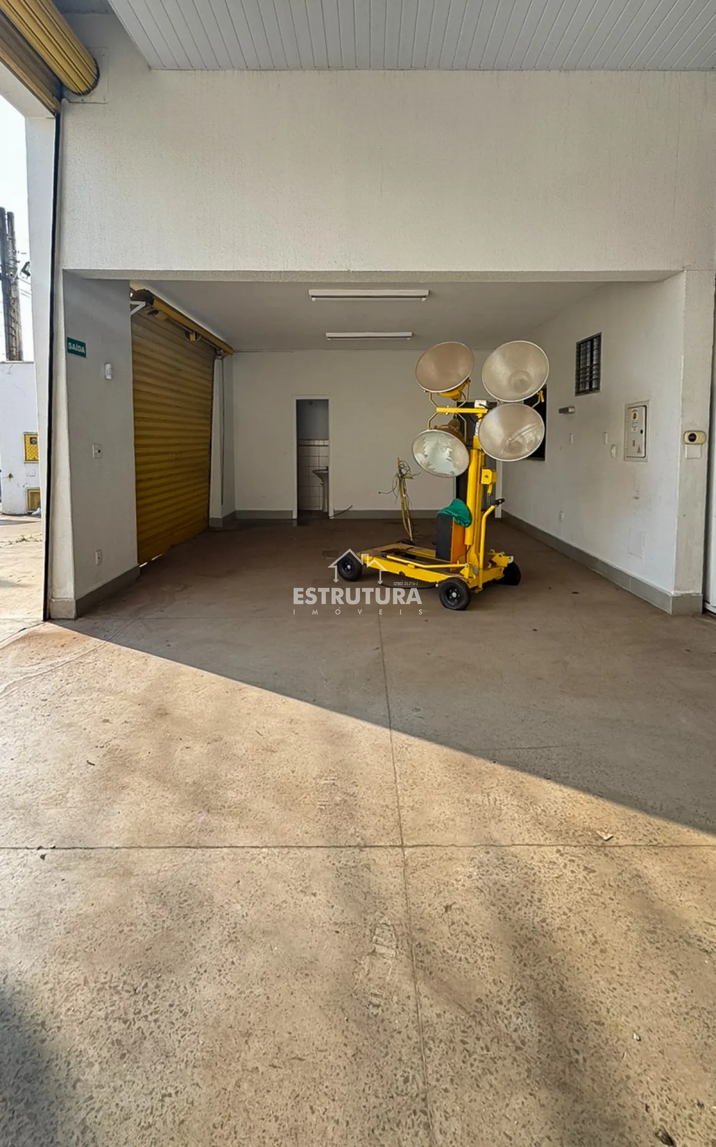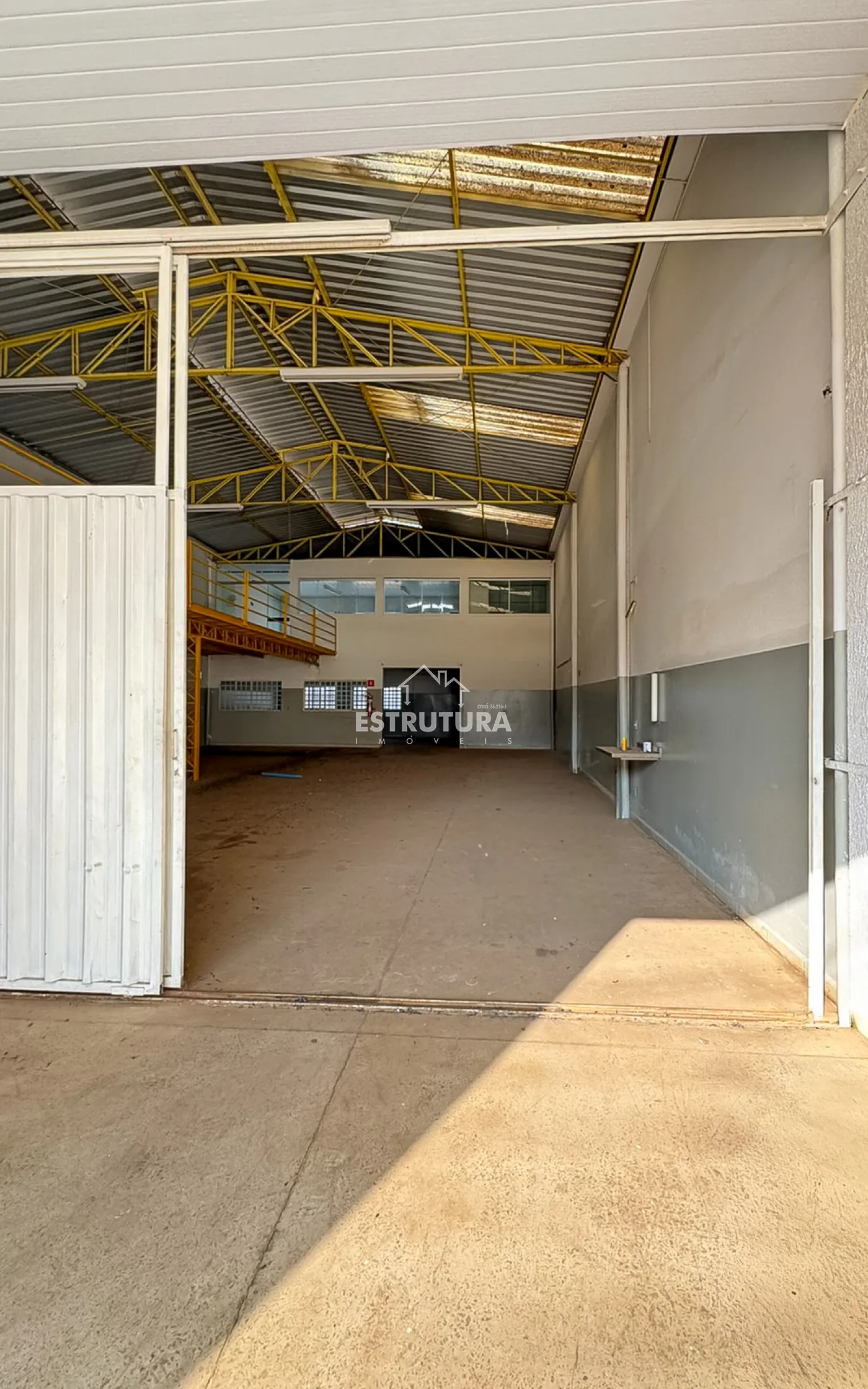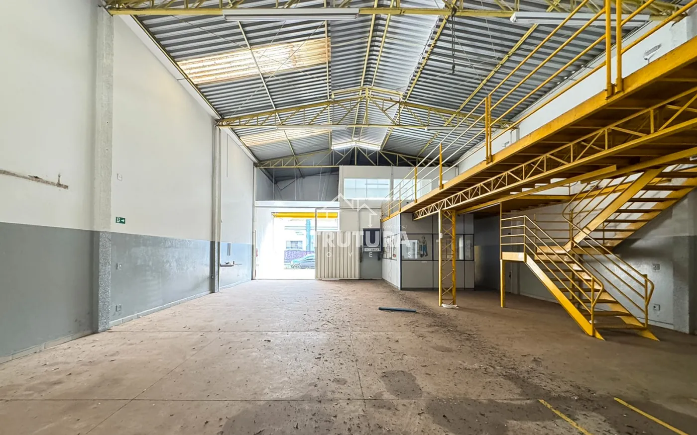 Barracão com 12m² de frente, contendo 4 vagas para carros recuada, pé direito de 6m² de altura e portas automatizadas.