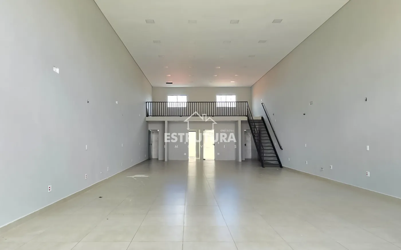 Ótima Oportunidade! Barracão NOVO em ótima localização e excelente fachada com abertura frontal para vitrine. Área total de 463,68 m². Salão com amplo espaço livre de 324 m², pé direito de 6 m, barra impermeável e piso de concreto polido de alta resistência. Com portão eletrônico para caminhões e porta de acesso individual, com fechadura eletrônica, porteiro e interfones instalados. Possui 2 banheiros 1 WC PNE, copa e área de serviço, todos lajotados, com pisos e revestimentos cerâmicos até o teto. Áreas de iluminação com grades de segurança. Recuo para estacionamento. Possui ligação para energia trifásica, iluminação de emergência, sinalização e extintores instalados. Já preparado para: instalação de energia fotovoltaica, sistema de monitoramento por câmeras e ar-condicionado. Já possui atestado do corpo de bombeiros CLCB e com toda a documentação em ordem com projeto aprovado pela Prefeitura Municipal. Agende uma visita!