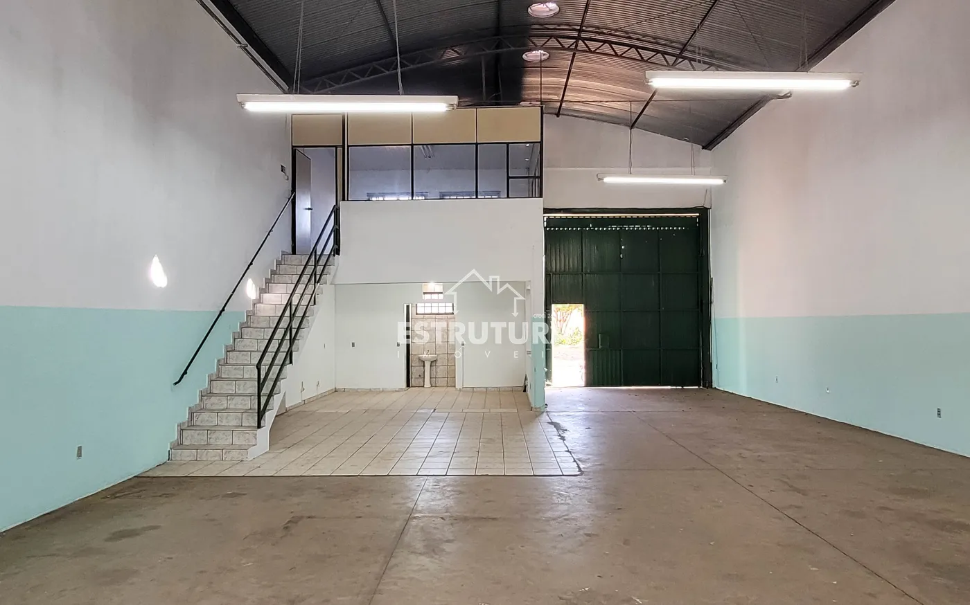 Barracão comercial em excelente localização, com amplo espaço, pé direito alto, mezanino com escritório, 2 wcs, cozinha, e recuo para 3 carros