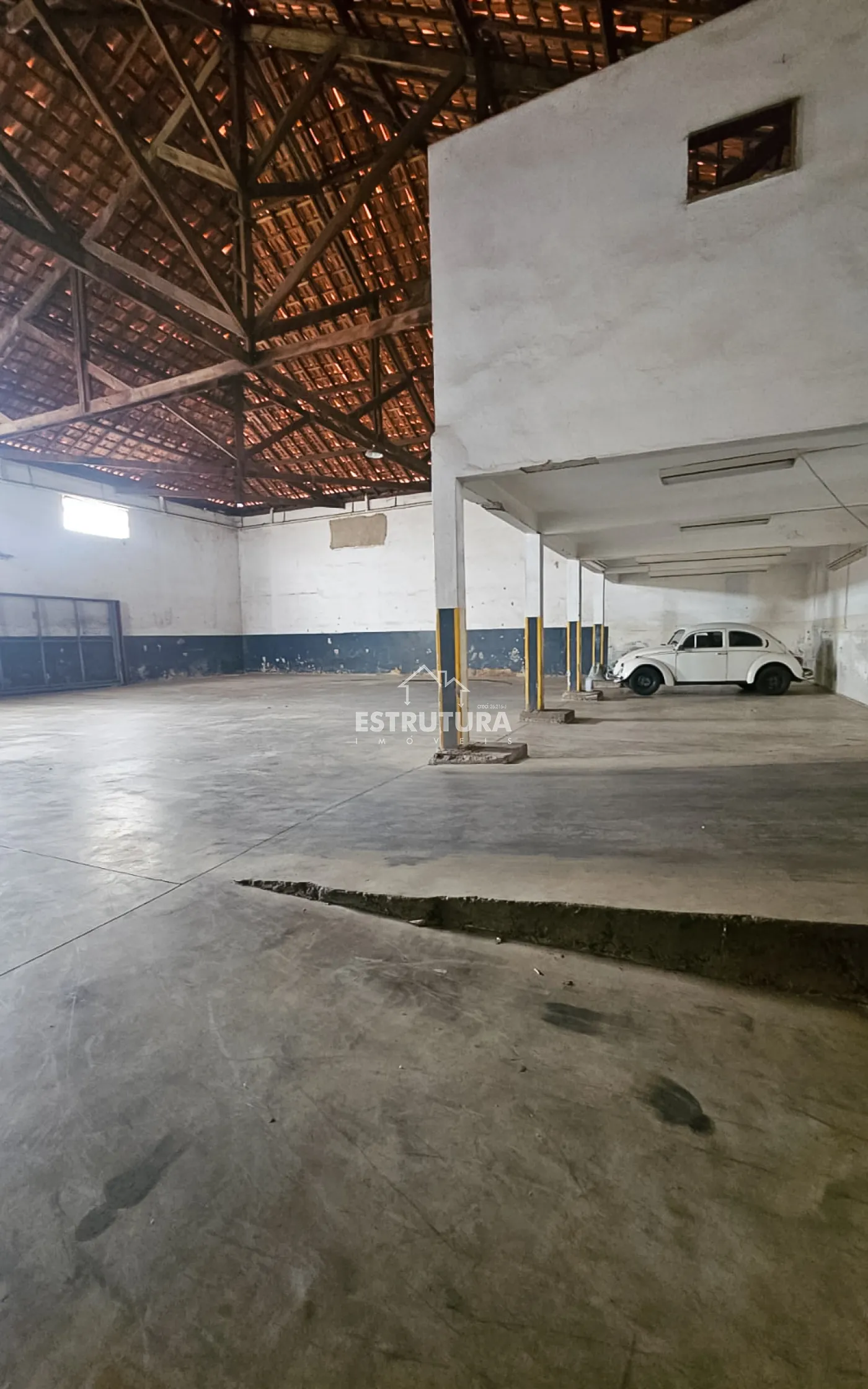 Barracão comercial em excelente localização. Conta com 2 banheiros privativos, mezanino e parte inferior fechada com blindex e piso em porcelanato, ideal para escritório ou recepção. Amplo espaço interno, versátil e pronto para receber sua empresa.