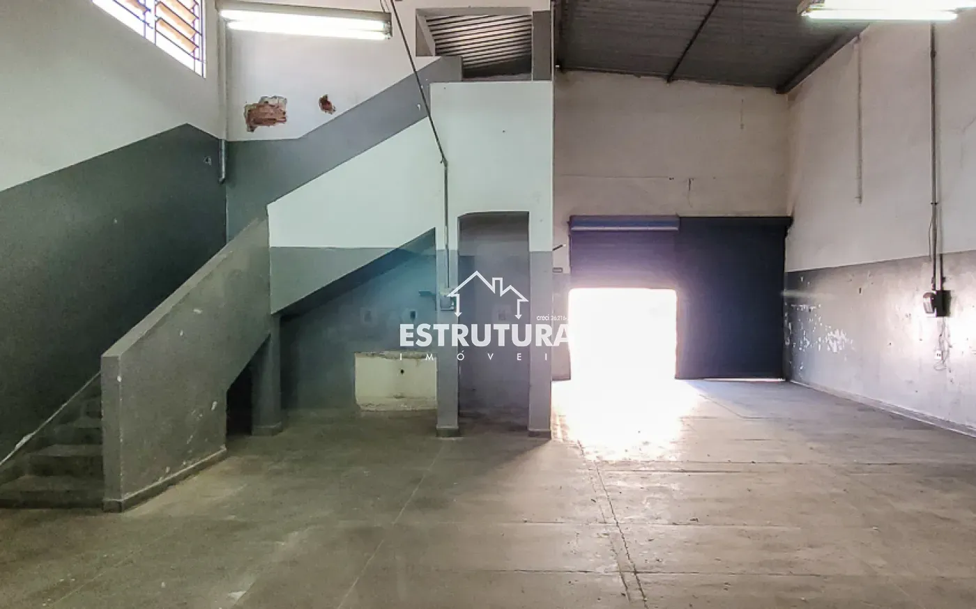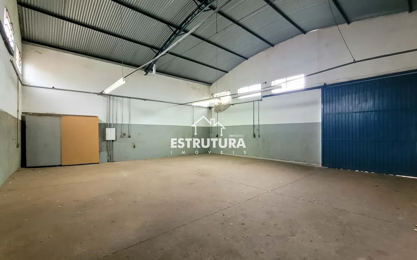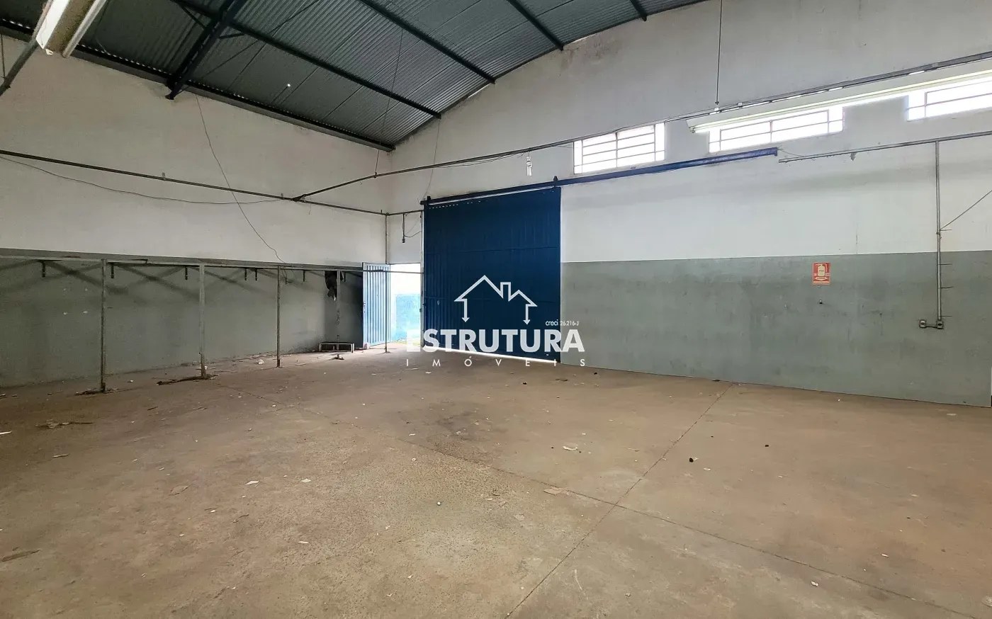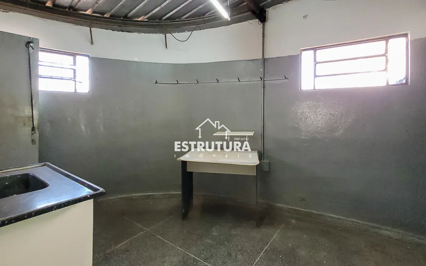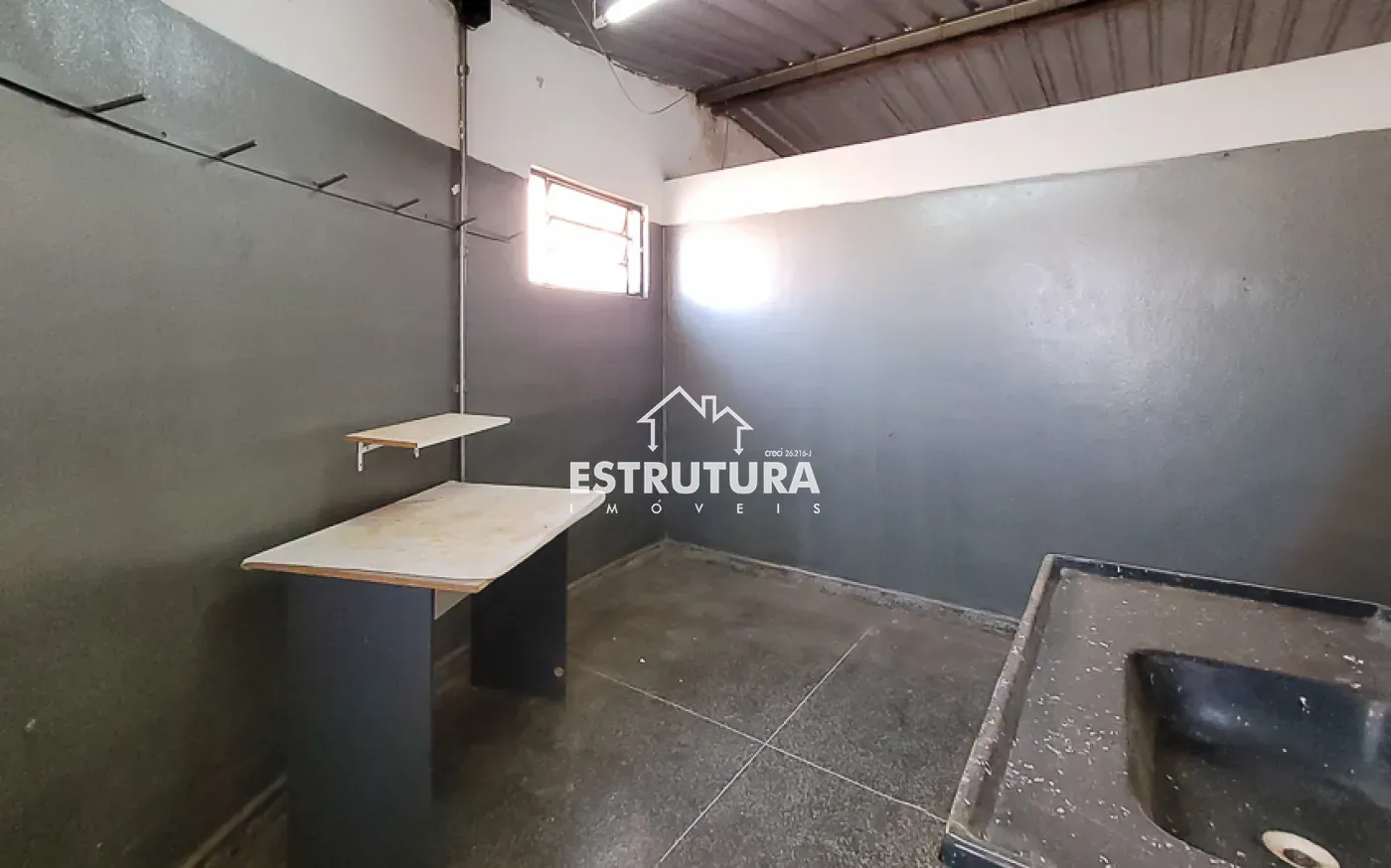 1 banheiro, sala para escritório, cozinha a energia trifásica e porta de aço de rolar.
