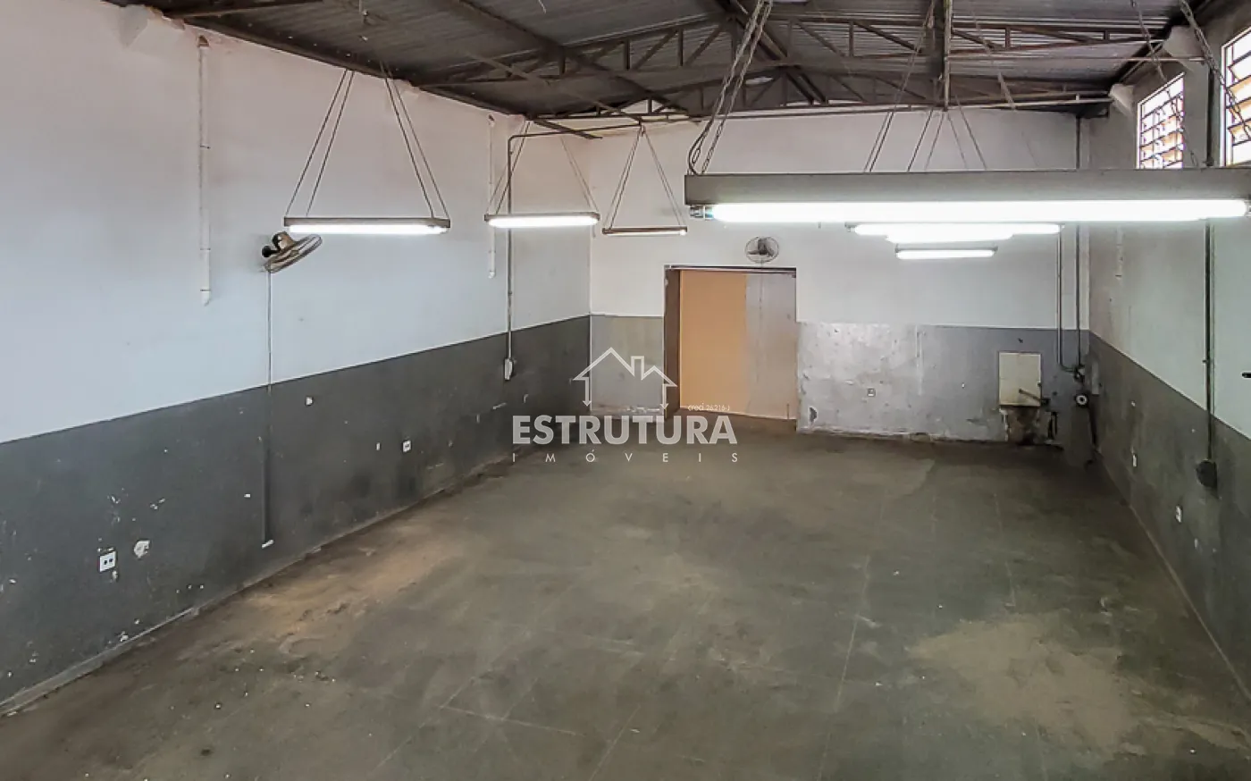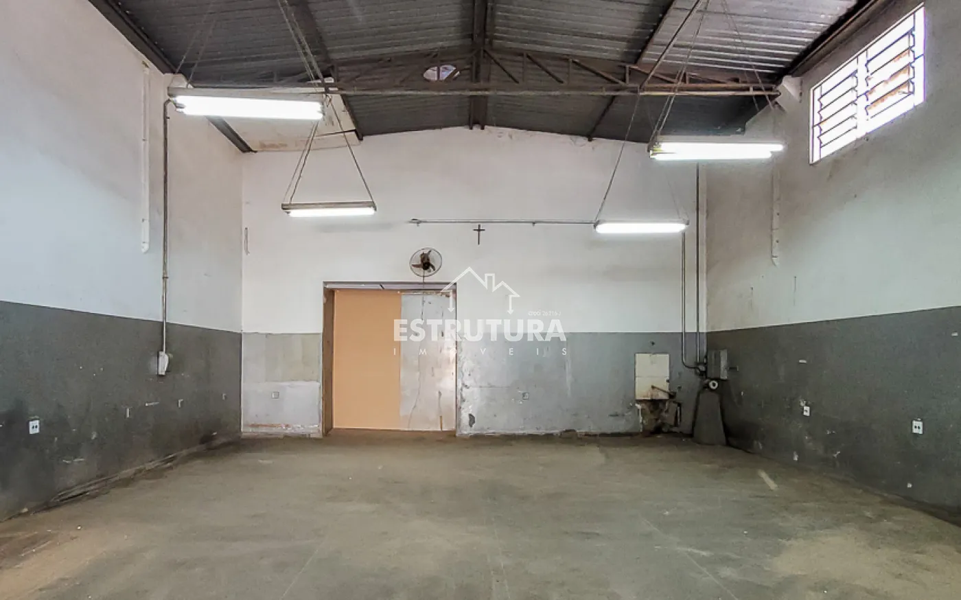 Barracão de esquina com 250 metros, piso superior conta com 1 banheiro, sala para escritório,cozinha, a energia trifásica e porta de aço de rolar.