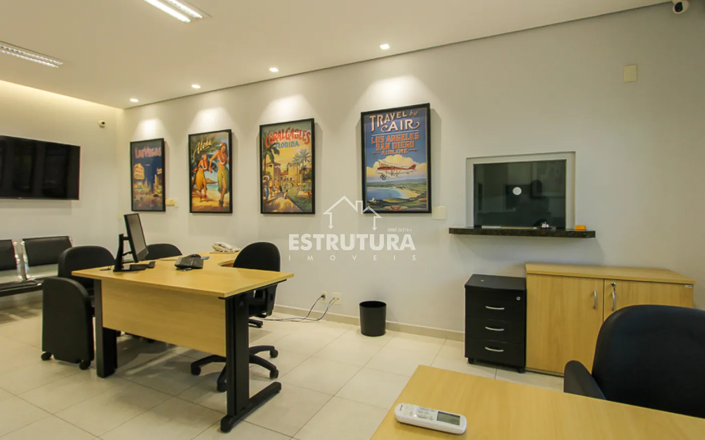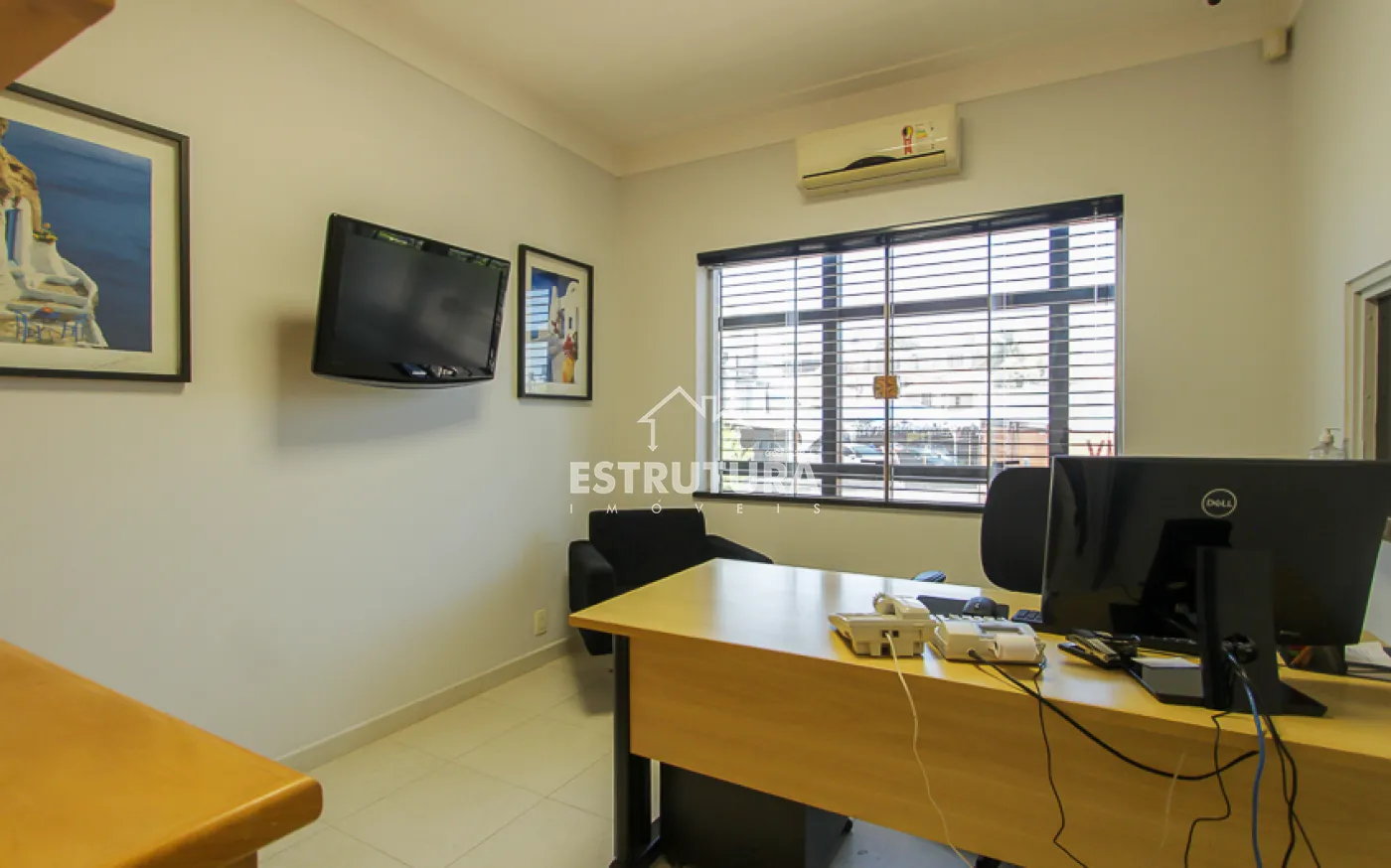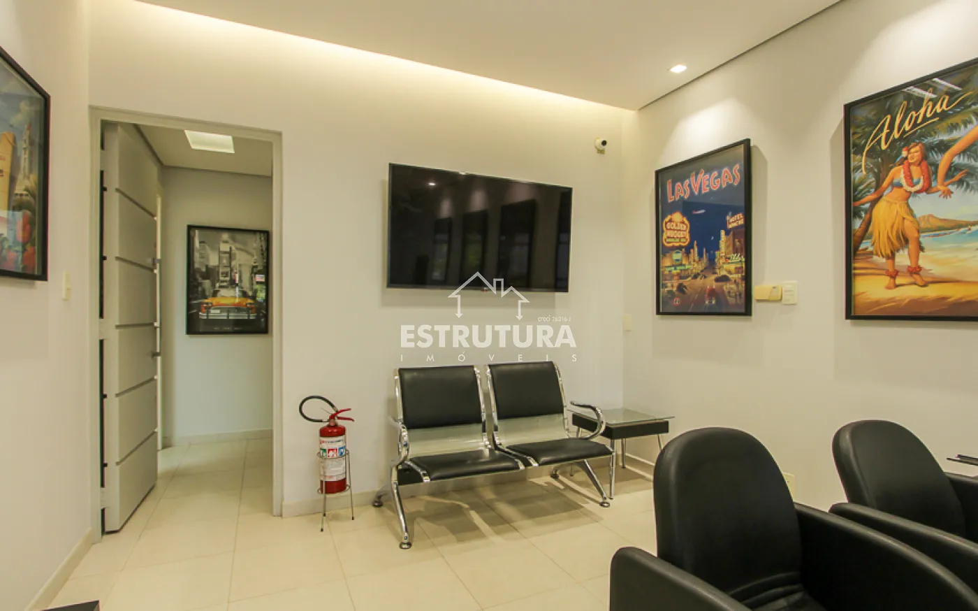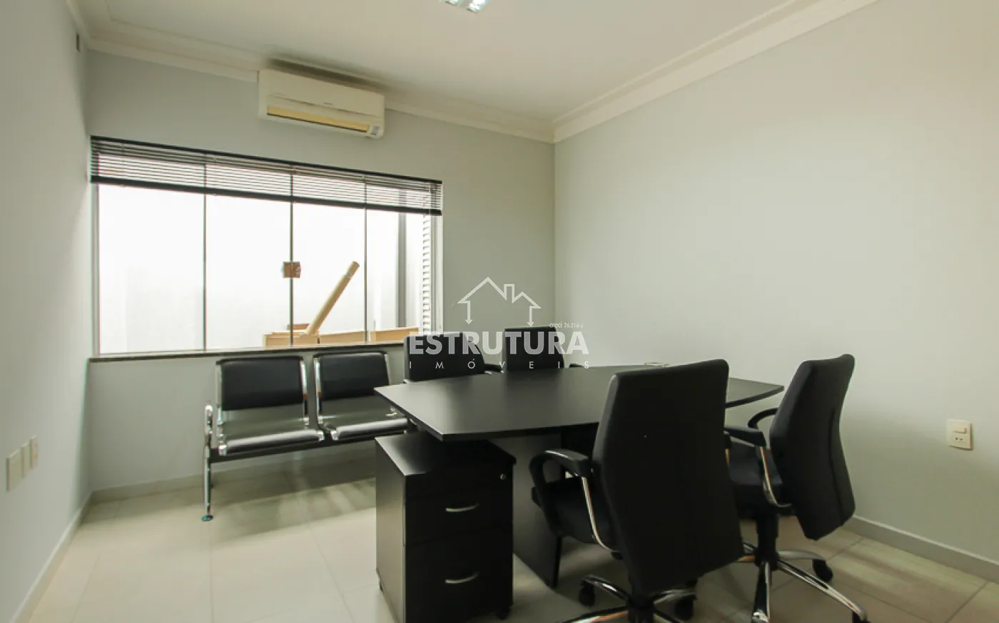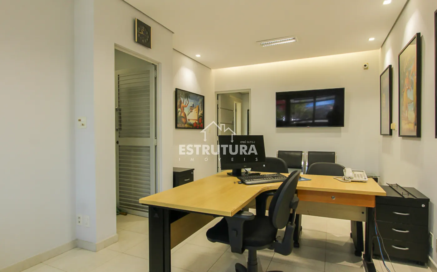 Fachada toda em blindex, contendo recepção, acesso às salas com porta blindada, 6 salas todas mobiliadas, equipadas com armários, ares condicionados, mesas, cadeiras, computadores e telefones, 03 banheiros, cozinha com armários, lavanderia coberta e quarto despejo.