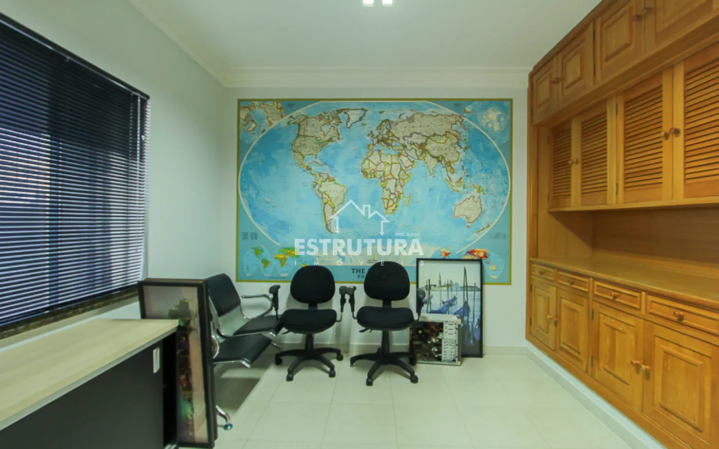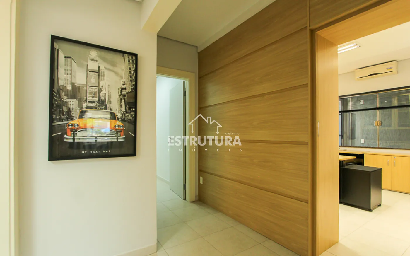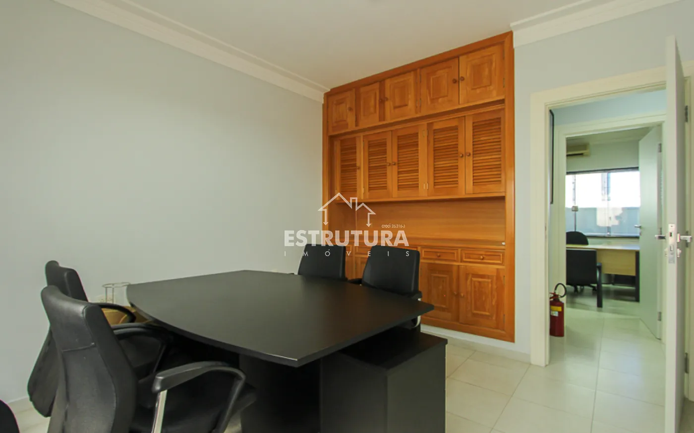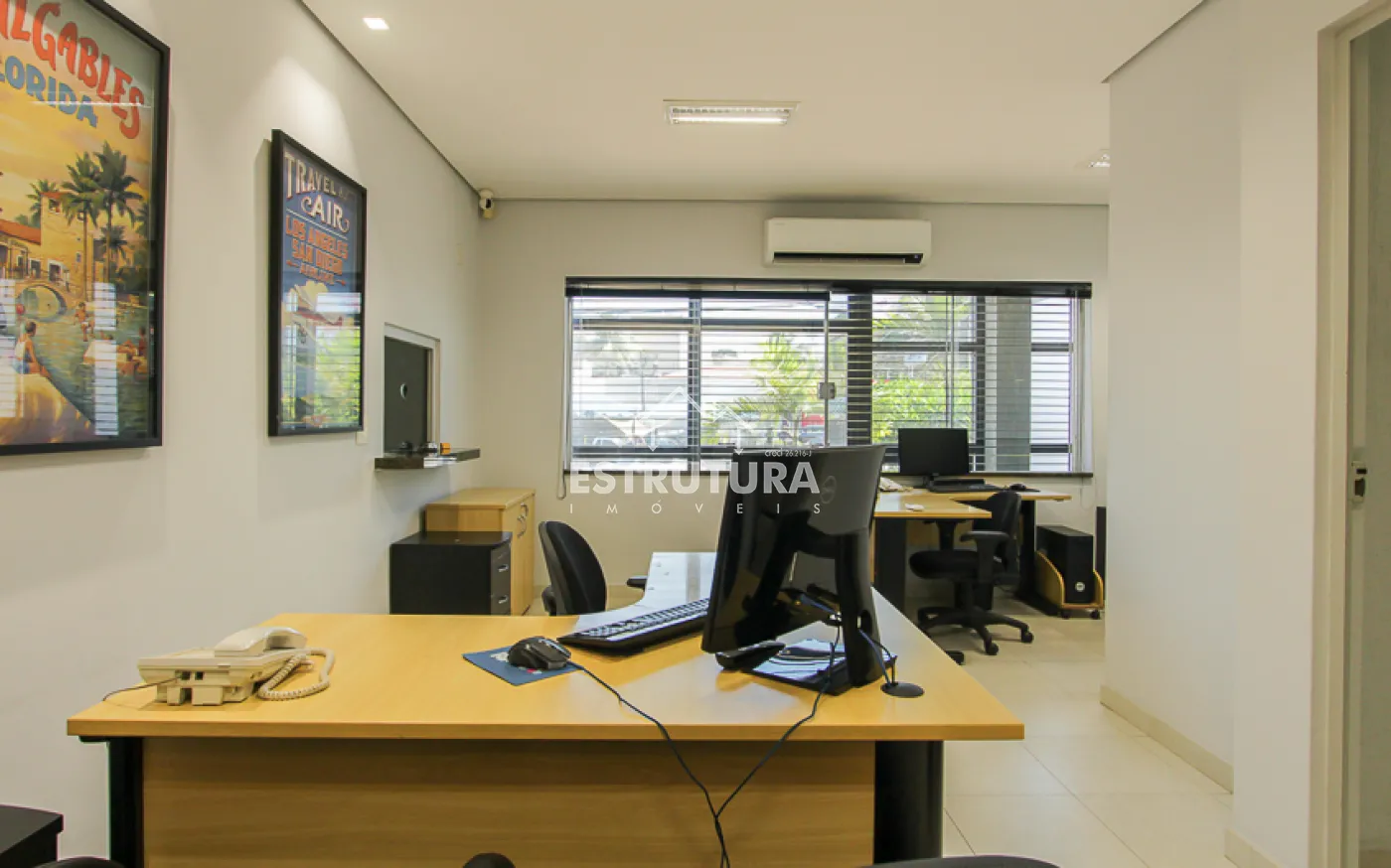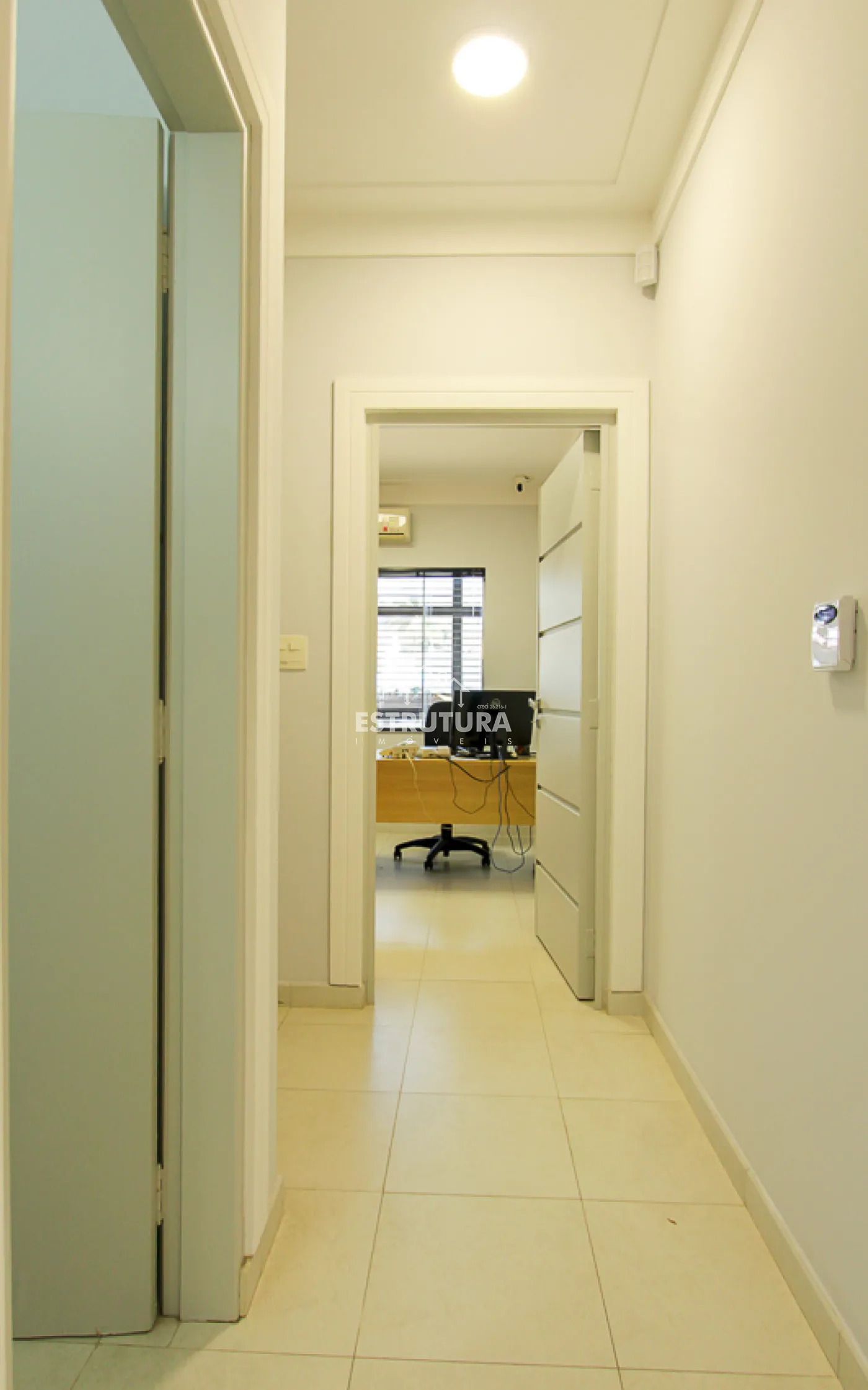 Fachada toda em blindex, contendo recepção, acesso às salas com porta blindada, 6 salas todas mobiliadas, equipadas com armários, ares condicionados, mesas, cadeiras, computadores e telefones, 03 banheiros, cozinha com armários, lavanderia coberta e quarto despejo.
