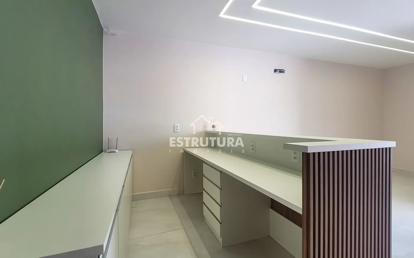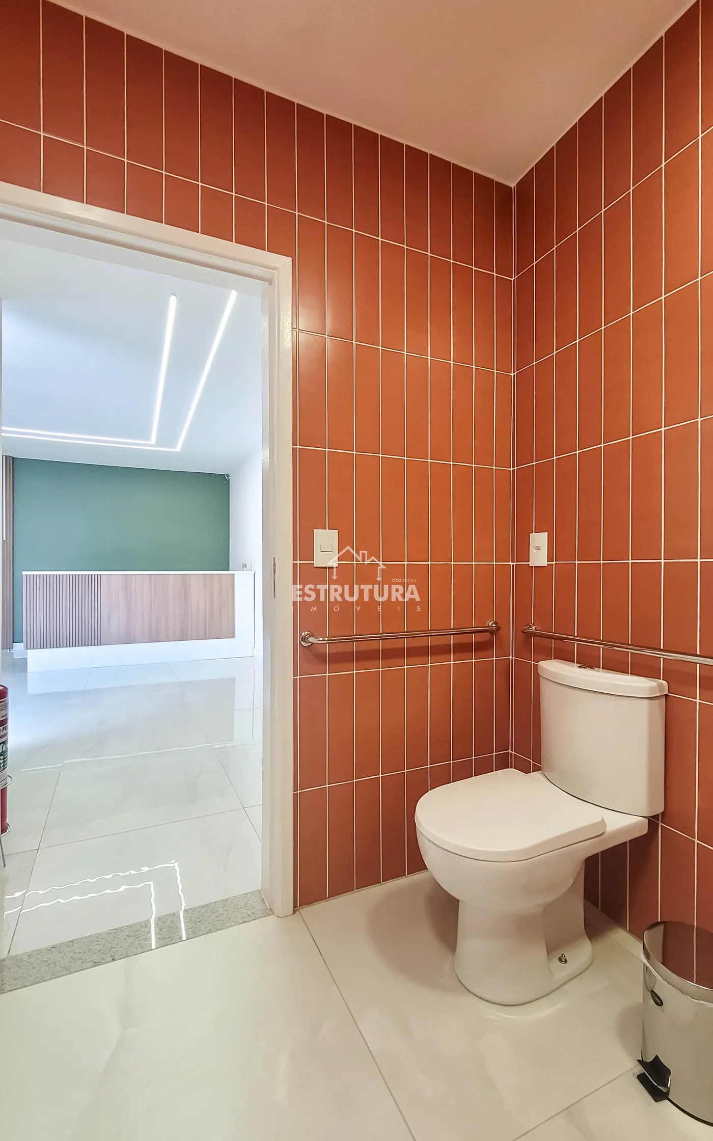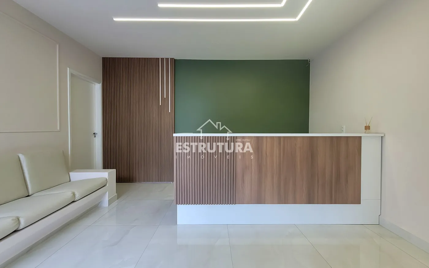 O imóvel conta com recepção ampla, com espaço para duas recepcionistas, garantindo praticidade e organização no atendimento. Possui dois sanitários exclusivos para pacientes, sendo um adaptado para pessoas com deficiência conforme normas da Vigilância Sanitária, além de dois sanitários exclusivos para profissionais.