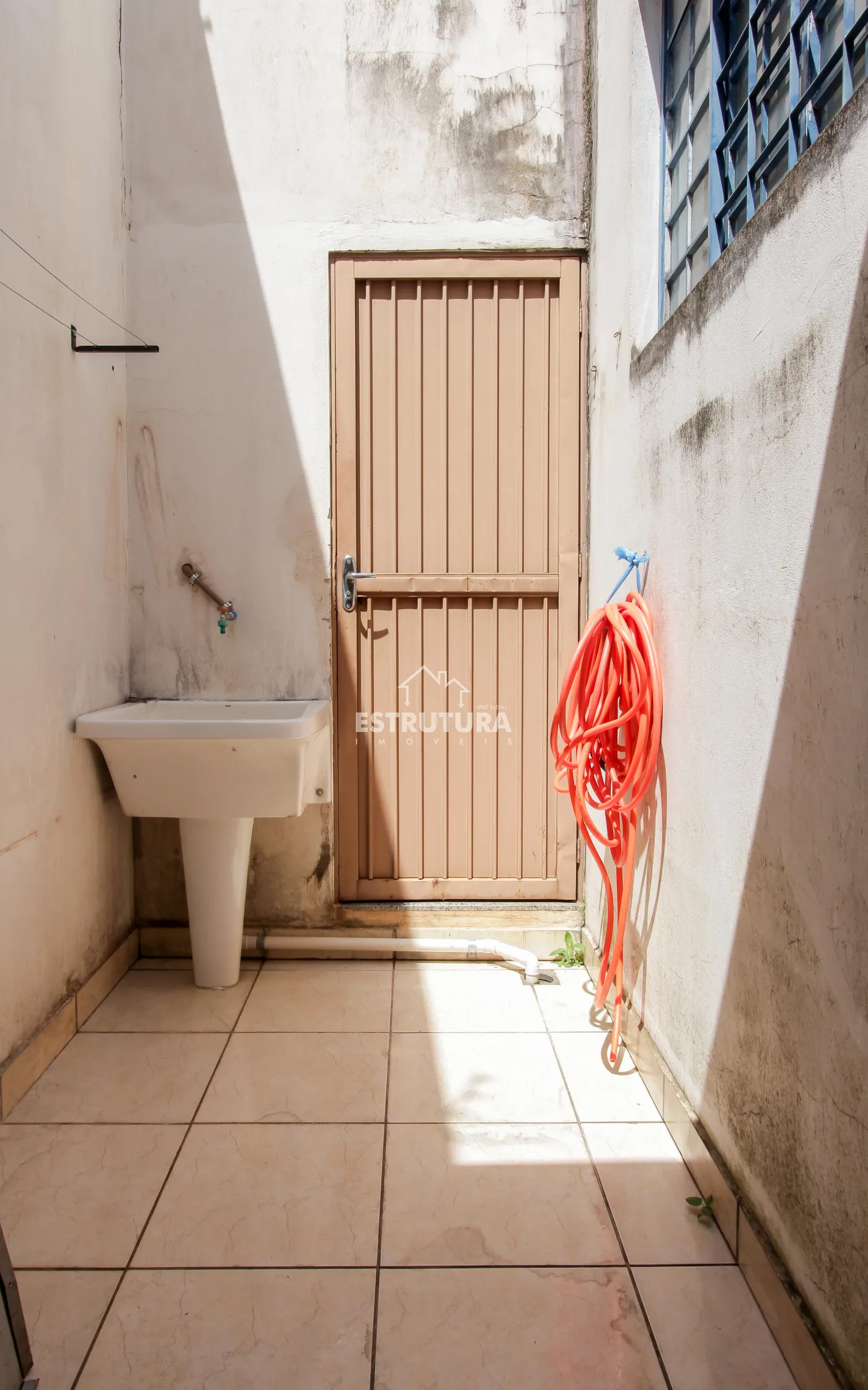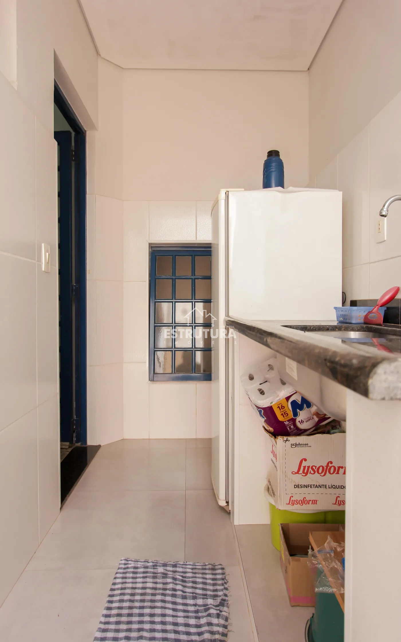 Sala no térreo possui 13m², tem bancada com pia e armários.