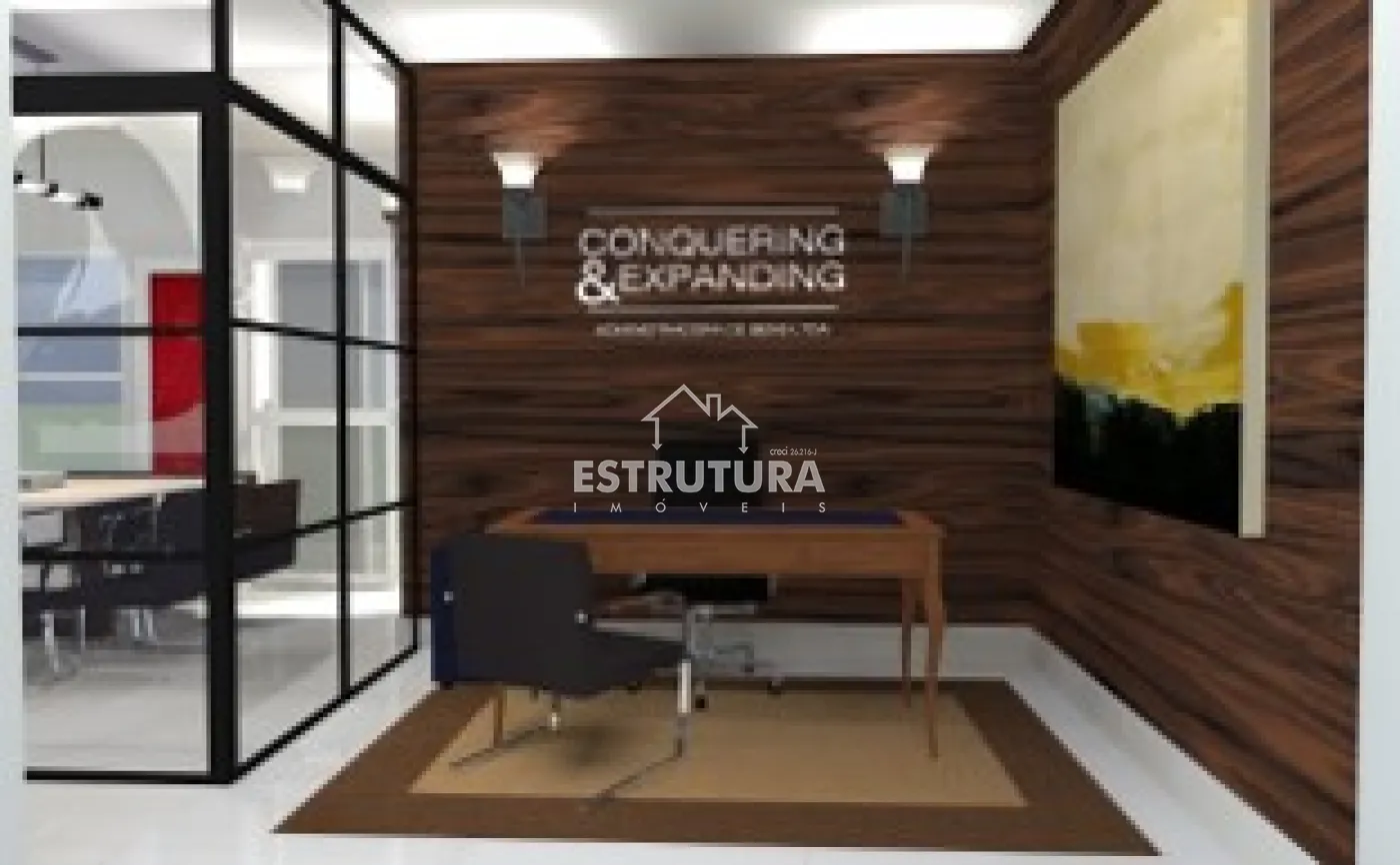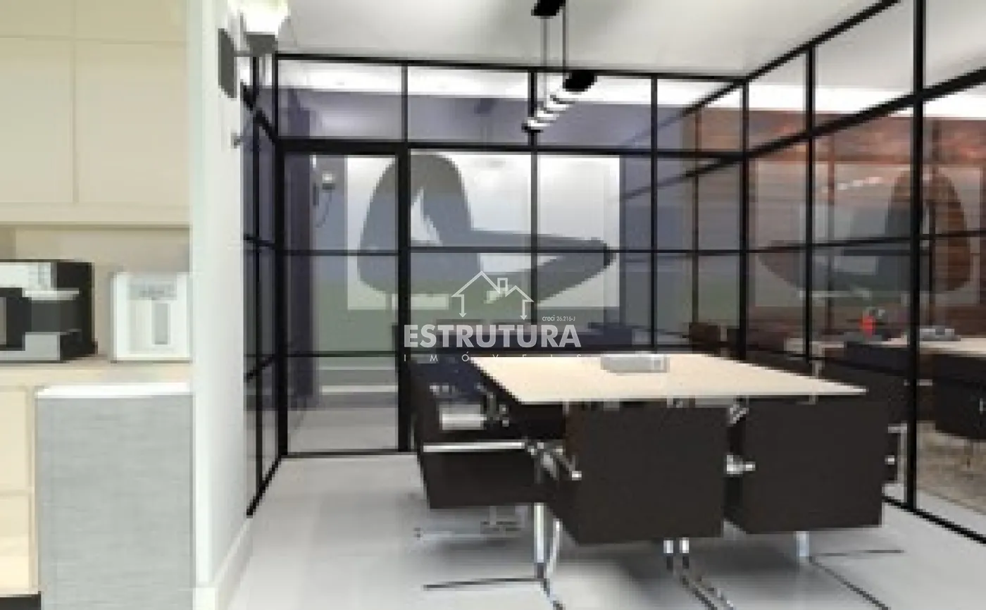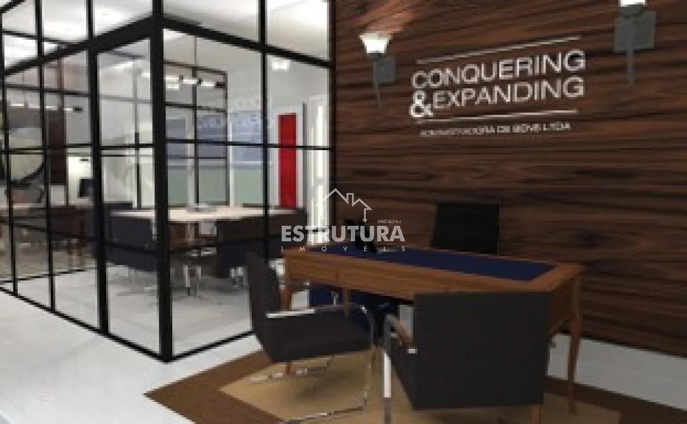 Possui 50 m² de construção, fino acabamento, ar condicionado, completa com móveis planejados e sacada, sala de reunião contém uma separação de vidro polarizado podendo ficar transparente ou opaco com isso tem mais privacidade no ambiente administrativo e 1 banheiro social .