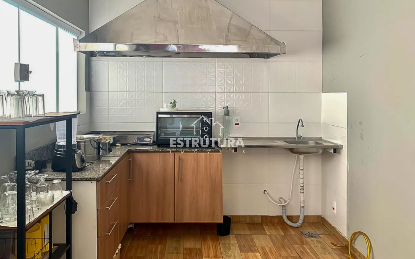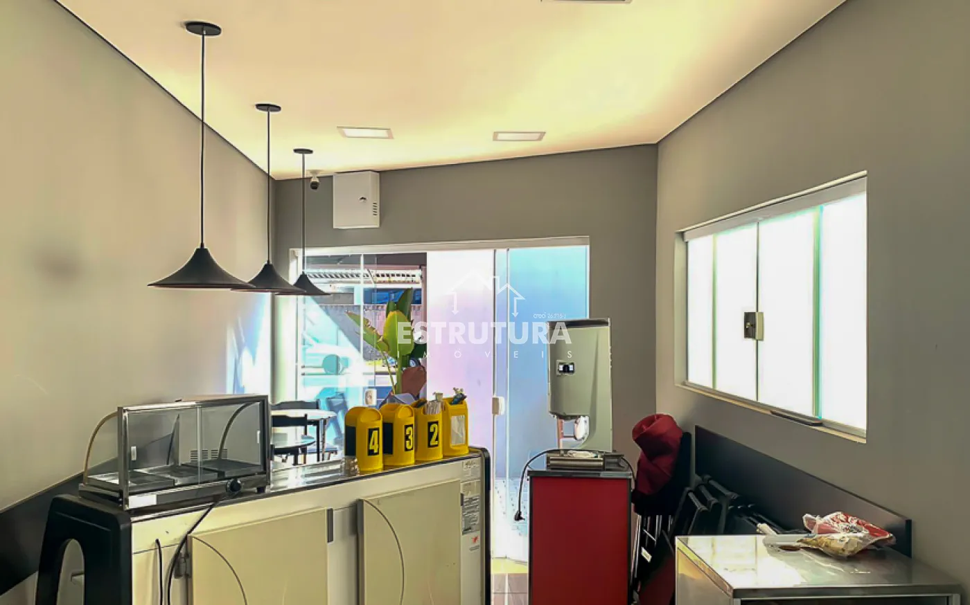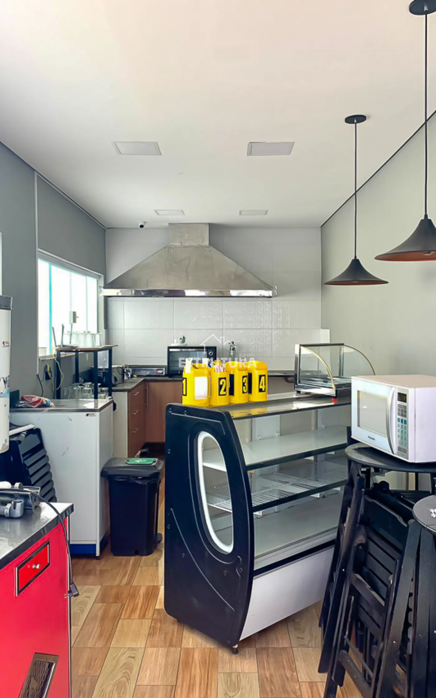 O espaço de 30m² já conta com equipamentos para finalidade no ramo alimentício, podendo ser adaptado.