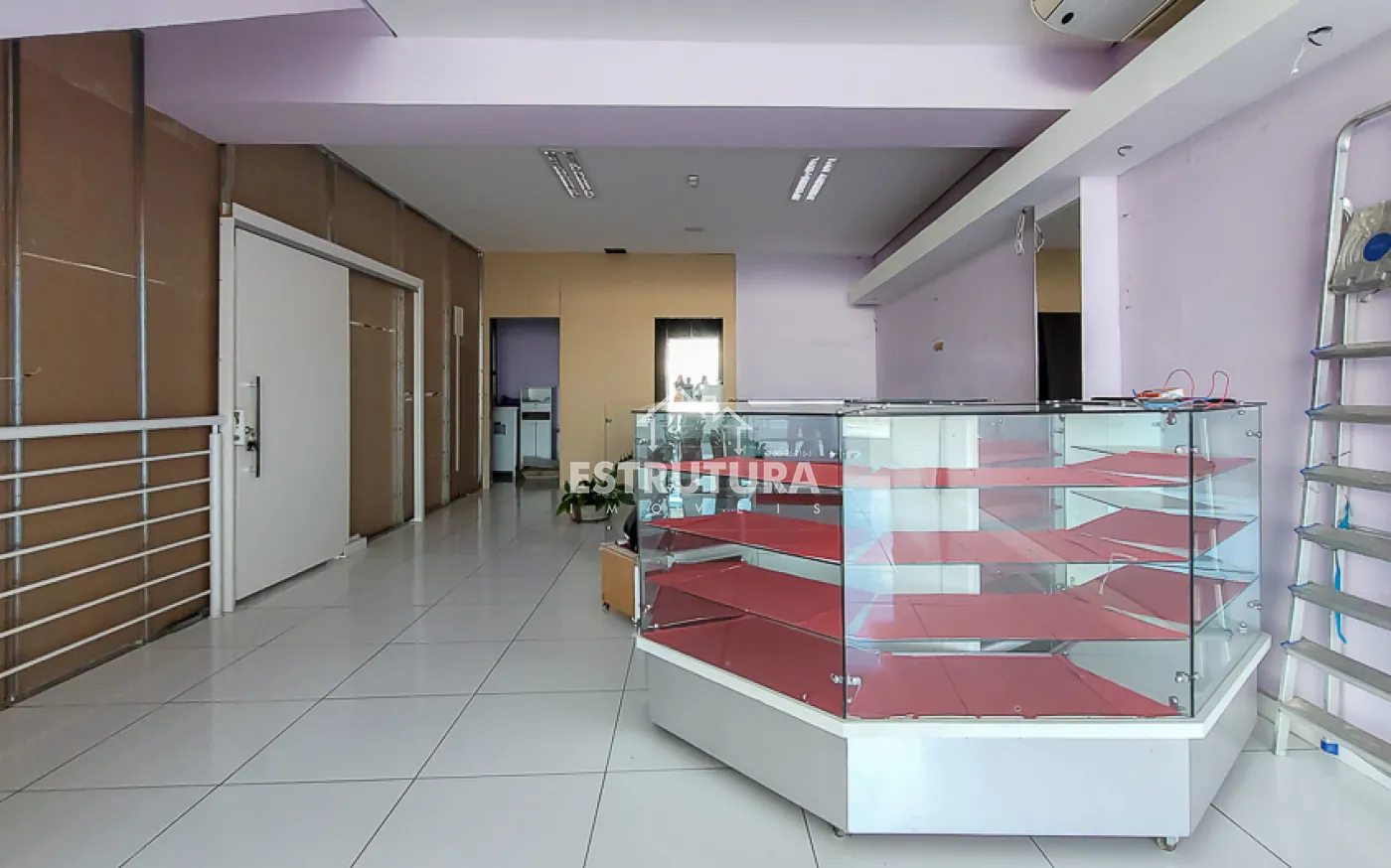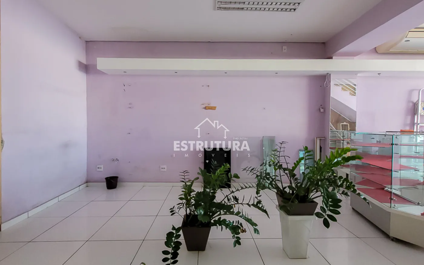 Sala comercial em piso superior no Centro, conta com uma área ampla de 160m², com vitrine com vista para a rua, 2 banheiros sociais e copa (em construção).