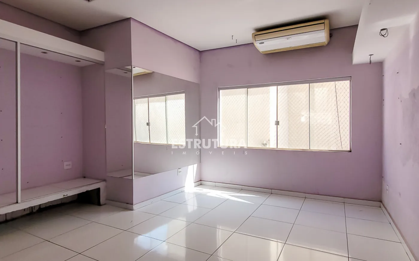 Sala comercial em piso superior no Centro, conta com uma área ampla de 140m2, com vitrine com vista para a rua, ar condicionado, 2 banheiros sociais e copa (em construção).
