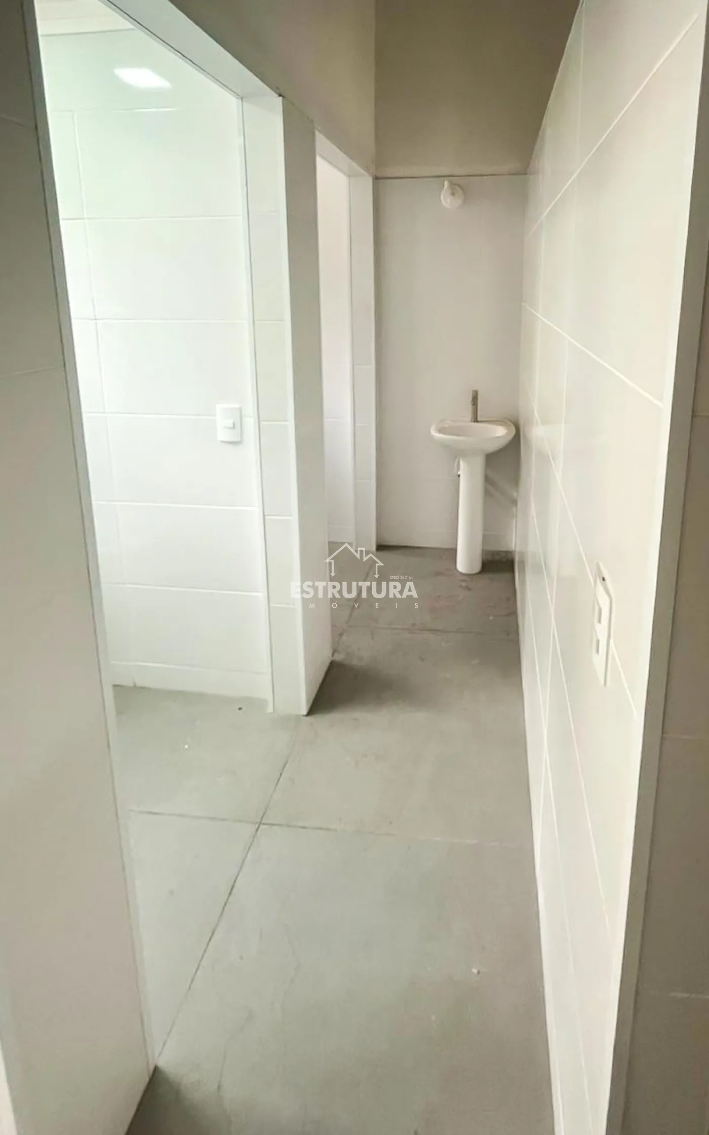 Na parte interna, teto com acabamento em gesso, bem iluminado e com ótimo acabamento; contém 45m², 2 banheiros sociais e um espaço aberto nos fundos.