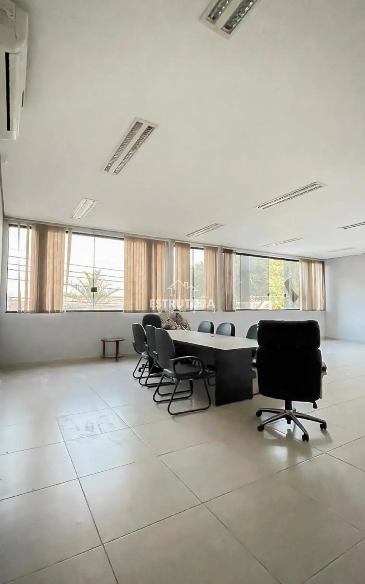 Sala com amplo espaço, contendo ar condicionado, 2 ex