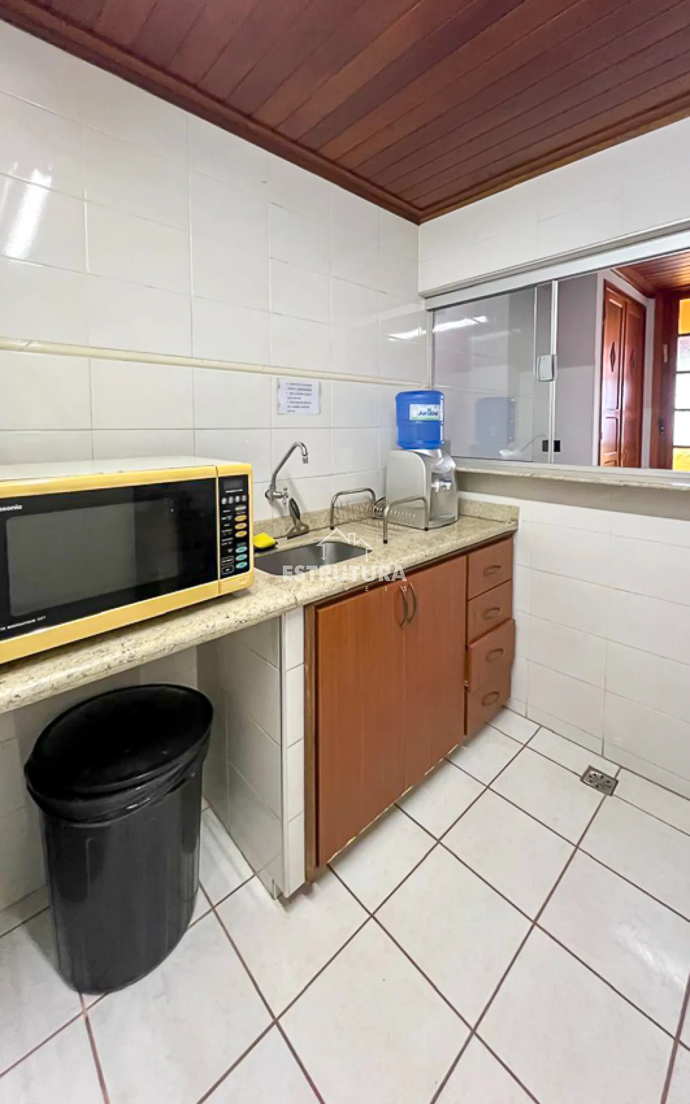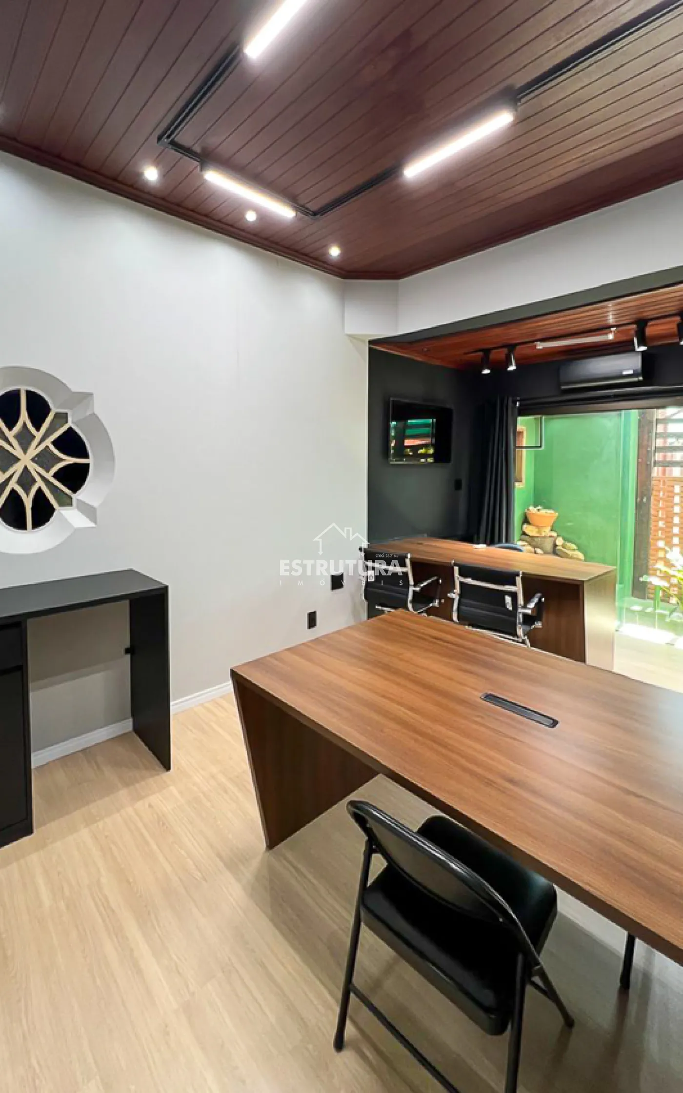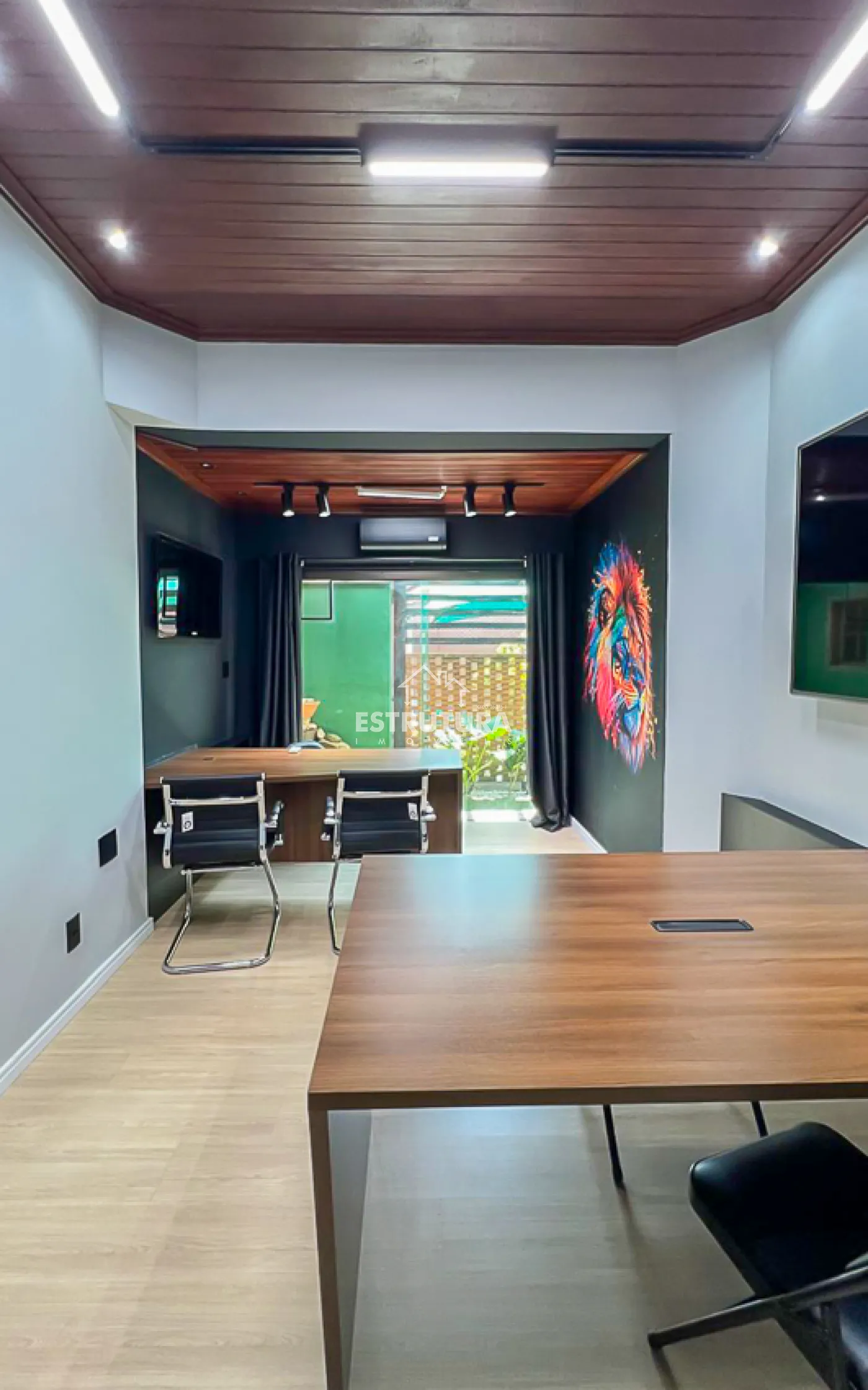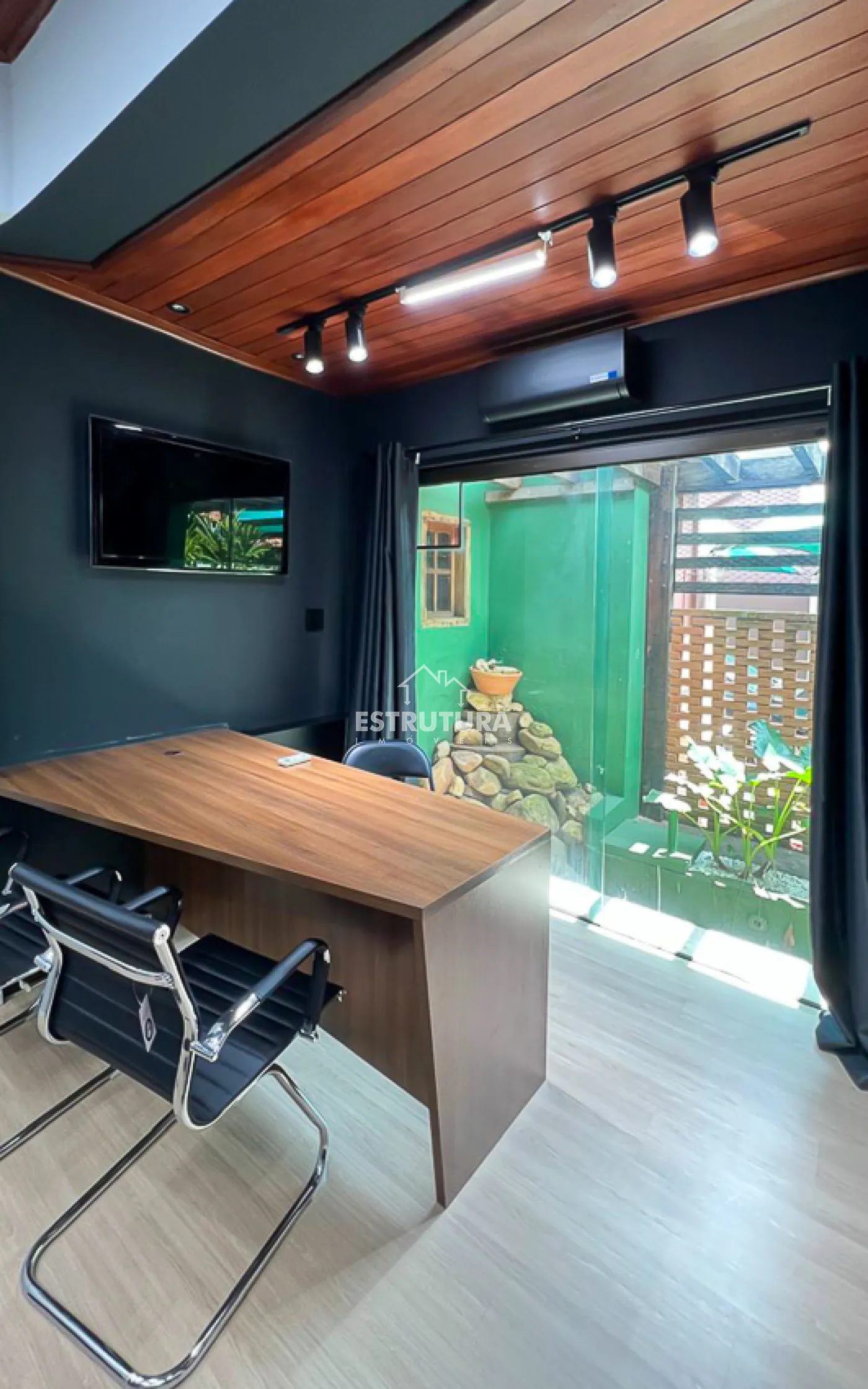 Sala comercial mobiliada no Centro, com aproximadamente 12m², possuindo ar condicionado, duas mesas fixas com cadeiras, aparador, duas TV Smart e área de luz.