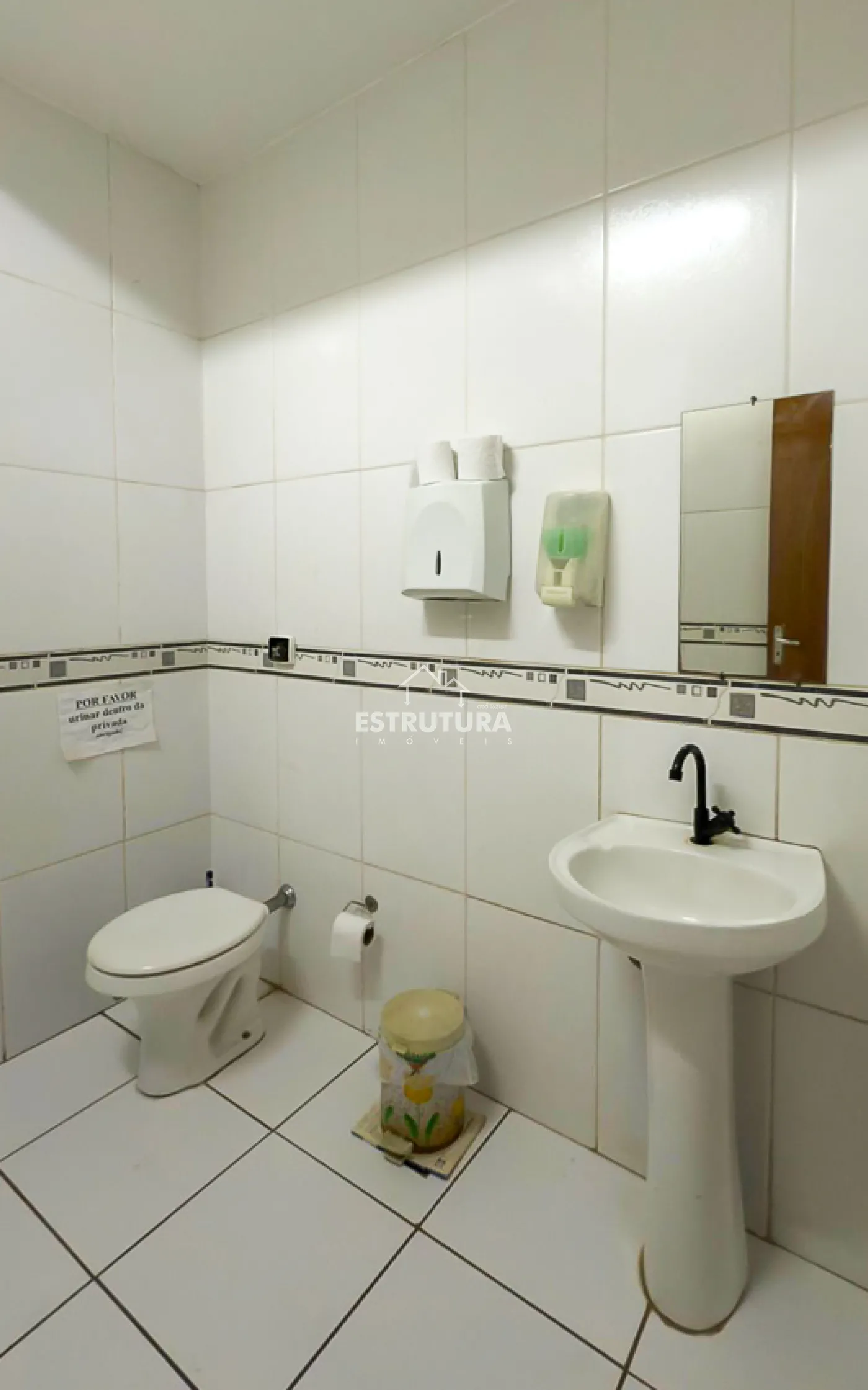 Sala comercial de 24m², com banheiro e recepção compartilhada.