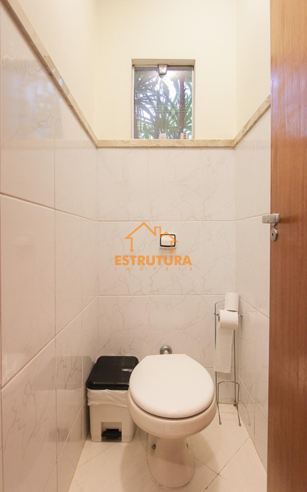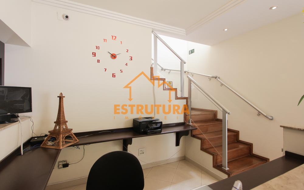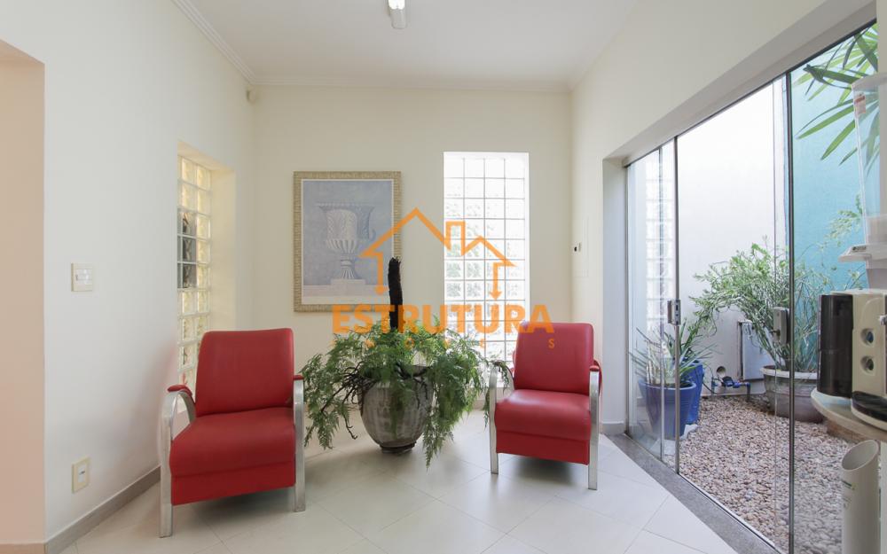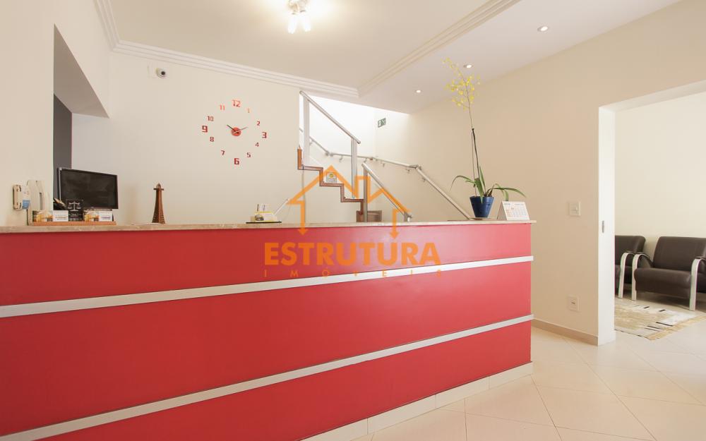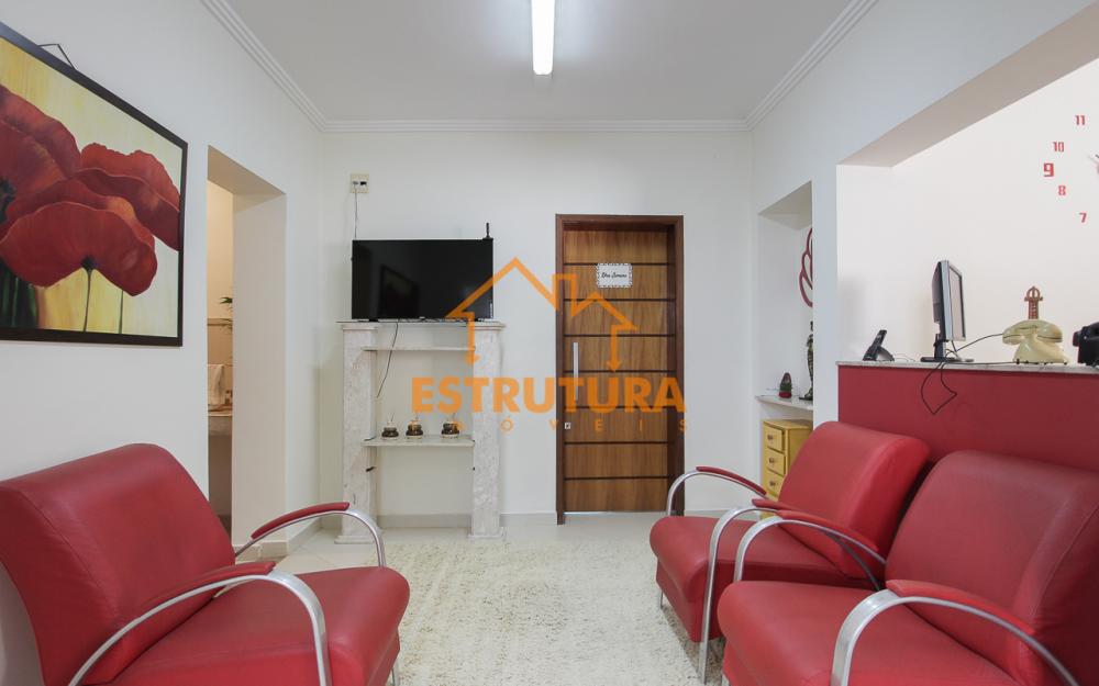 Recepção, TV, 2 banheiros sociais, área de luz, copa/cozinha, sala de espera, câmera, alarme e interfone para cada sala.