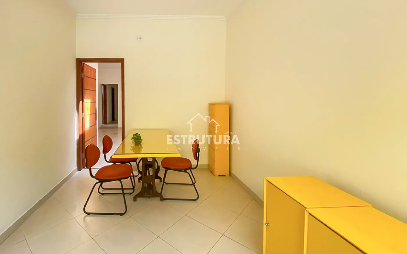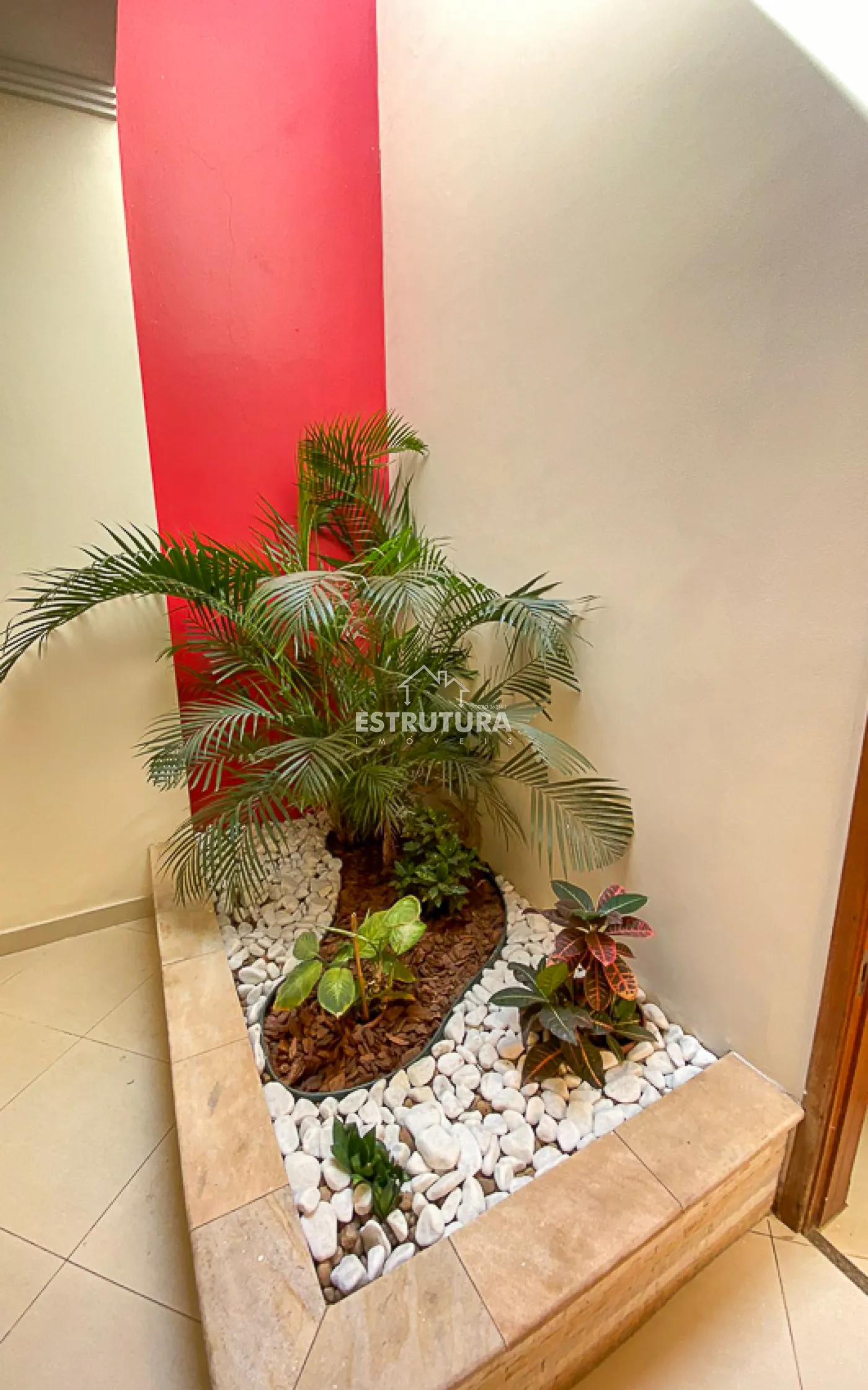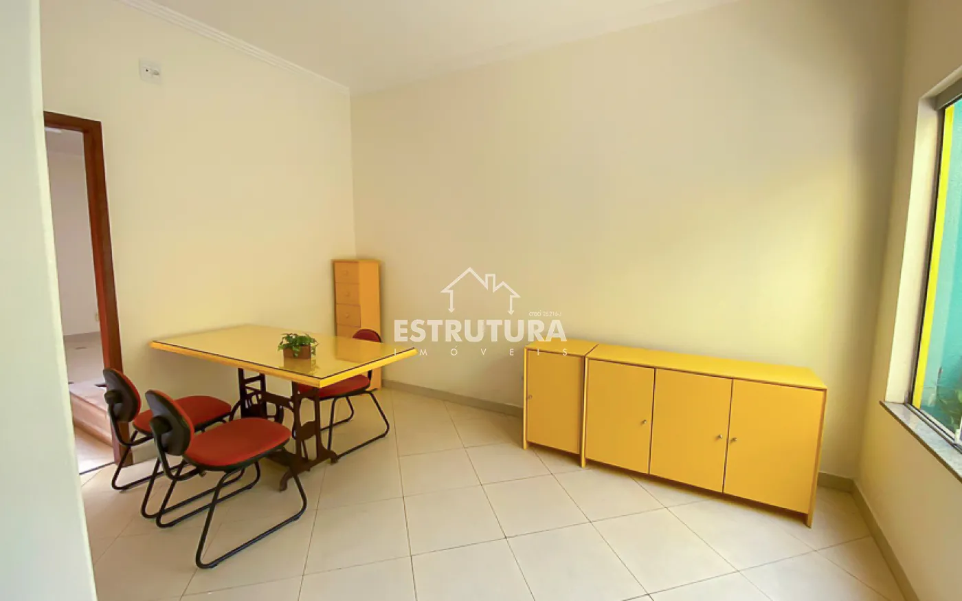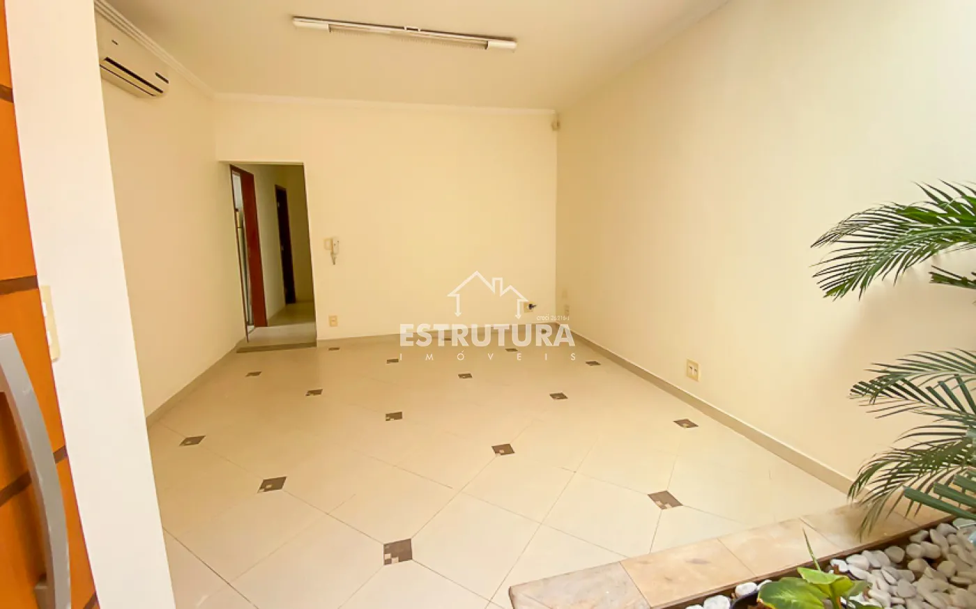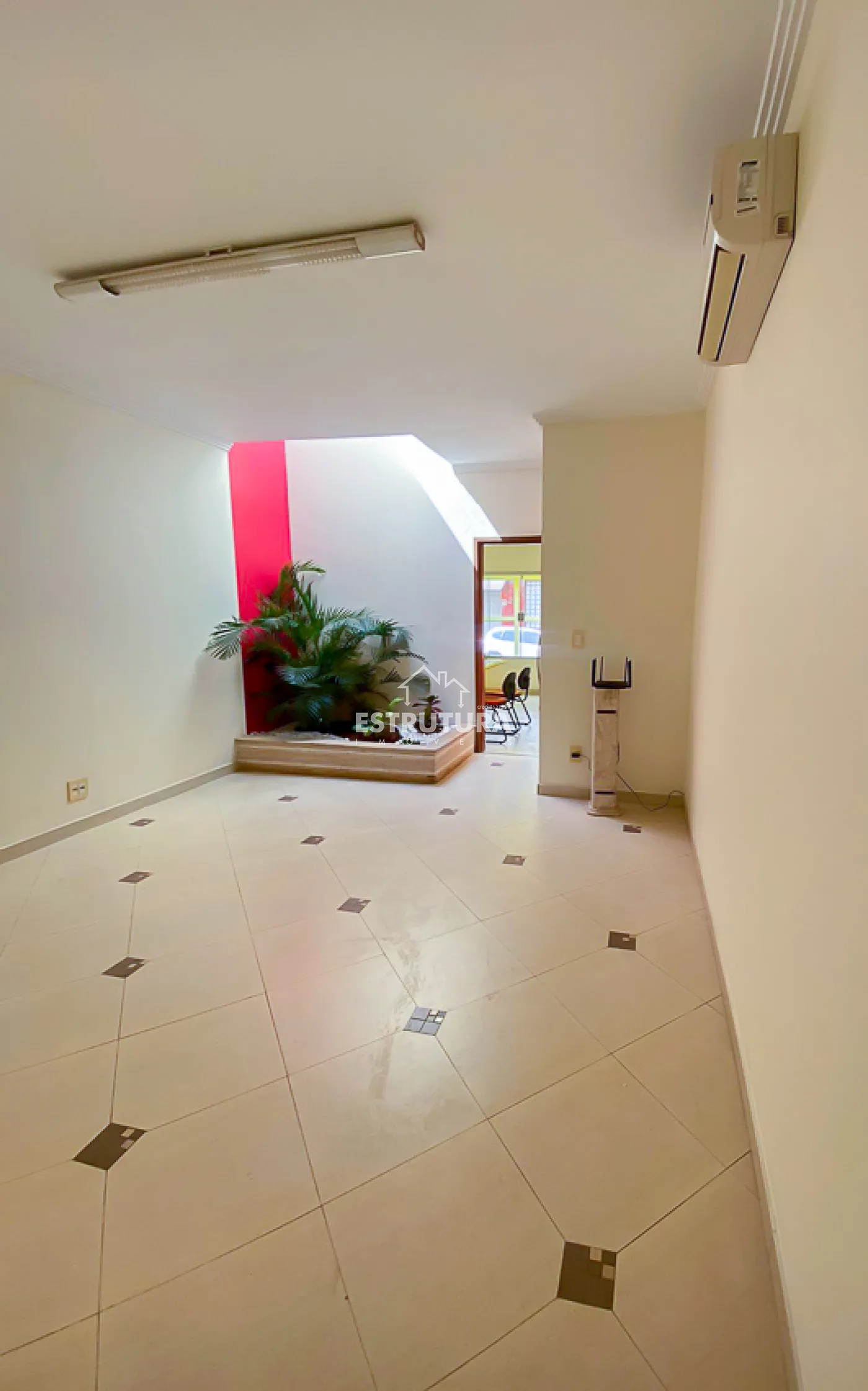 Recepção, TV, 2 banheiros sociais, área de luz, copa/cozinha, sala de espera, câmera, alarme e interfone para cada sala.