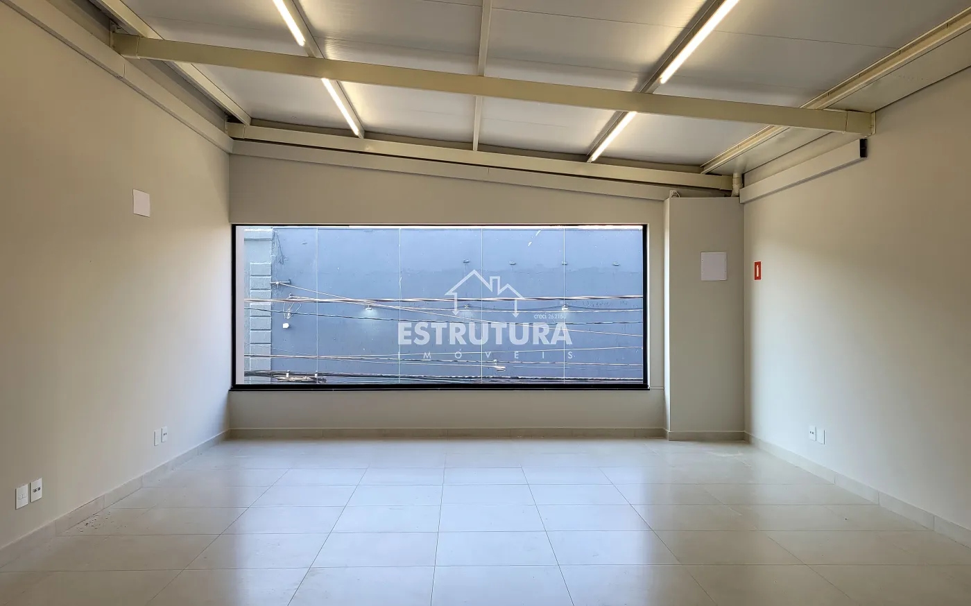 Salão comercial na região central com amplo espaço, ideal para lojas, dois banheiros, cozinha, , área de serviço e mais 80 metros no piso superior para vitrine e estoque.