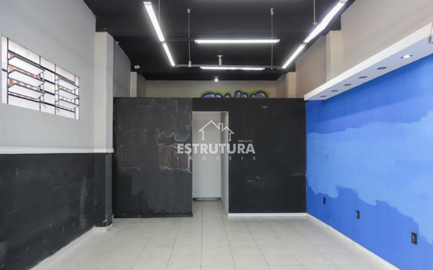 Salão comercial, com 218 m², 2 banheiros, amplo salão com uma sala de drywal.
