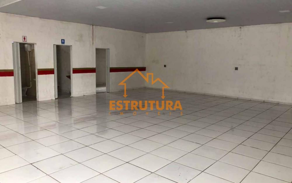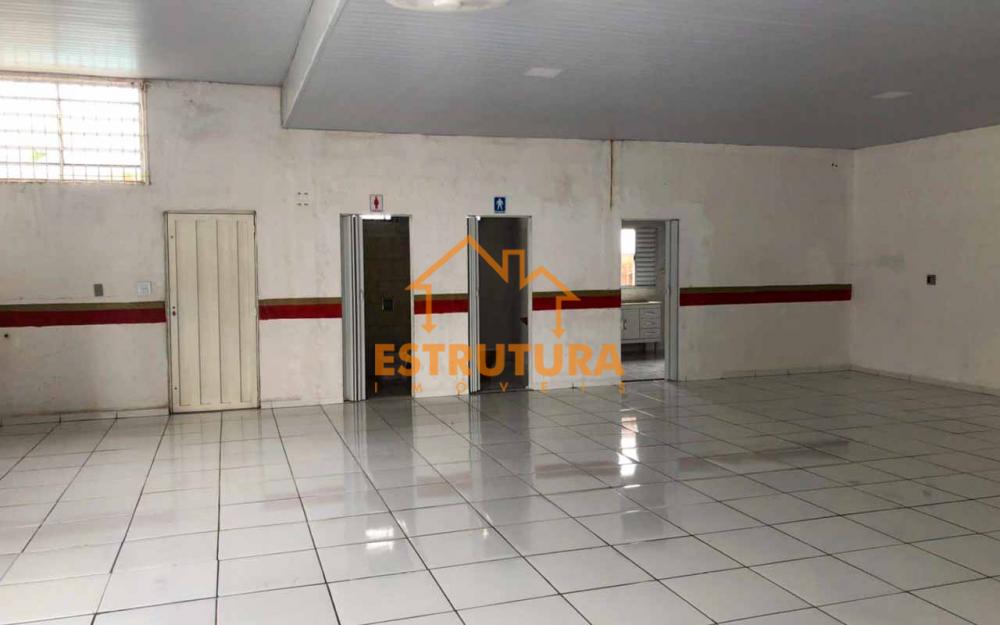 Salão comercial com aproximadamente 190 m² de área construída, cozinha e 2 banheiros sociais, feminino e masculino.