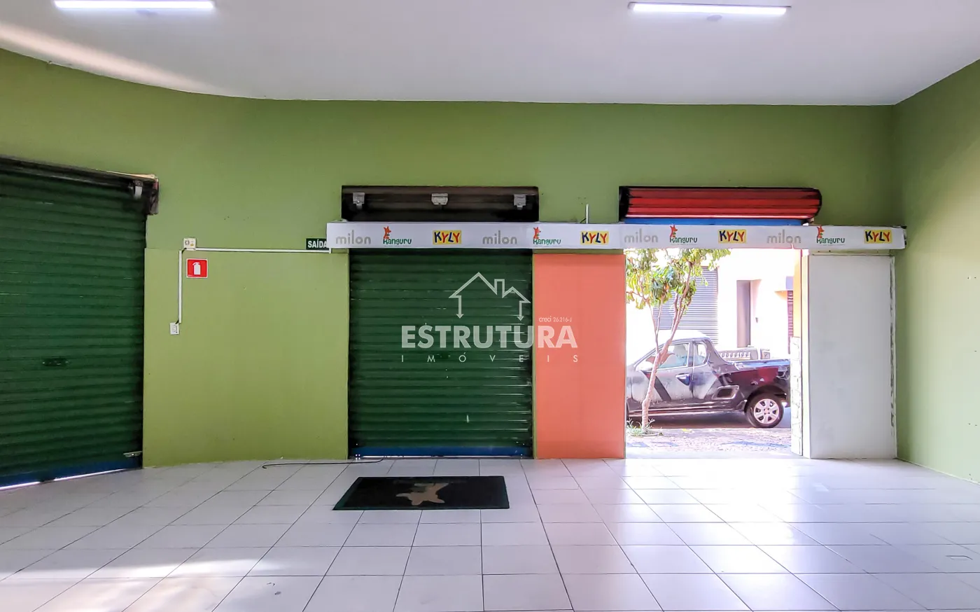 Salão comercial de esquina em ótima localização central, com 70 m², 2 banheiros sendo feminino e masculino, pia grande com prateleiras e porta aço de rolar.