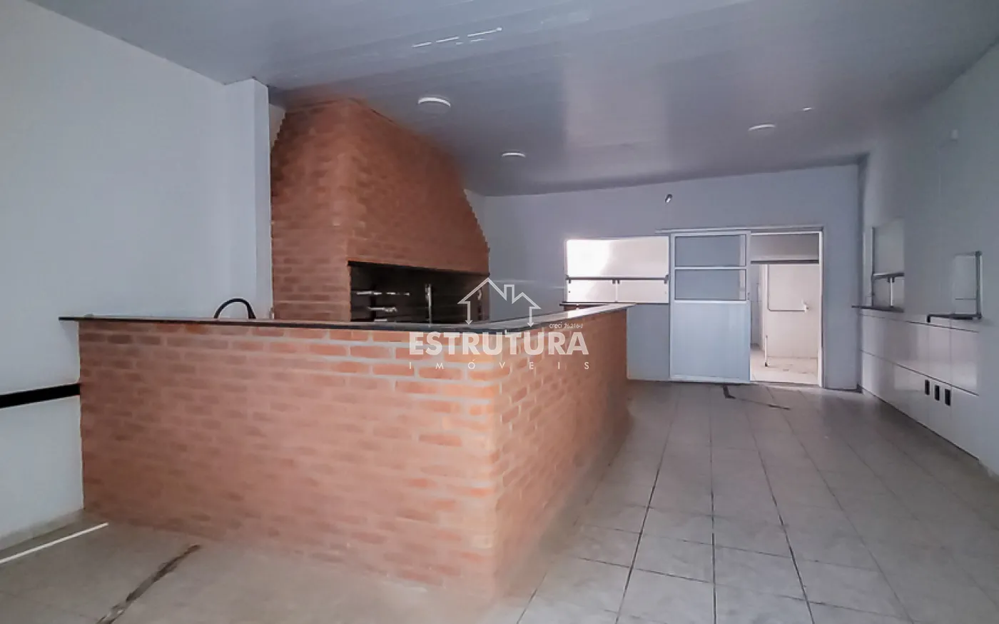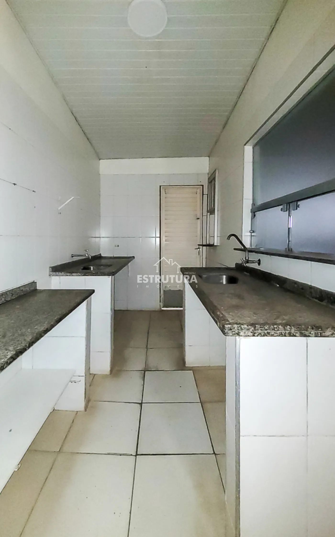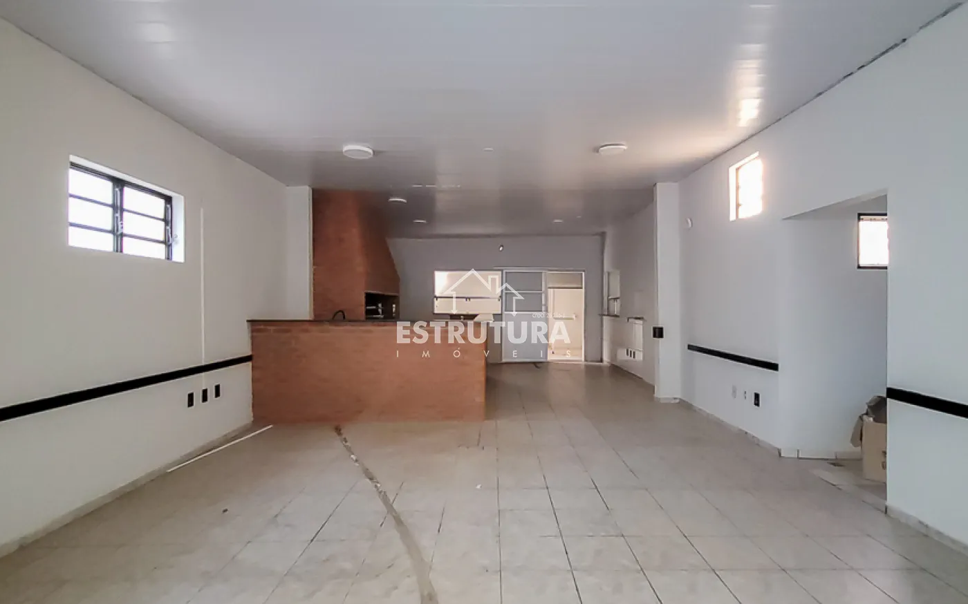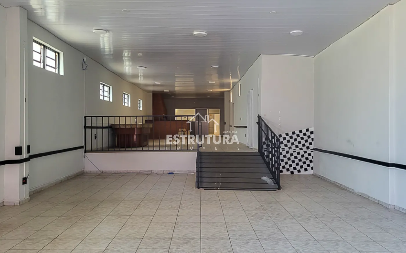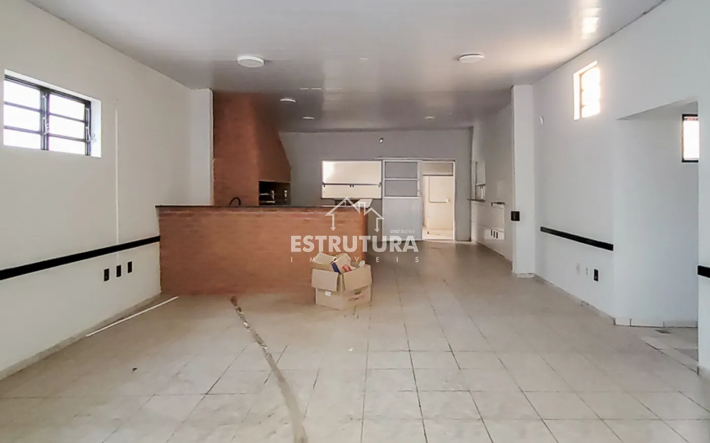 A estrutura está preparada para restaurante, com cozinha industrial equipada com cinco pias e lavanderia. Nos fundos, há dois vestiários e, no piso superior, um ambiente versátil ideal para depósito ou estoque.