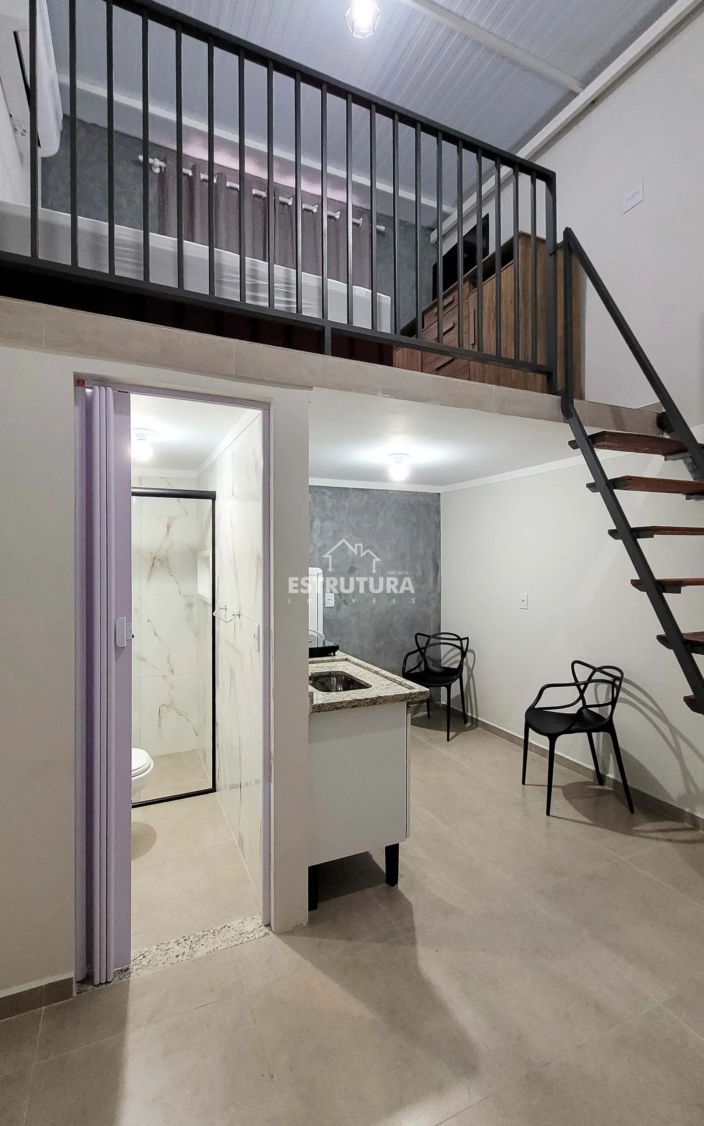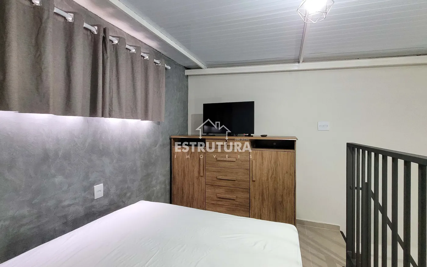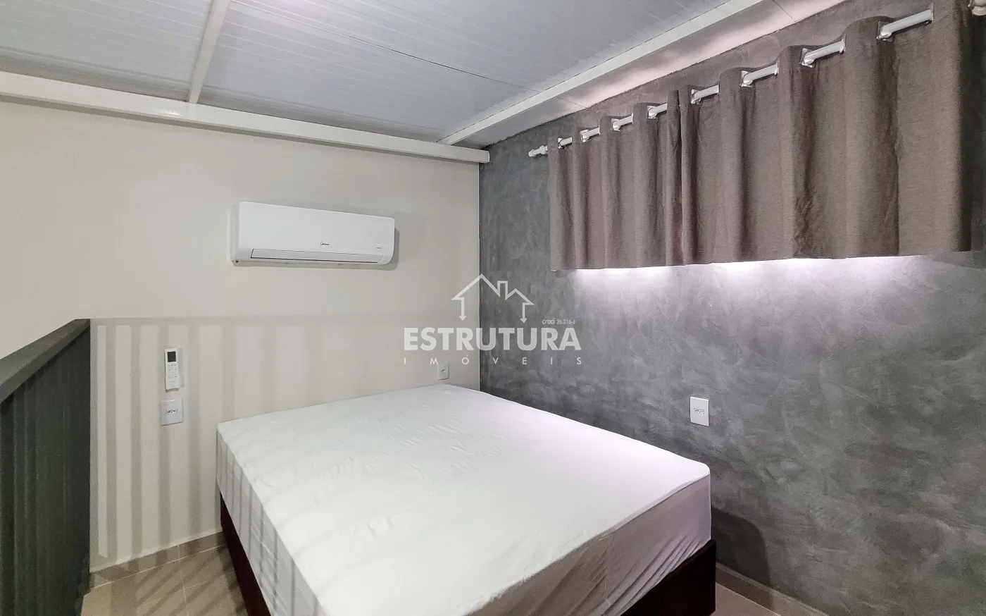 Loft mobiliado com mezanino em otima localização com dormitorio no piso superior, ar condicionado, cama, Tv, comoda